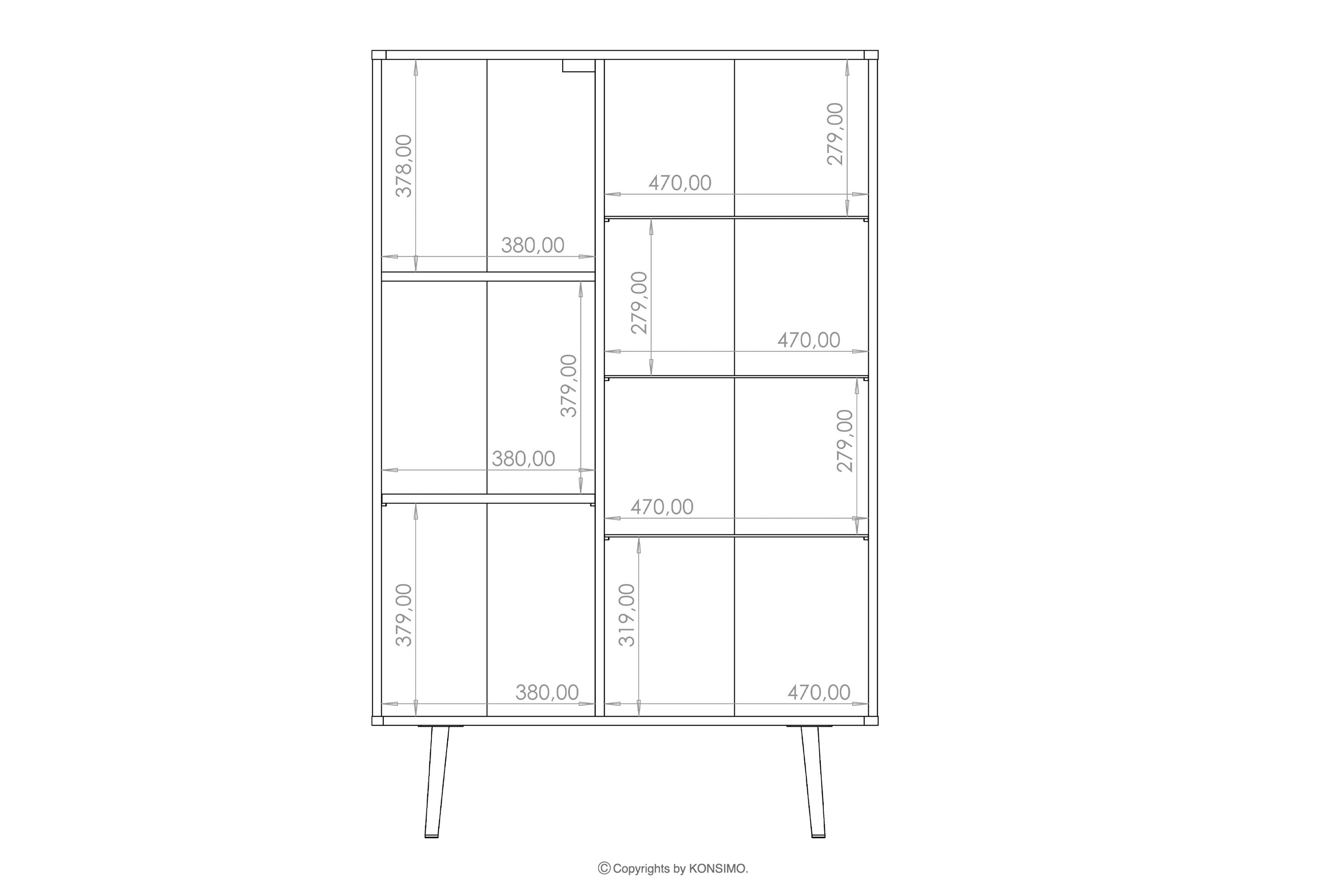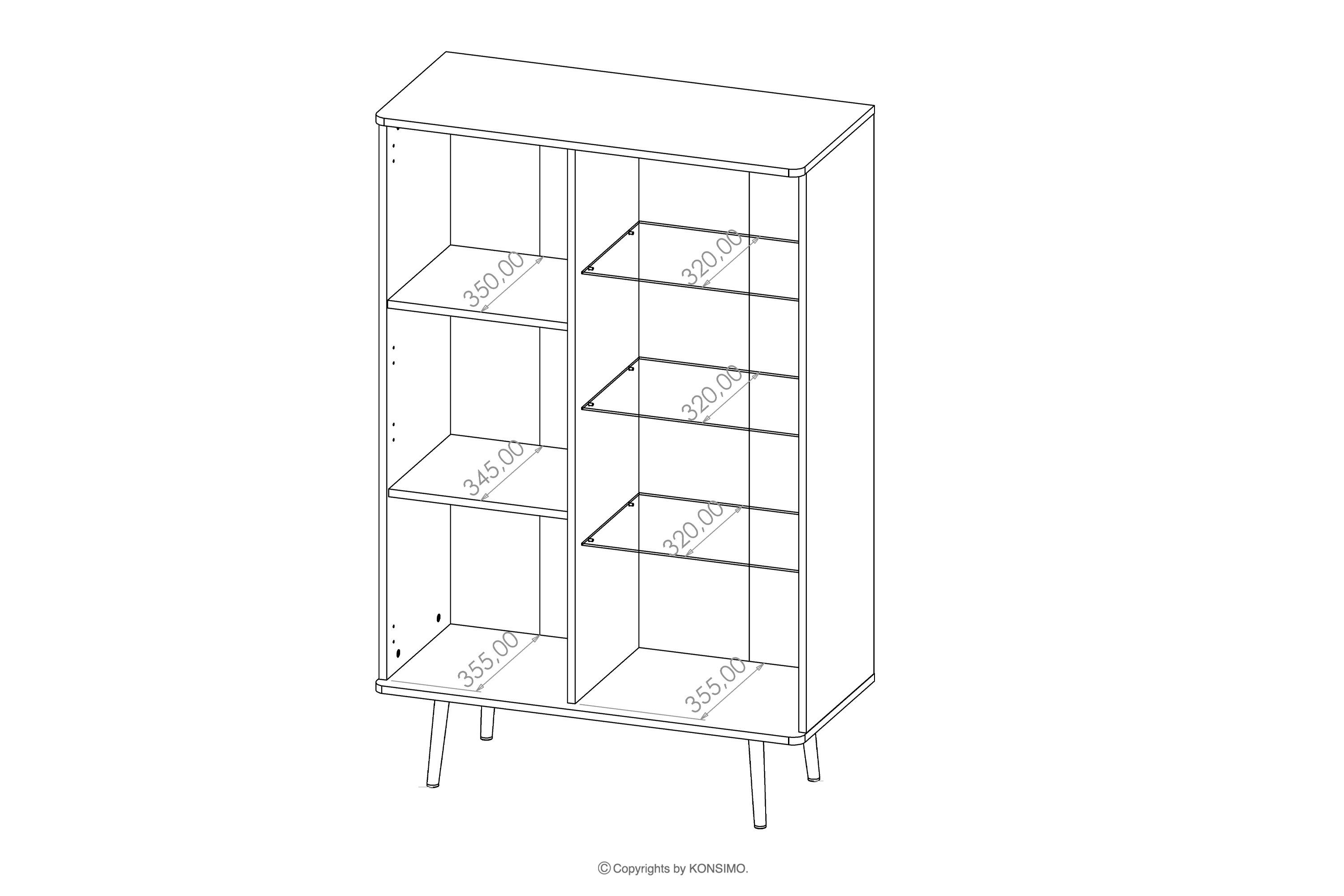 Duża witryna na wysokich nóżkach to kwintesencja klasycznego designu i praktyczności, idealna dla tych, którzy cenią sobie zarówno estetykę, jak i funkcjonalność w swoim wnętrzu. Wykonana z wysokiej jakości materiałów, charakteryzuje się solidnym korpusem z płyty laminowanej, który zapewnia trwałość i odporność na uszkodzenia mechaniczne oraz codzienne zużycie. Materiał ten jest łatwy w utrzymaniu czystości, co sprawia, że mebel ten jest nie tylko piękny, ale i praktyczny.