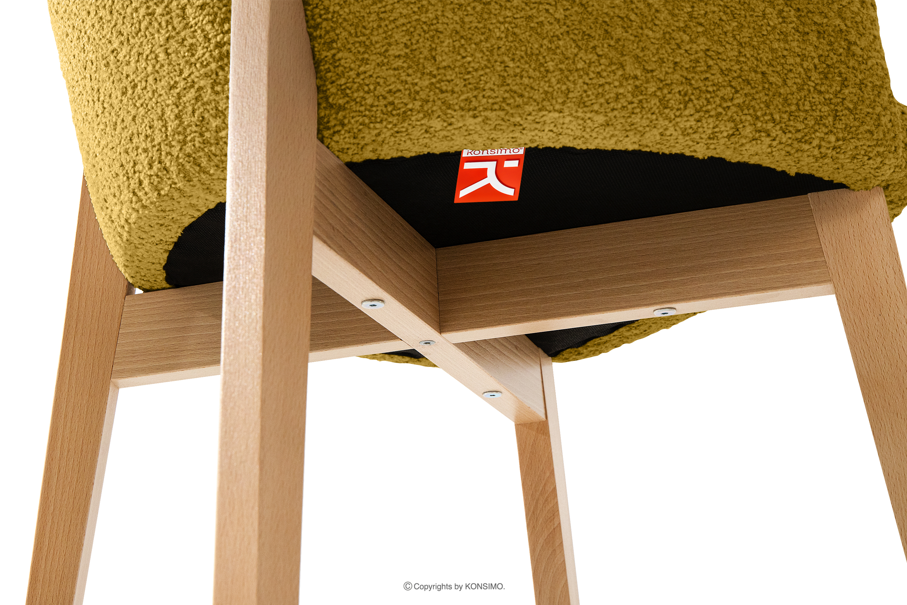 LONIS zobacz całą kolekcję Krzesło tapicerowane na drewnianych nogach tkanina boucle miodowy- kolor miodowy