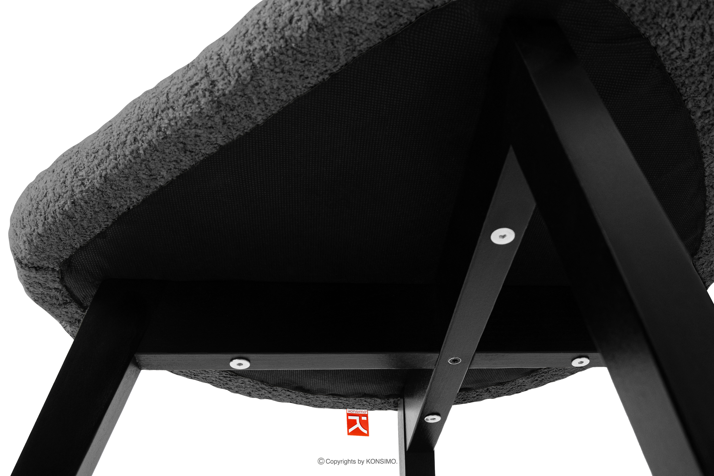 Krzesło na drewnianych nogach tkanina boucle czarny