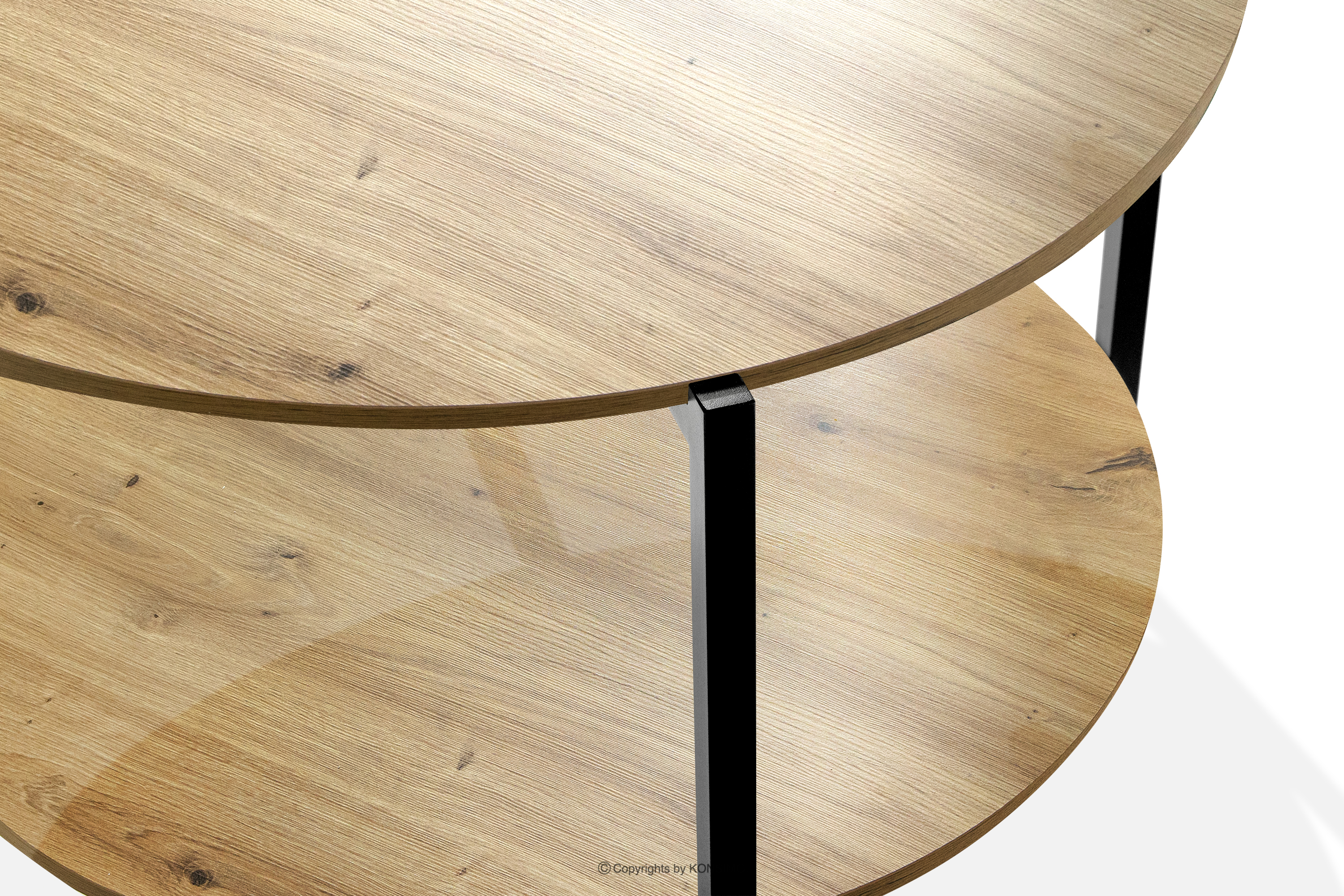 HEIRO zobacz całą kolekcję Nowoczesny stolik kawowy na metalowych nogach dąb artisan/czarny- kolor dąb artisan/czarny