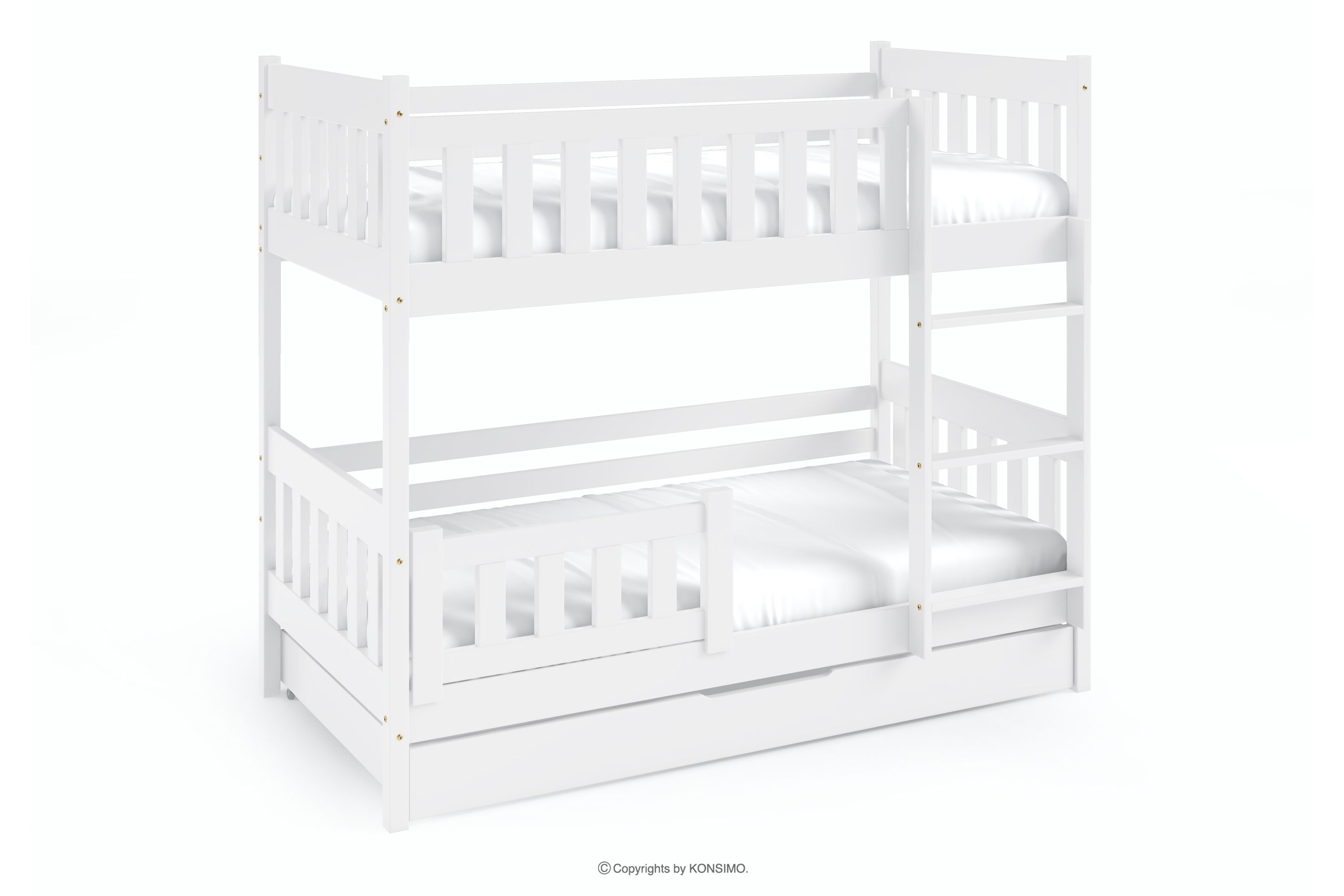 LUMBE zobacz całą kolekcję Łóżko drewniane dwupiętrowe z materacem i szufladą biały- kolor biały