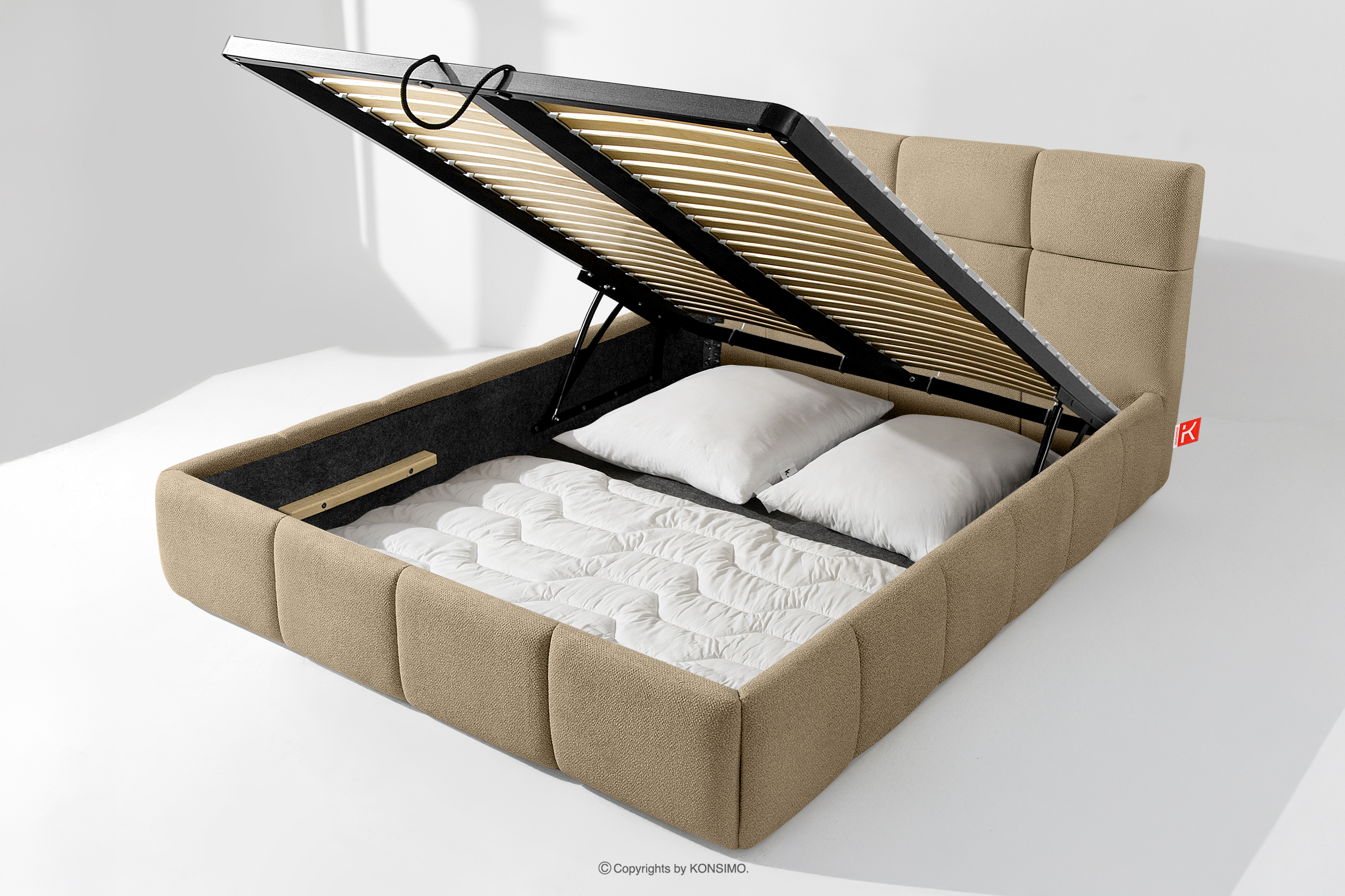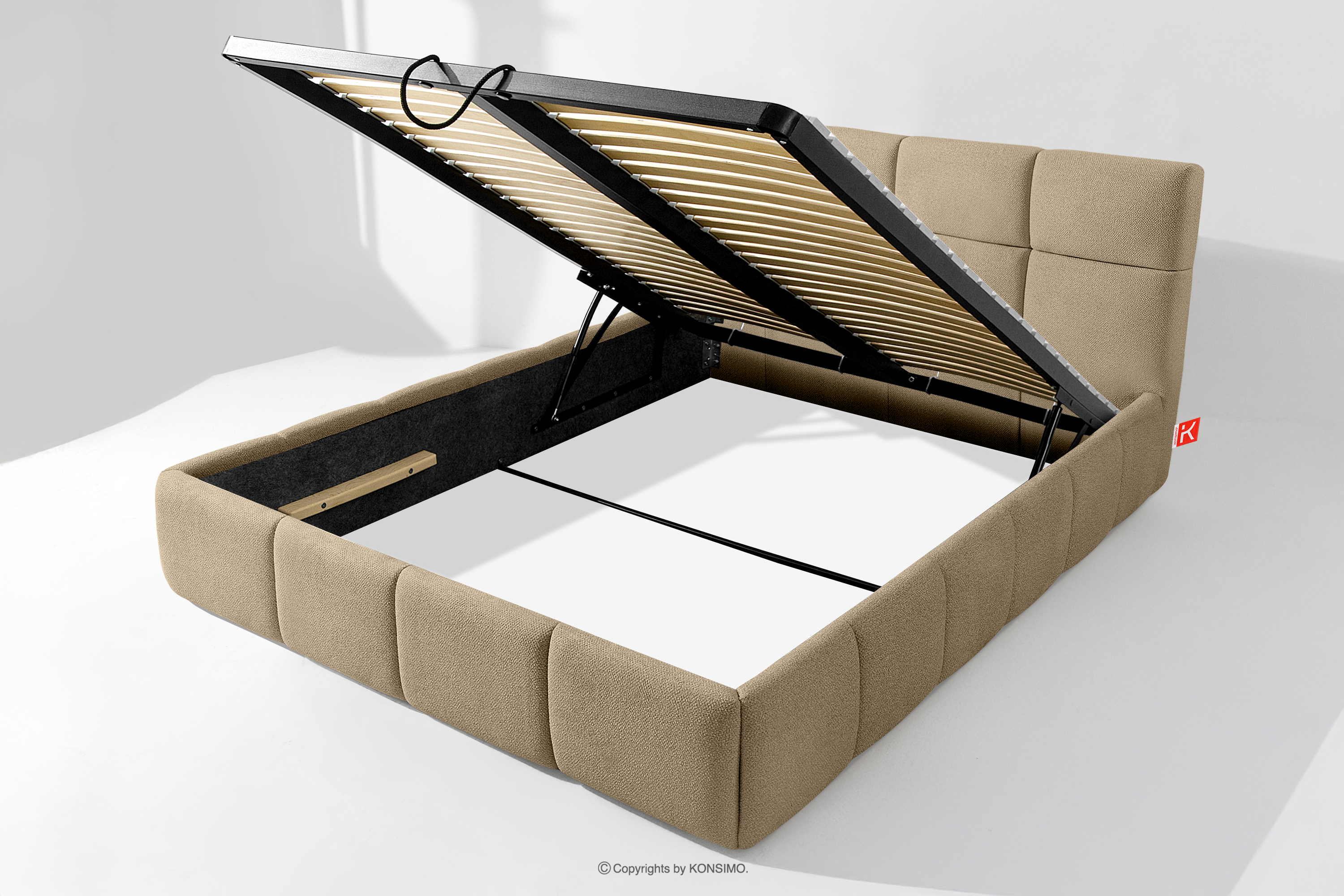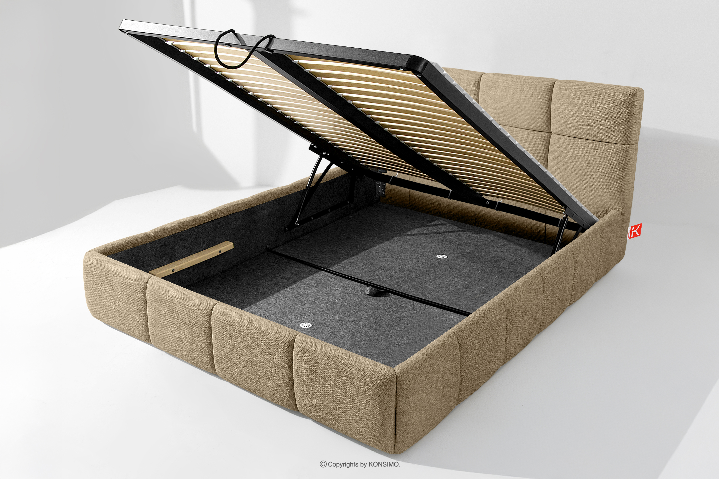 ALTOS zobacz całą kolekcję Łóżko tapicerowane 140 cm w stylu skandynawskim żółty/beżowy- kolor żółty/beżowy