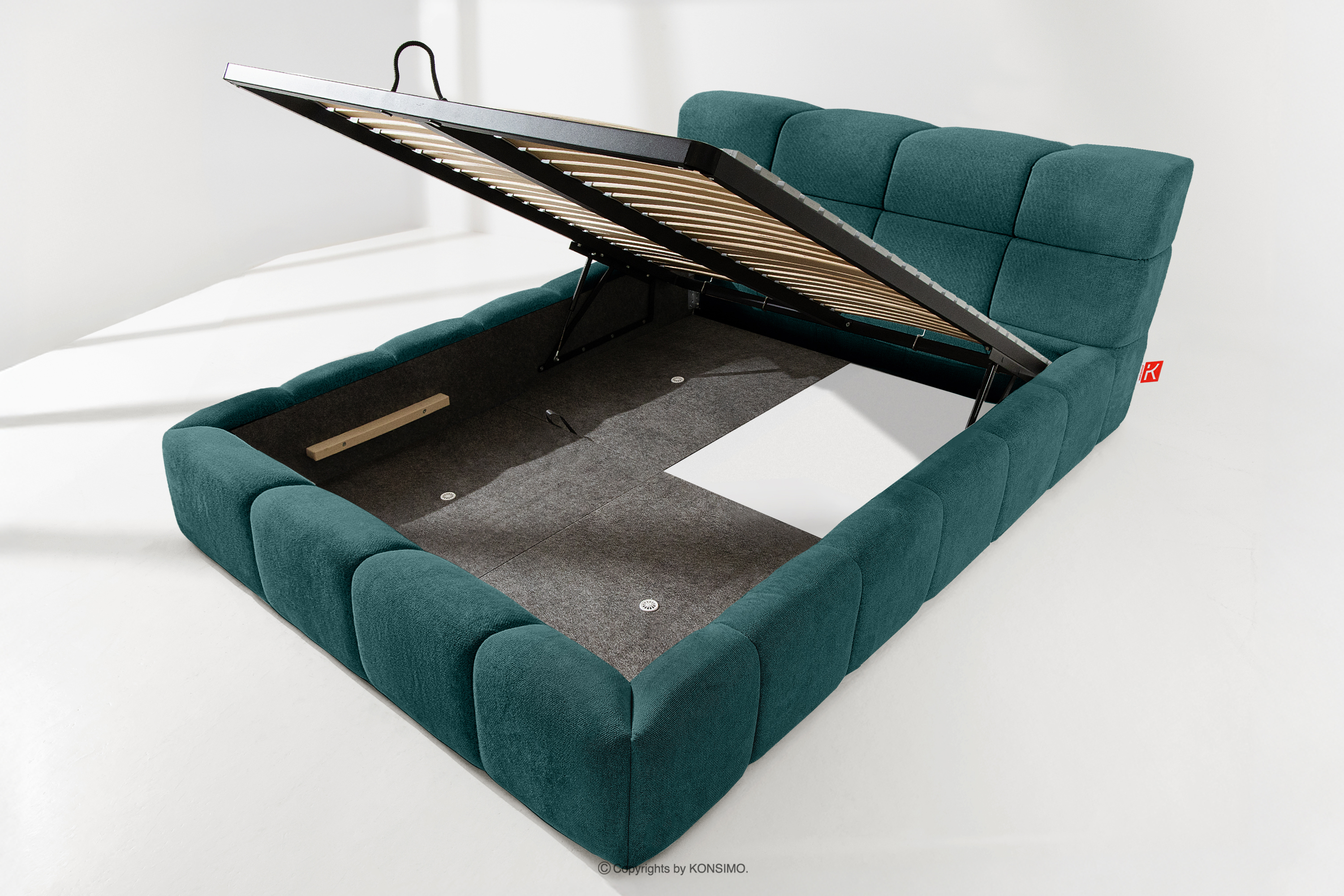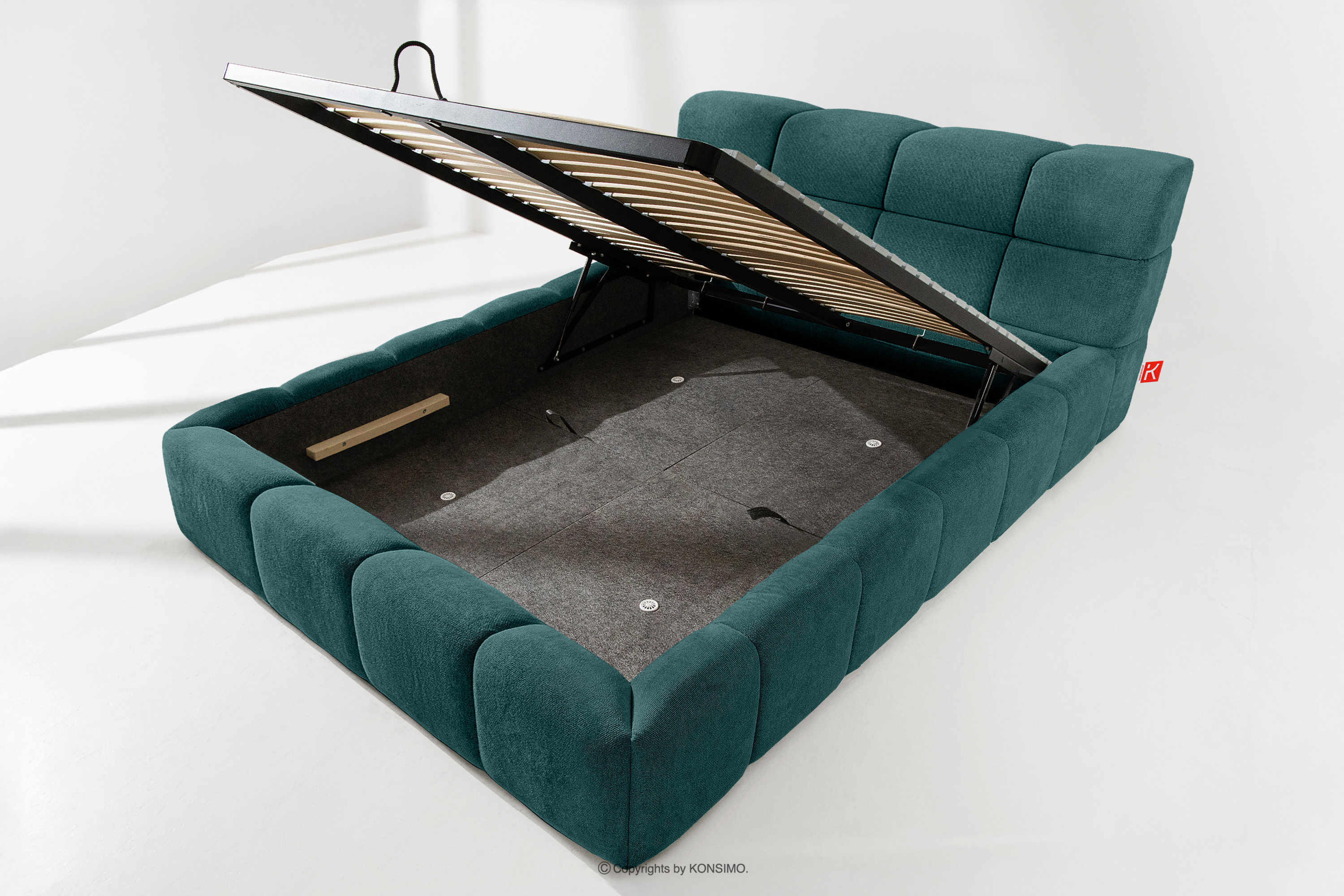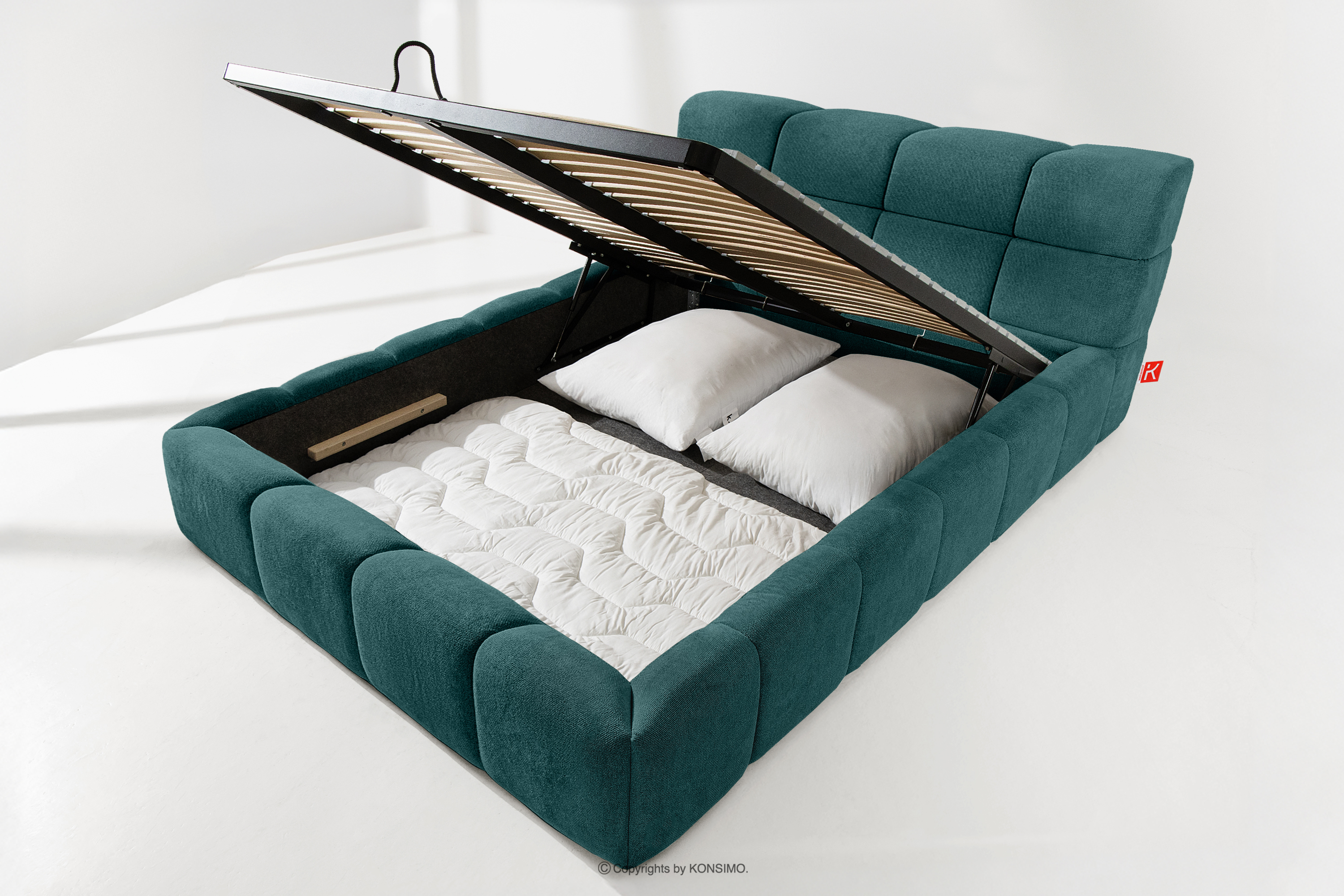 Praktyczny pojemnik na pościel, otwierany za pomocą gazowych siłowników, to nowoczesne rozwiązanie, które ułatwia dostęp do przechowywanych rzeczy, bez potrzeby dużego wysiłku. Funkcjonalność tego mechanizmu sprawia, że pojemnik otwiera się płynnie i lekko, co dodatkowo zwiększa komfort użytkowania.