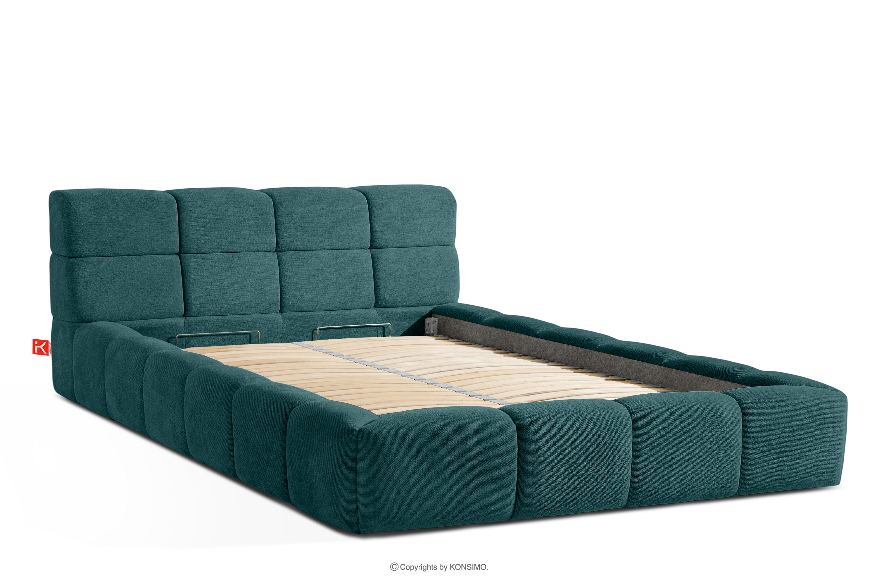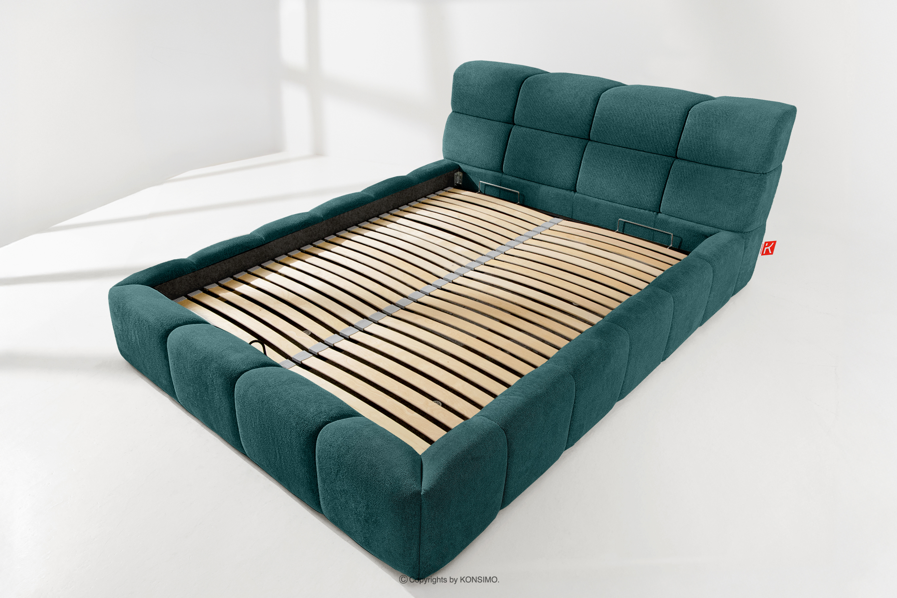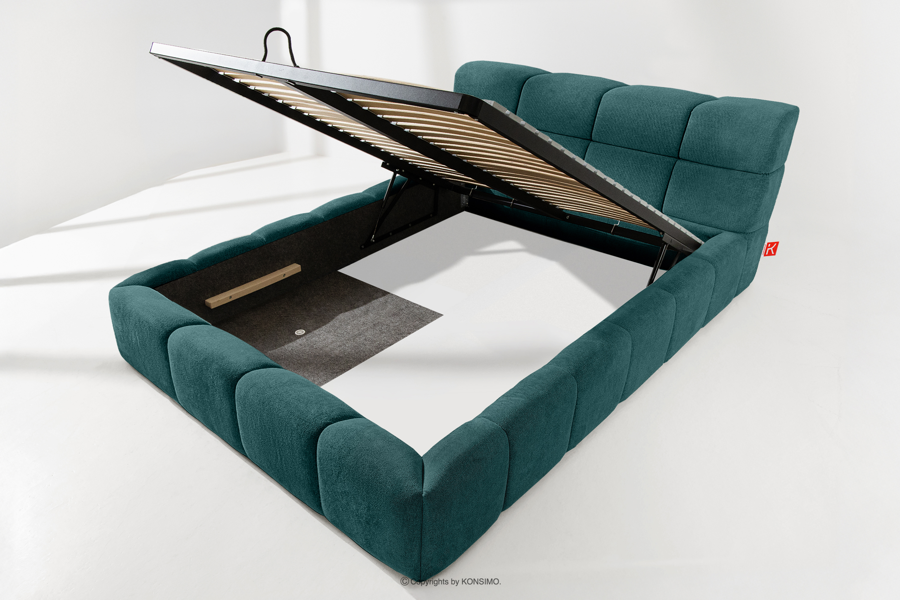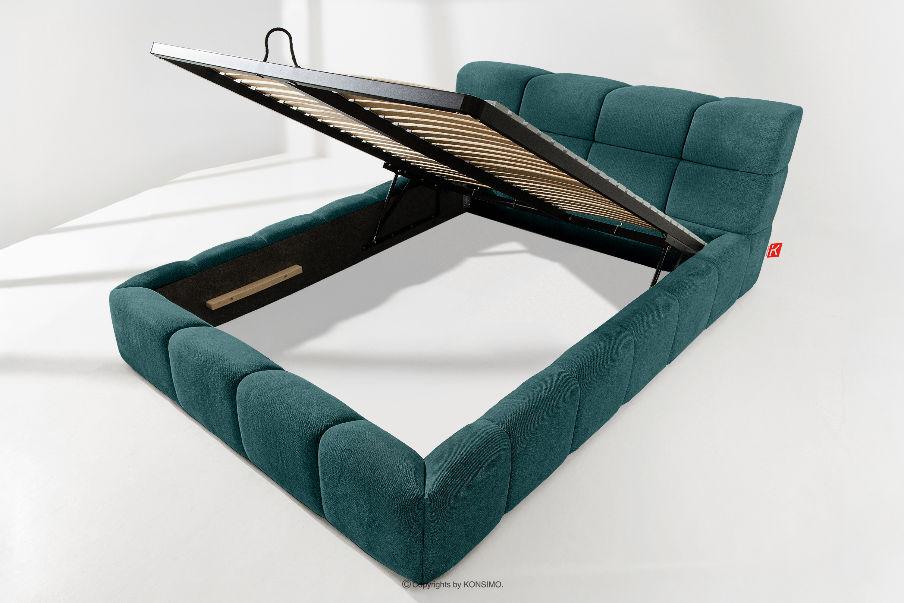 Praktyczny pojemnik na pościel, otwierany za pomocą gazowych siłowników, to nowoczesne rozwiązanie, które ułatwia dostęp do przechowywanych rzeczy, bez potrzeby dużego wysiłku. Funkcjonalność tego mechanizmu sprawia, że pojemnik otwiera się płynnie i lekko, co dodatkowo zwiększa komfort użytkowania.