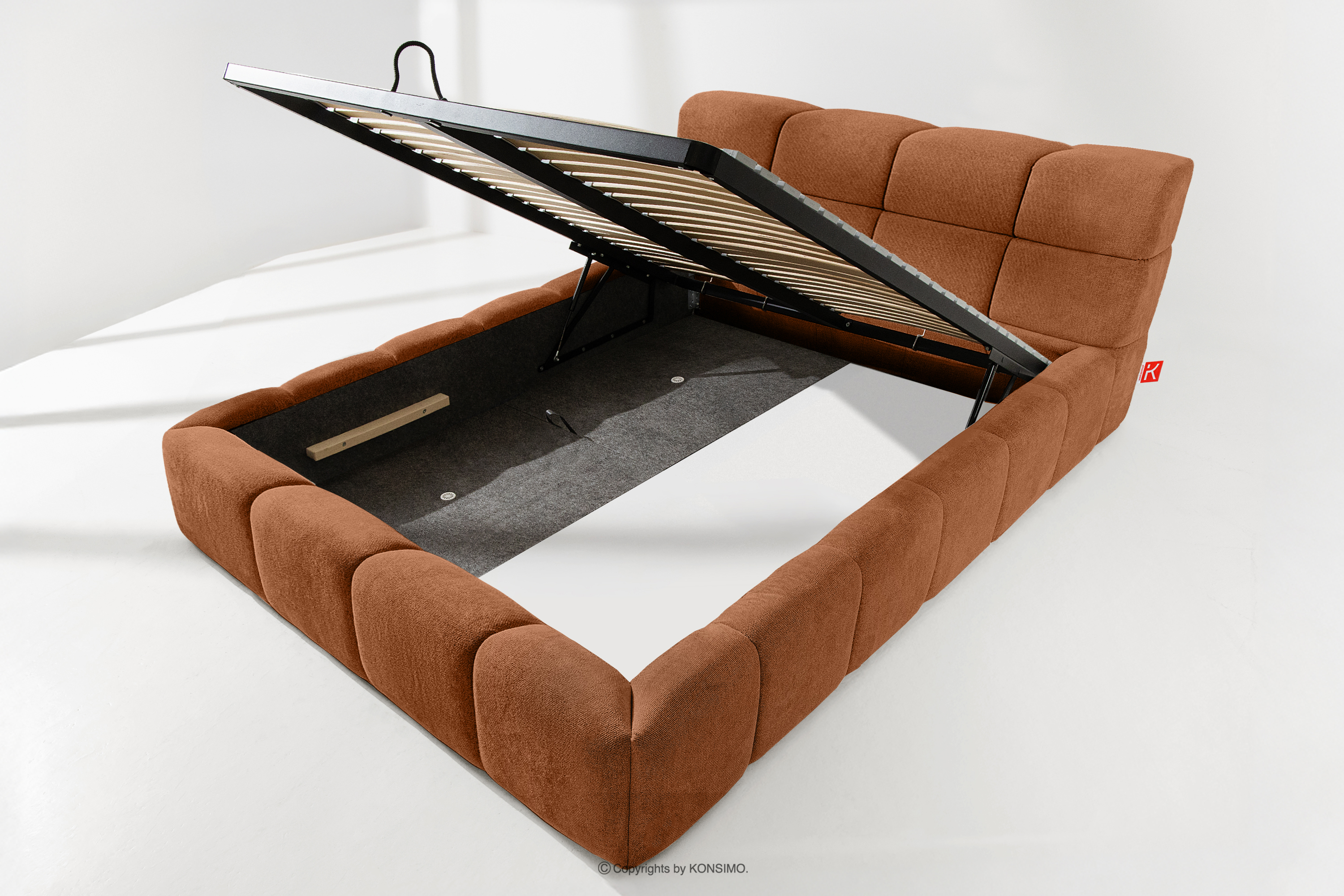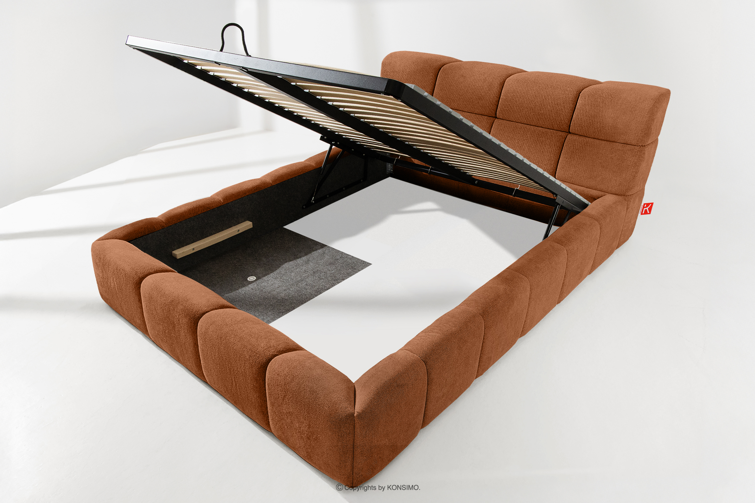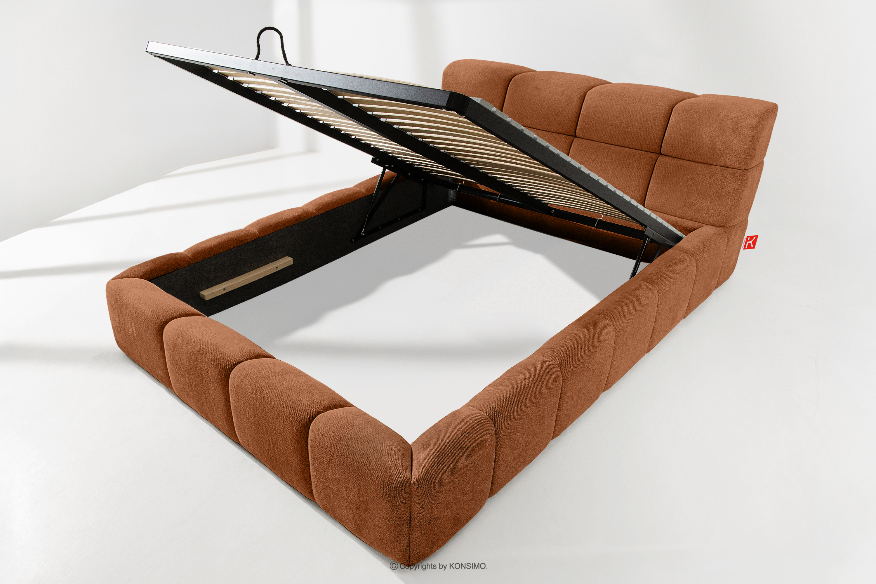 AERI zobacz całą kolekcję Tapicerowane łóżko z zagłówkiem rudy 140 cm- kolor rudy