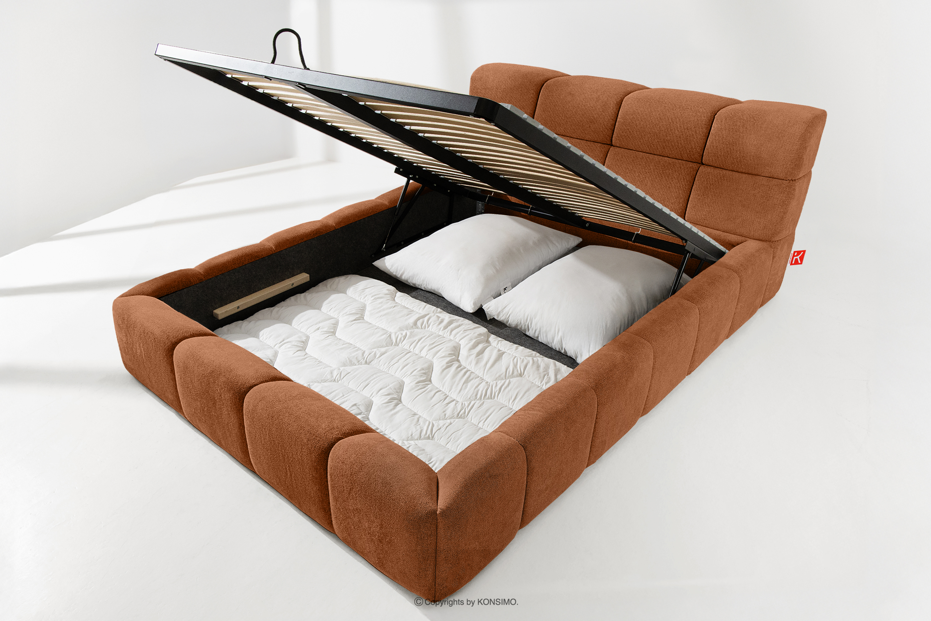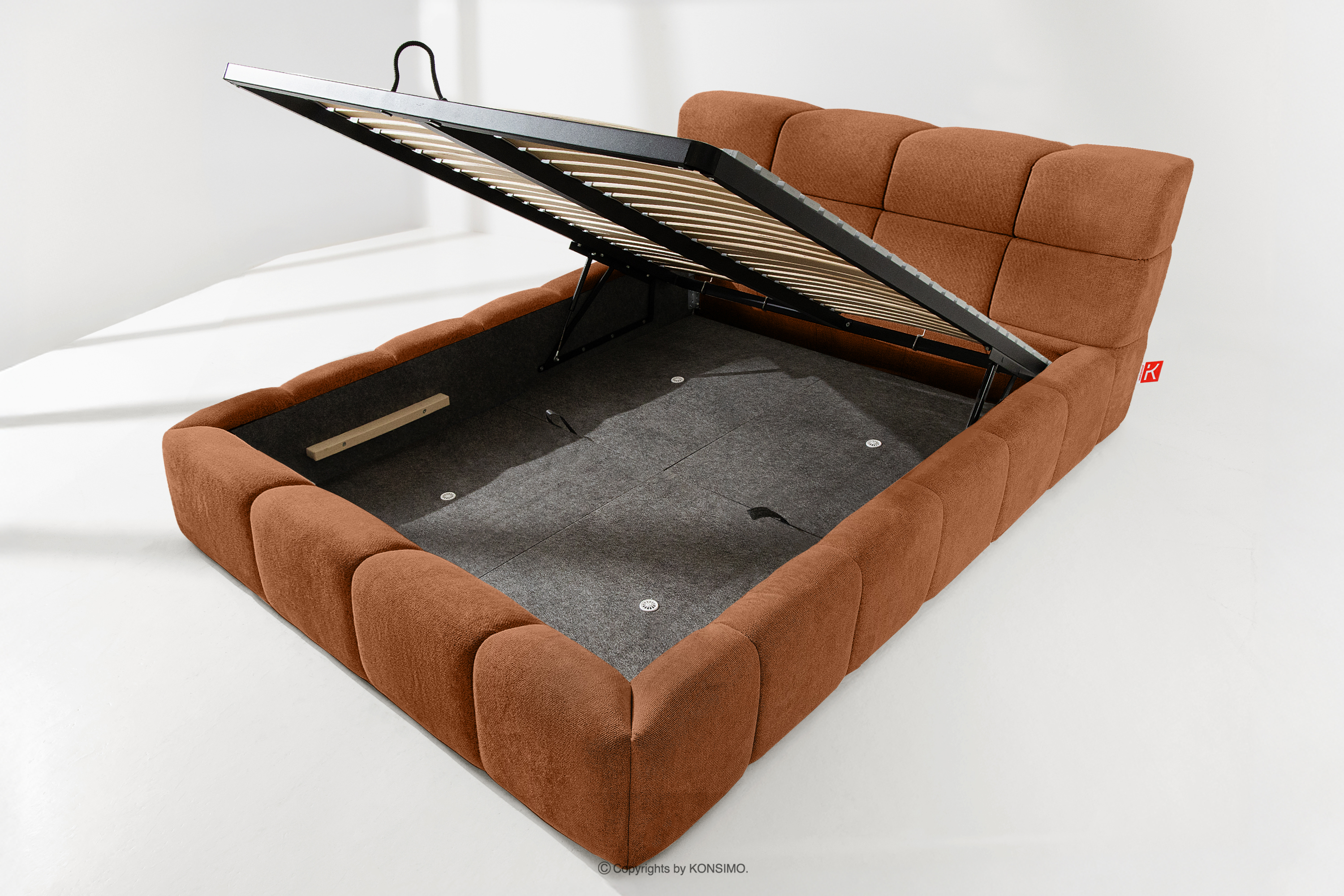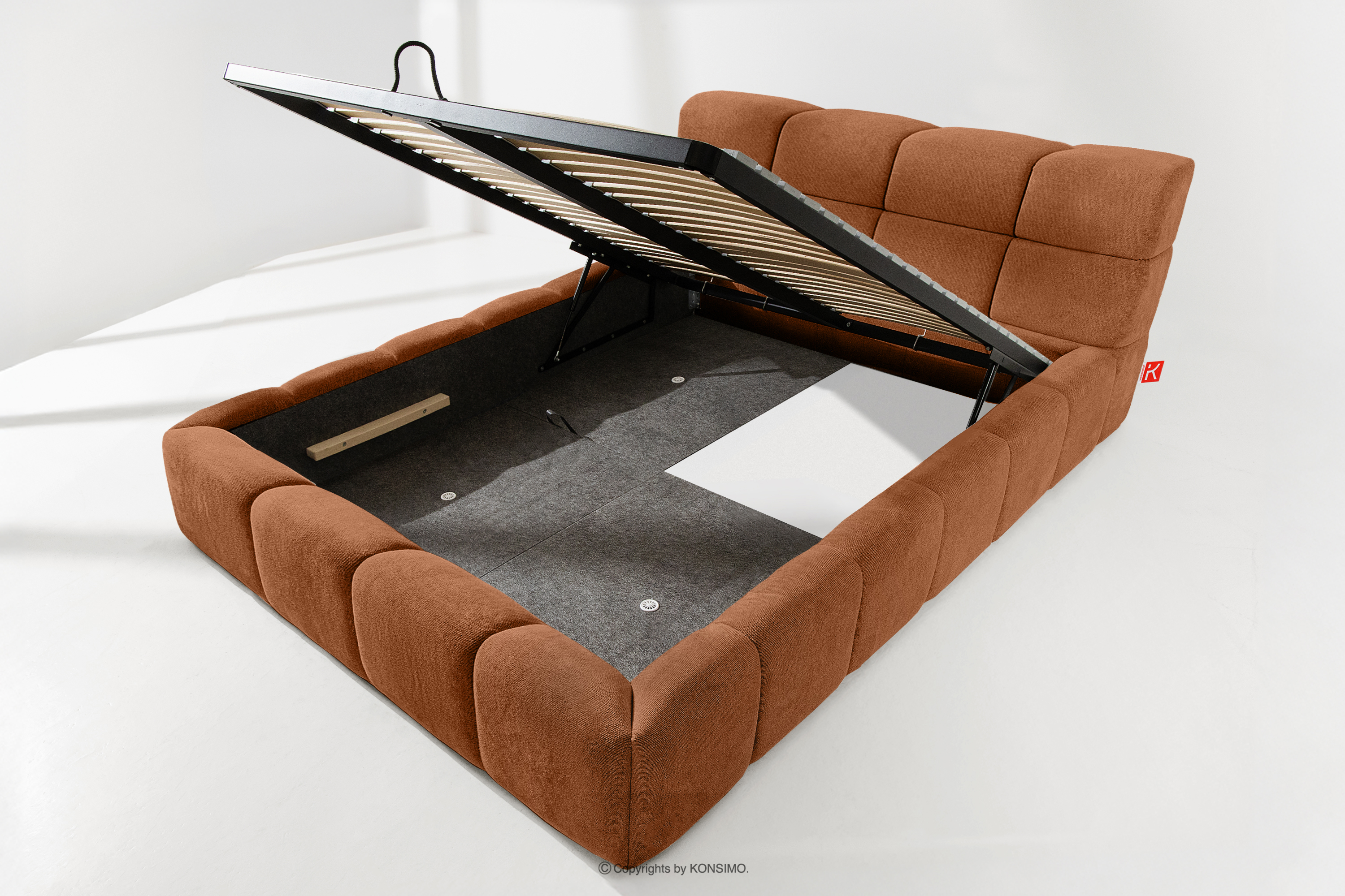AERI zobacz całą kolekcję Tapicerowane łóżko z zagłówkiem rudy 140 cm- kolor rudy