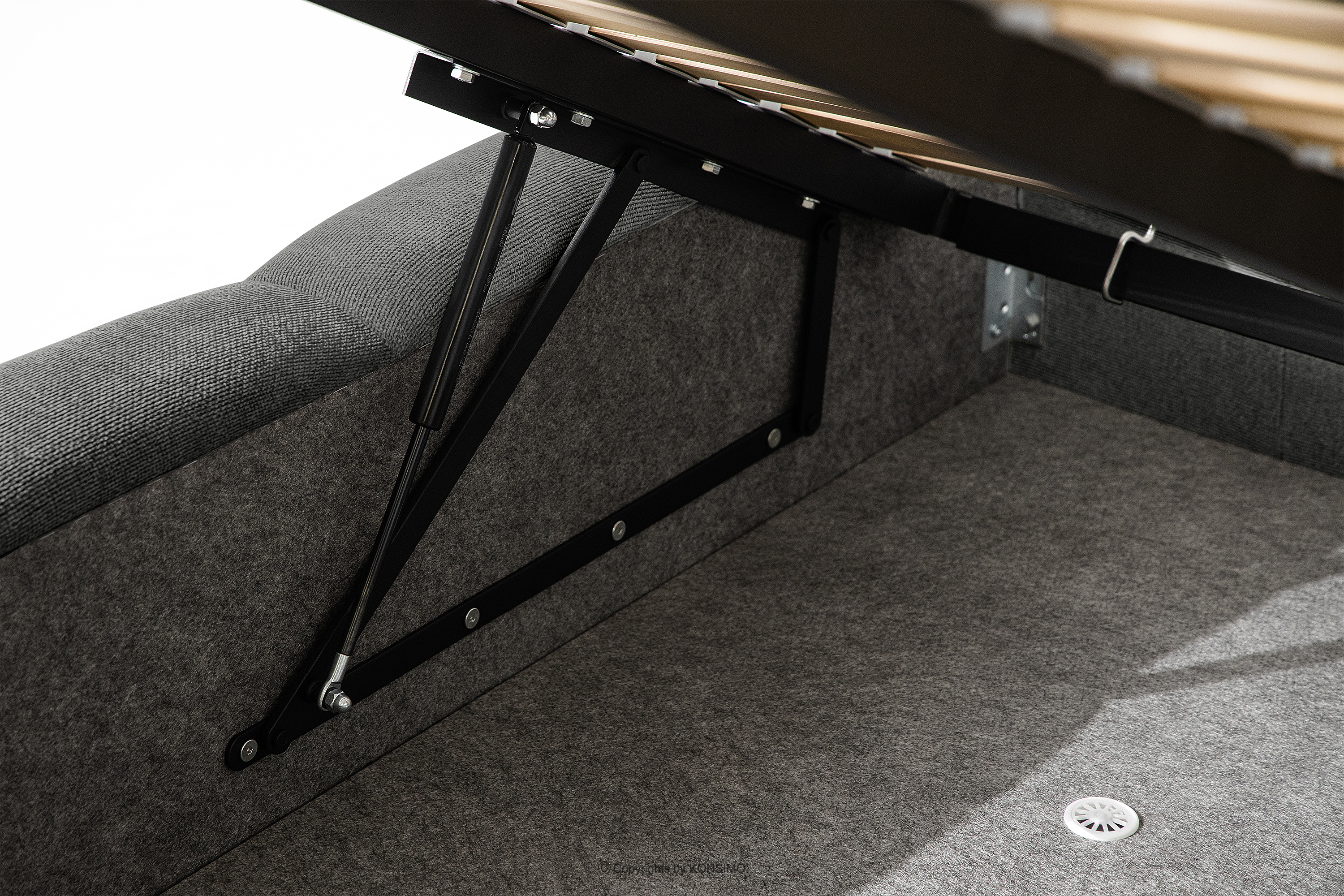 Praktyczny pojemnik na pościel, otwierany za pomocą gazowych siłowników, to nowoczesne rozwiązanie, które ułatwia dostęp do przechowywanych rzeczy, bez potrzeby dużego wysiłku. Funkcjonalność tego mechanizmu sprawia, że pojemnik otwiera się płynnie i lekko, co dodatkowo zwiększa komfort użytkowania.