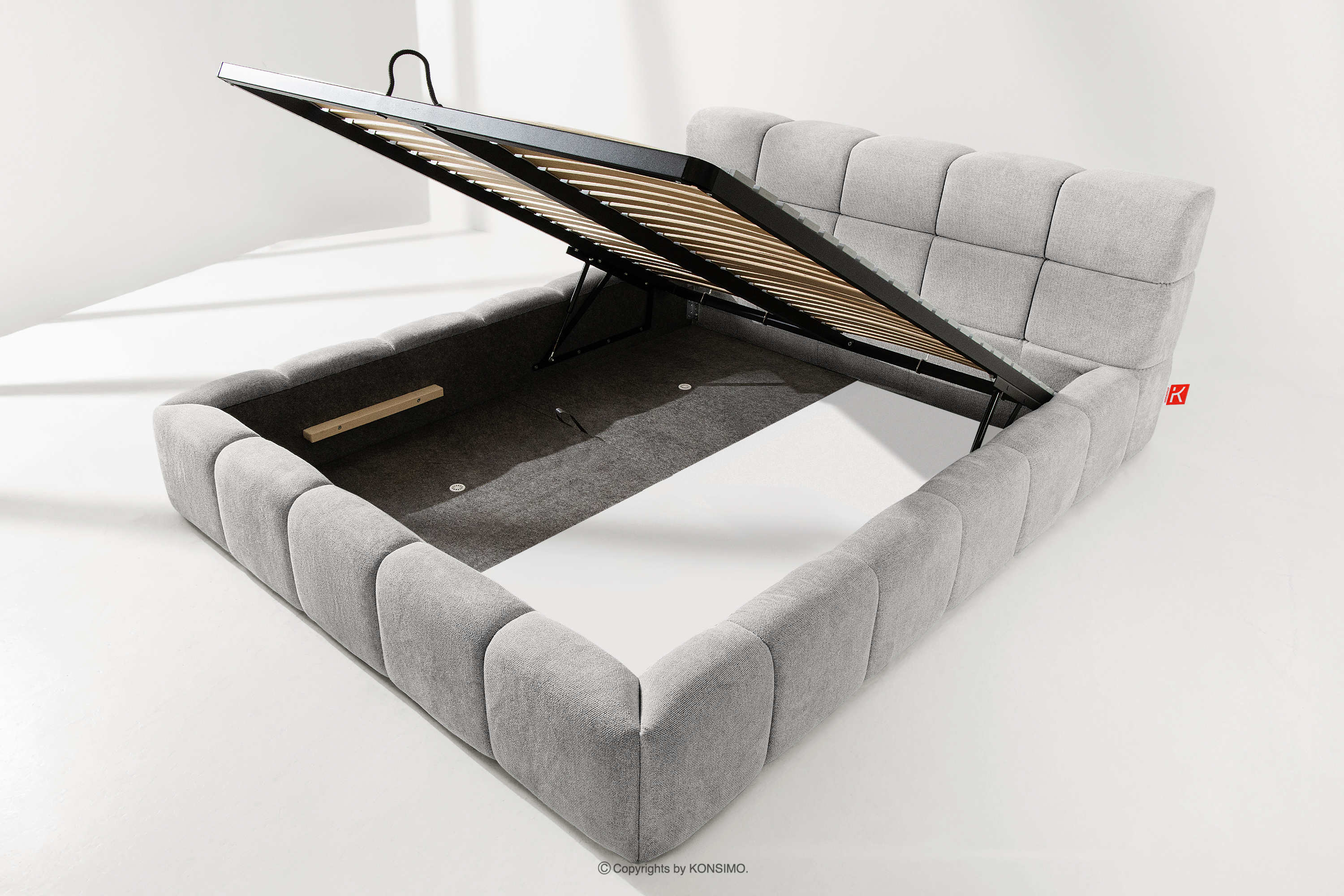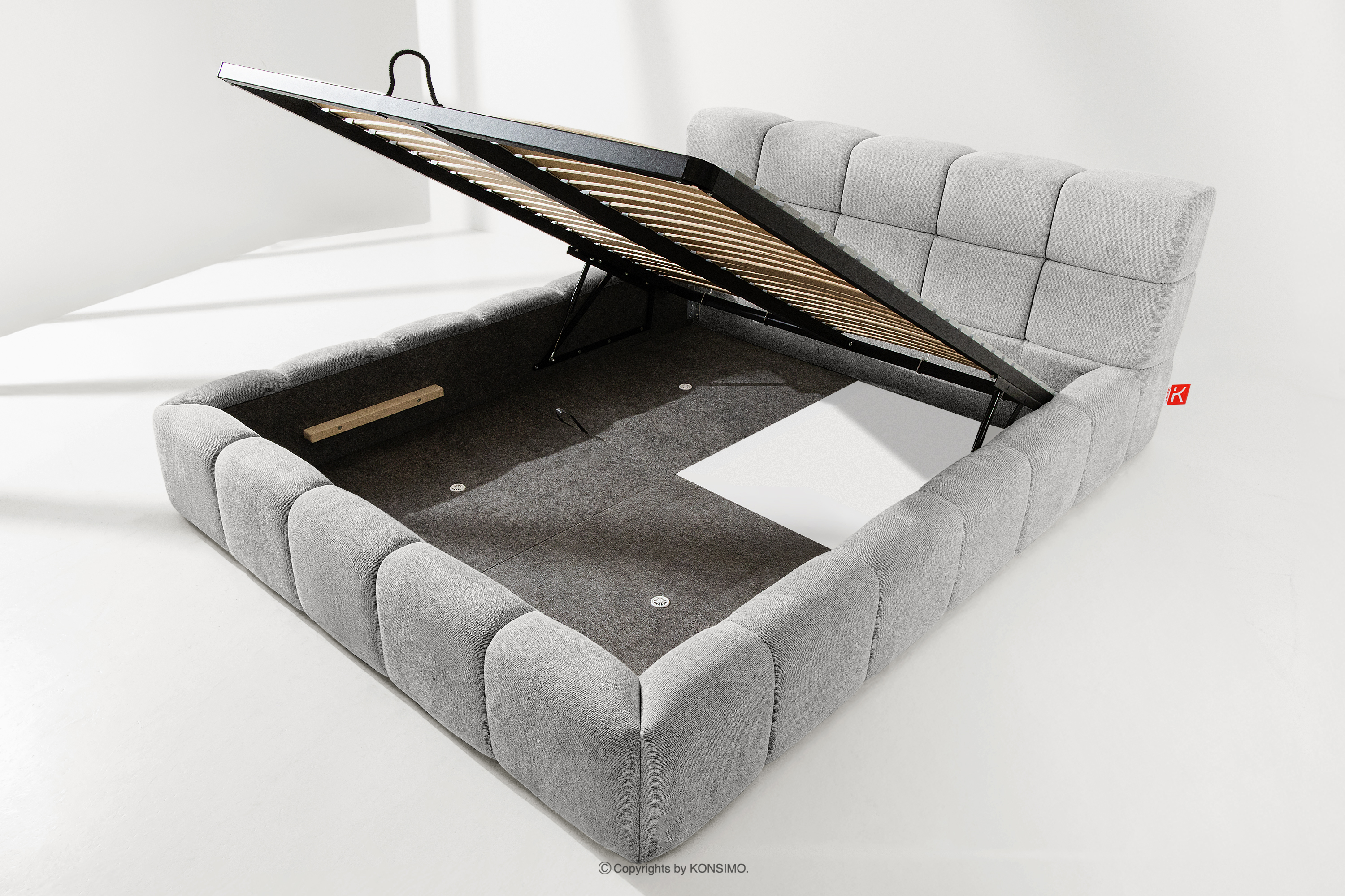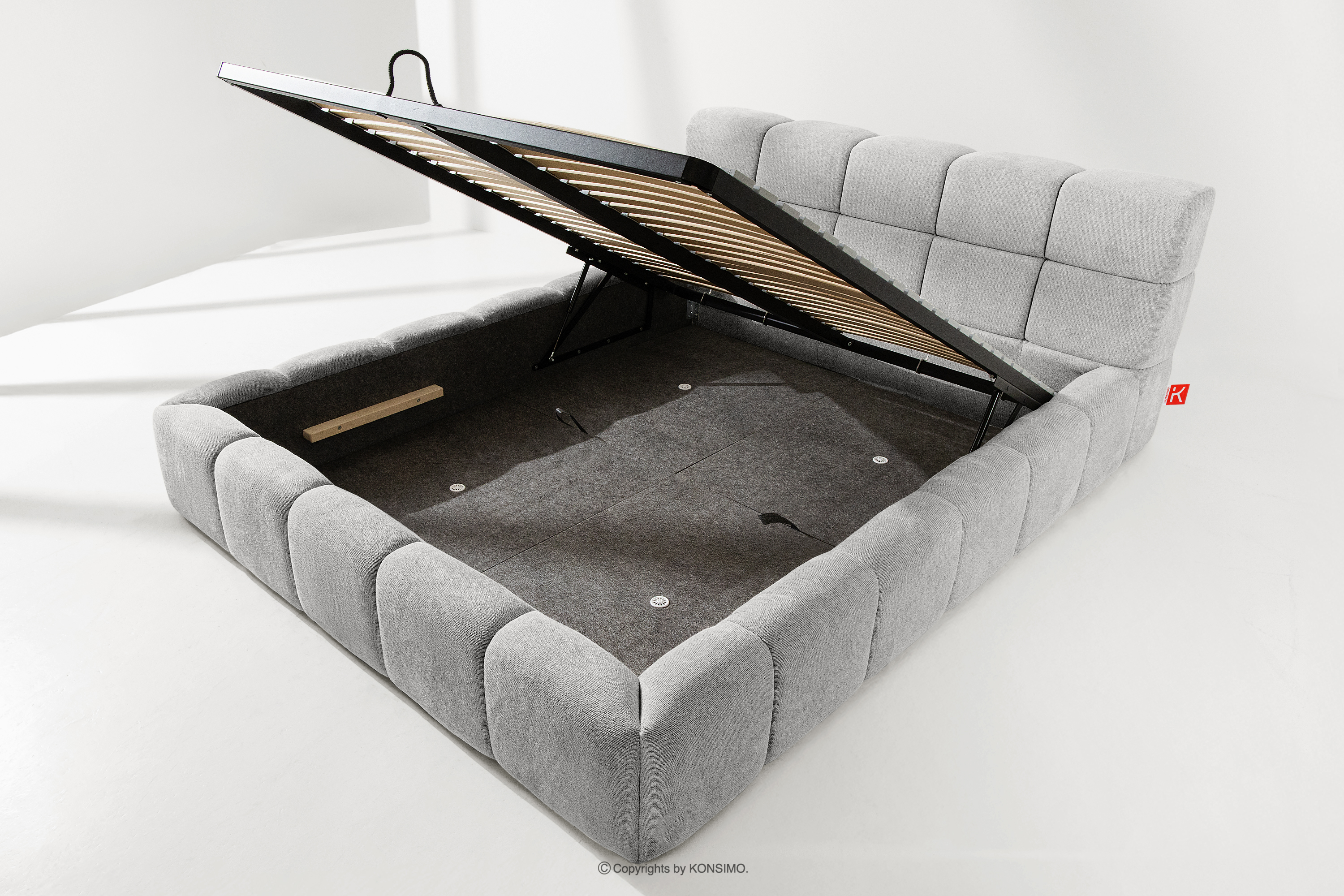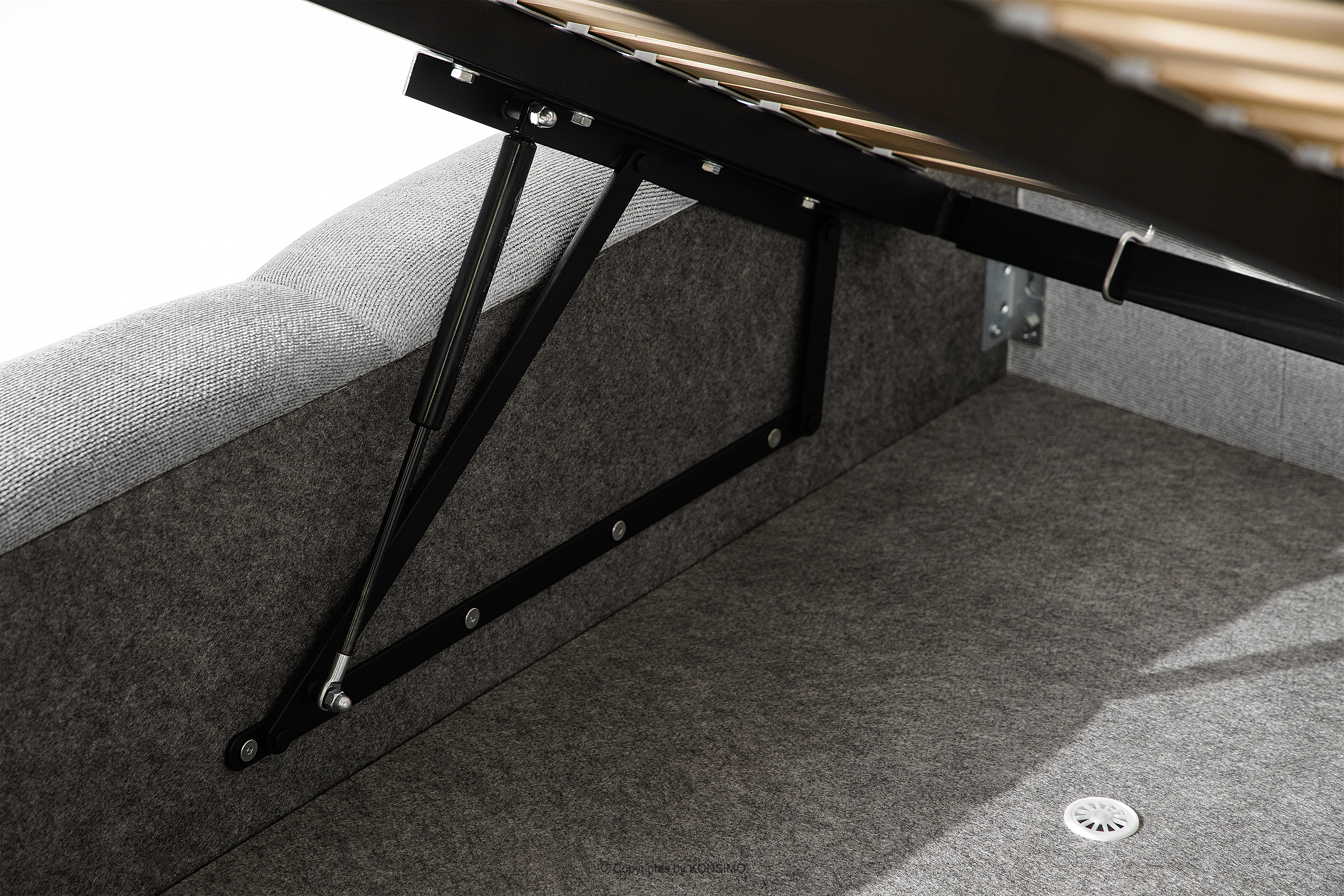 Praktyczny pojemnik na pościel, otwierany za pomocą gazowych siłowników, to nowoczesne rozwiązanie, które ułatwia dostęp do przechowywanych rzeczy, bez potrzeby dużego wysiłku. Funkcjonalność tego mechanizmu sprawia, że pojemnik otwiera się płynnie i lekko, co dodatkowo zwiększa komfort użytkowania.