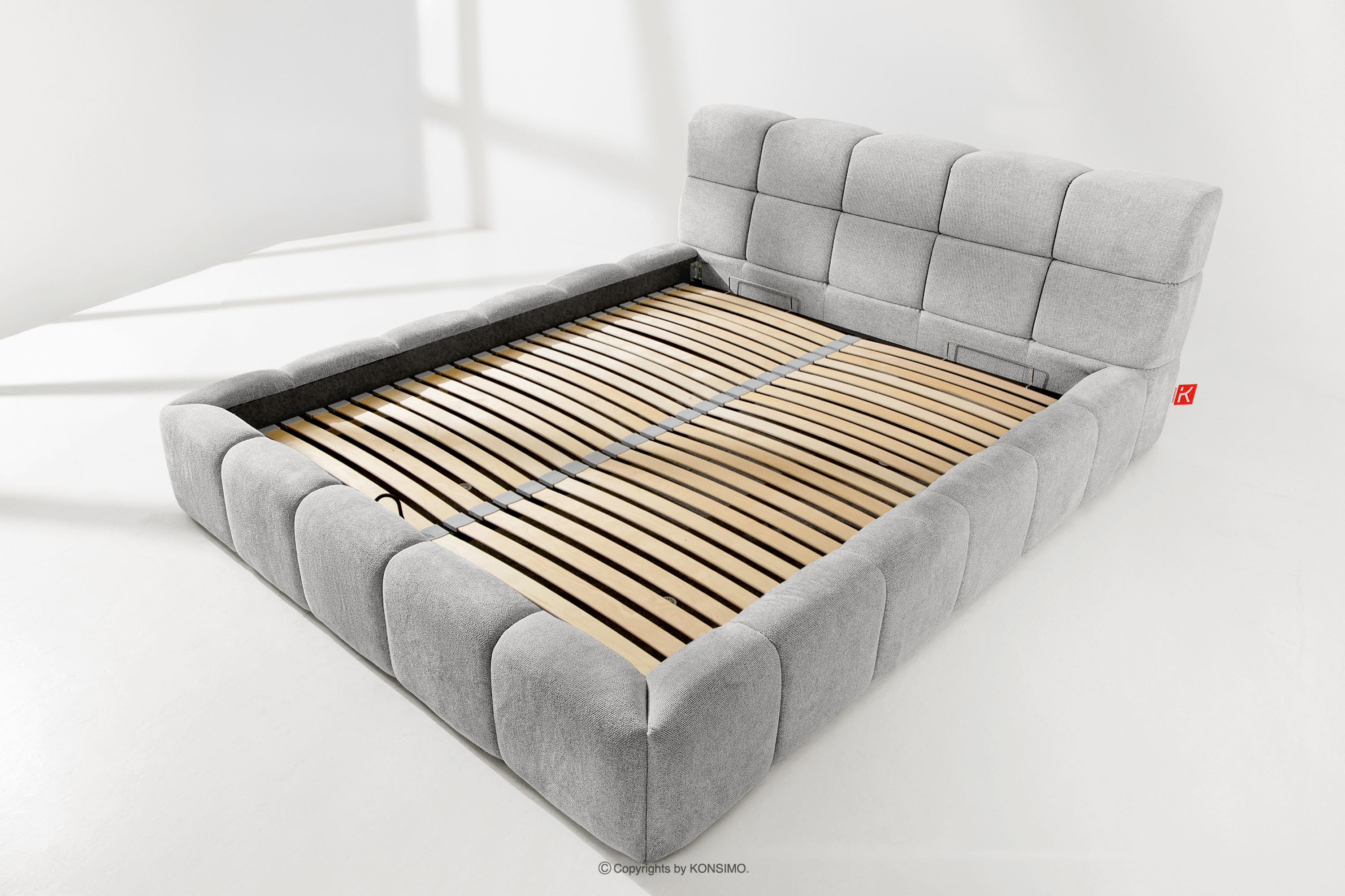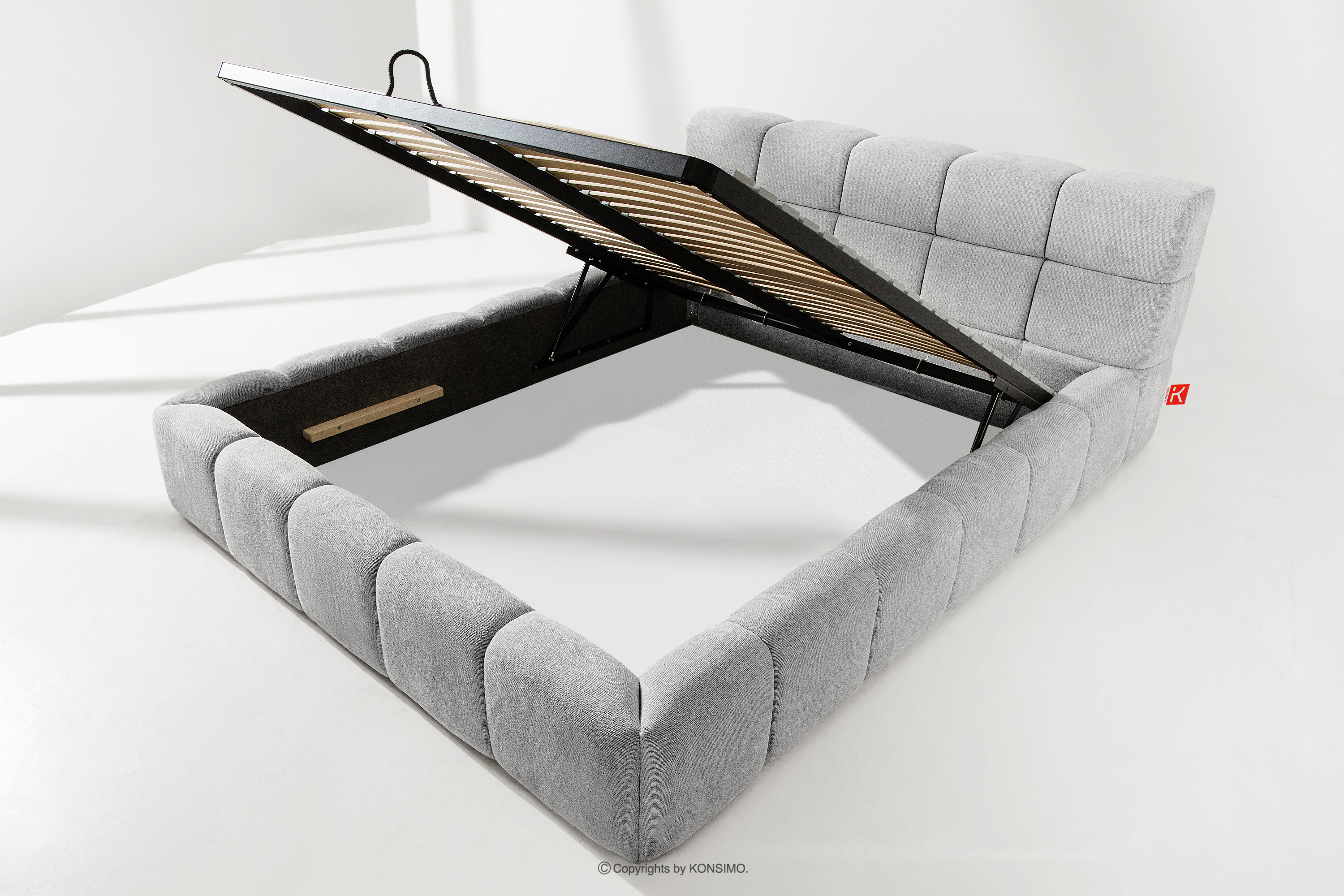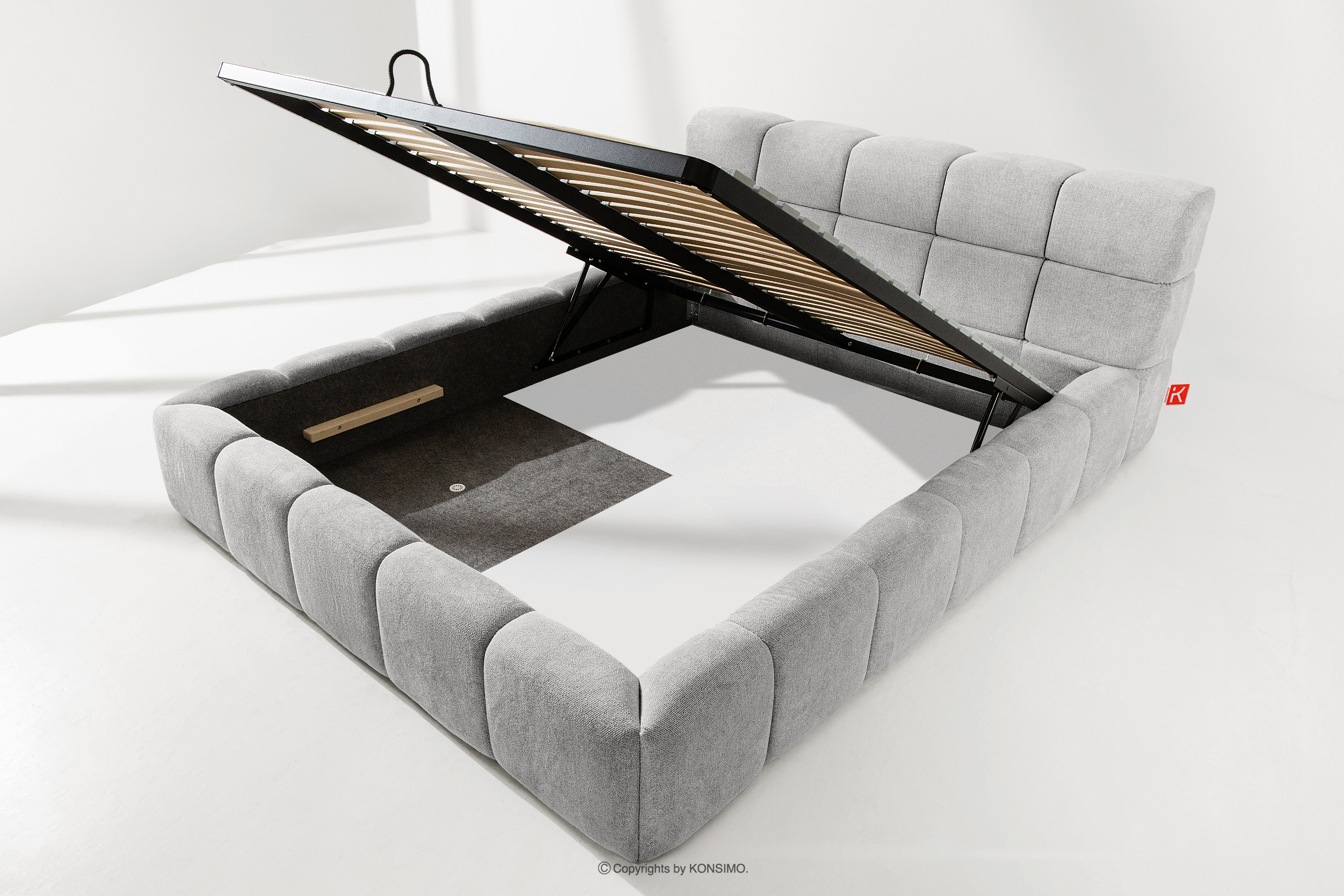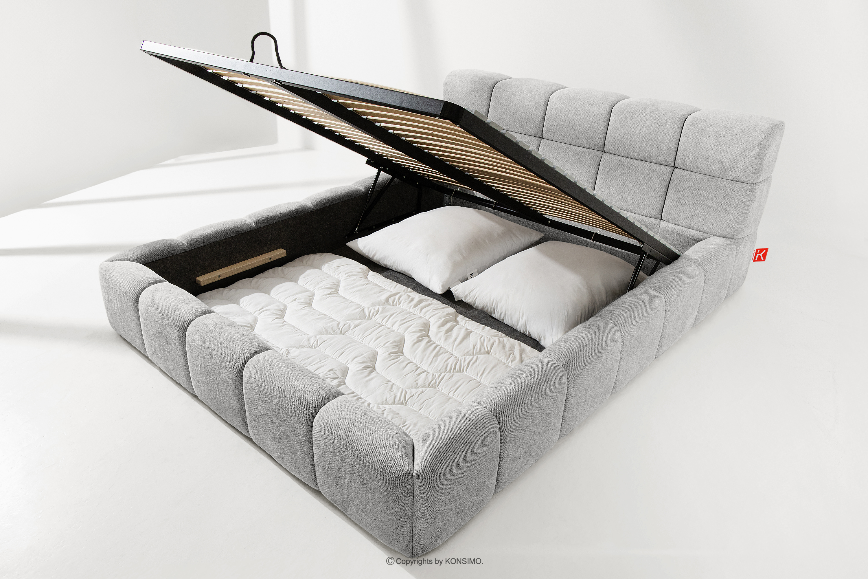 Praktyczny pojemnik na pościel, otwierany za pomocą gazowych siłowników, to nowoczesne rozwiązanie, które ułatwia dostęp do przechowywanych rzeczy, bez potrzeby dużego wysiłku. Funkcjonalność tego mechanizmu sprawia, że pojemnik otwiera się płynnie i lekko, co dodatkowo zwiększa komfort użytkowania.