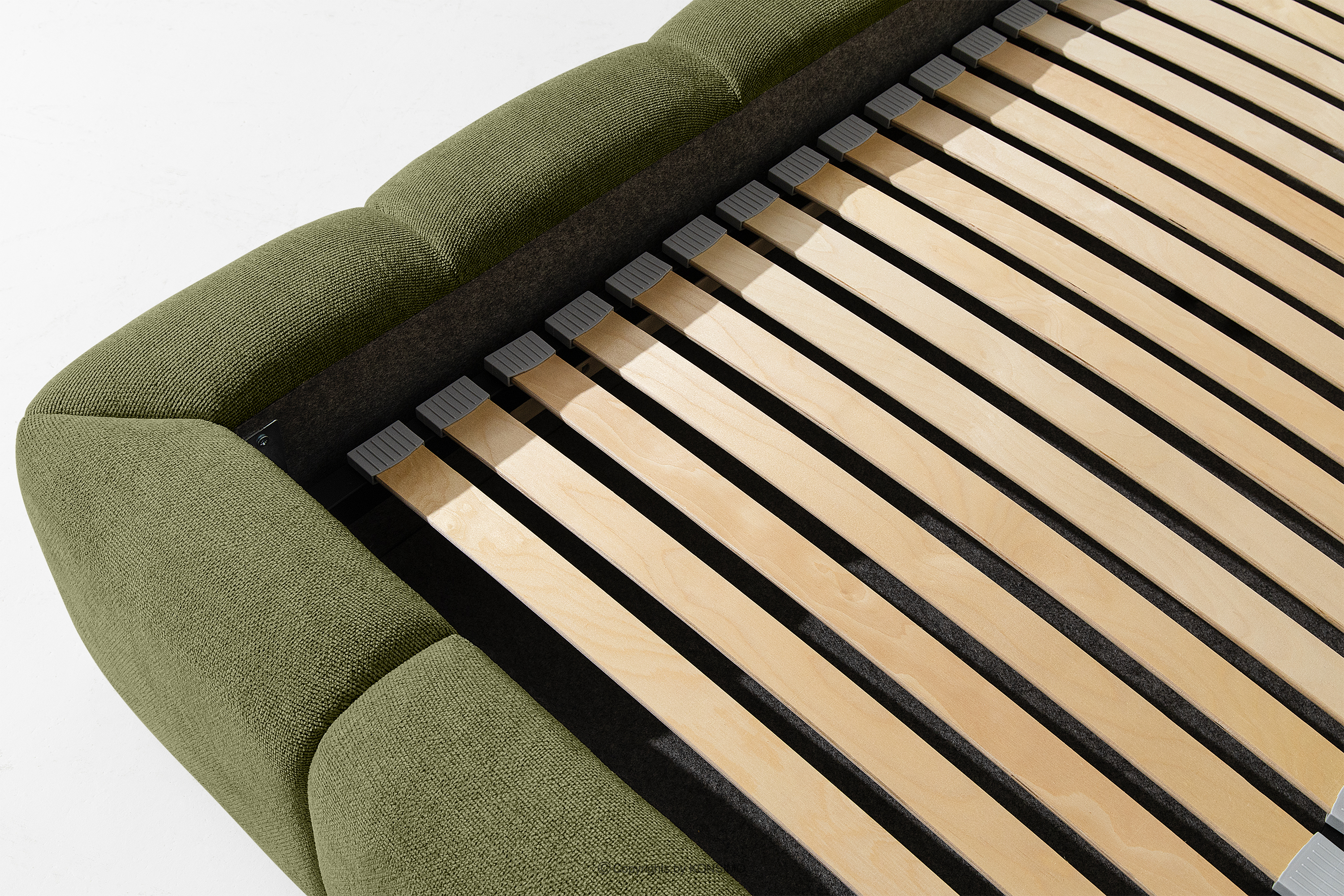 Łóżko 160 z zagłówkiem oliwkowy to harmonijne połączenie prostoty skandynawskiego stylu z wyjątkową wygodą użytkowania. Jego unikalna forma, inspirowana kształtem chmurki, przyciąga uwagę swoim oryginalnym wyglądem, a jednocześnie zapewnia komfort na najwyższym poziomie. Konstrukcja opiera się na elastycznym stelażu z drewnianych listew, których dodatkowym atutem jest możliwość regulacji twardości łóżka – dzięki wyjmowanym listwom, można dostosować poziom miękkości do indywidualnych preferencji.