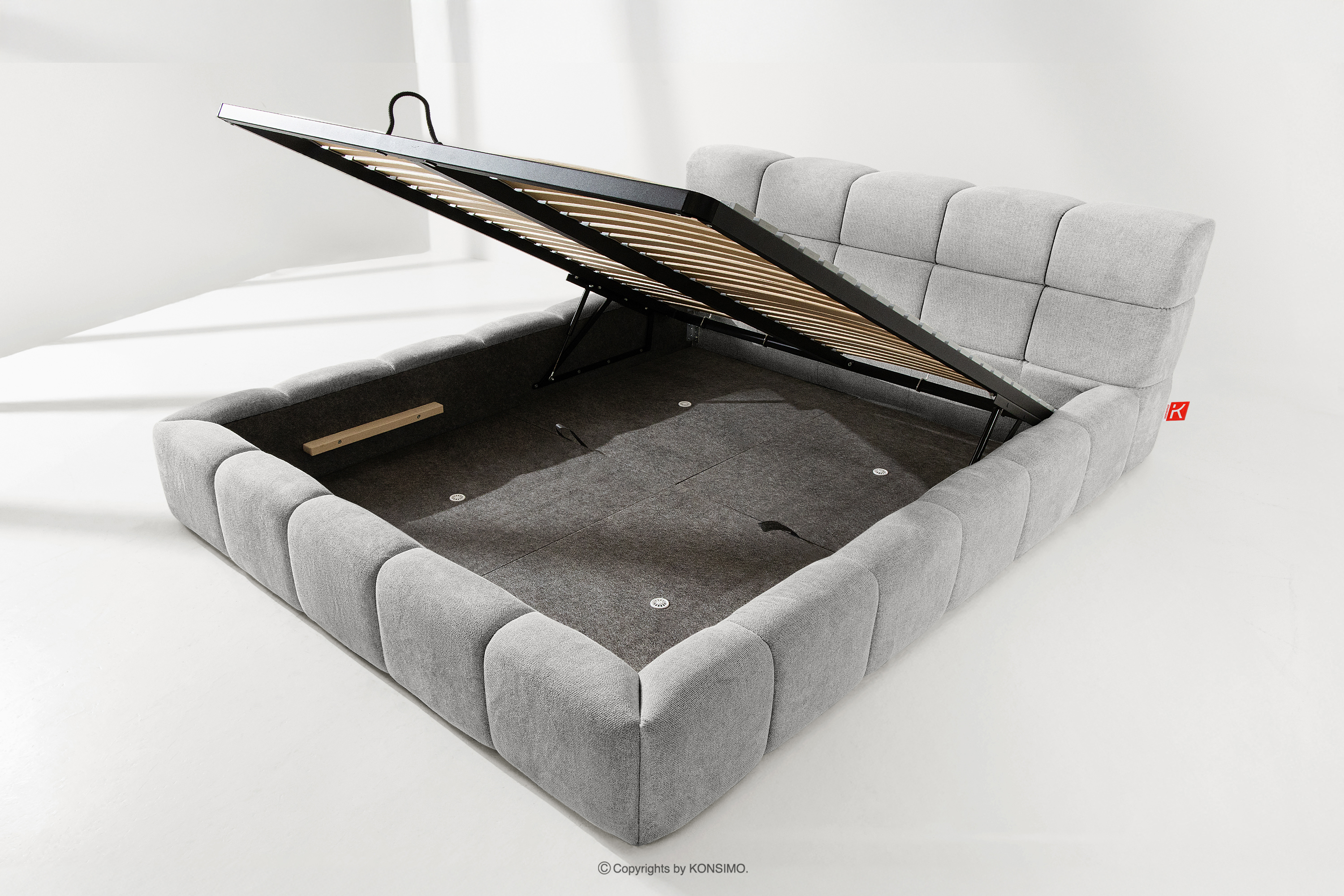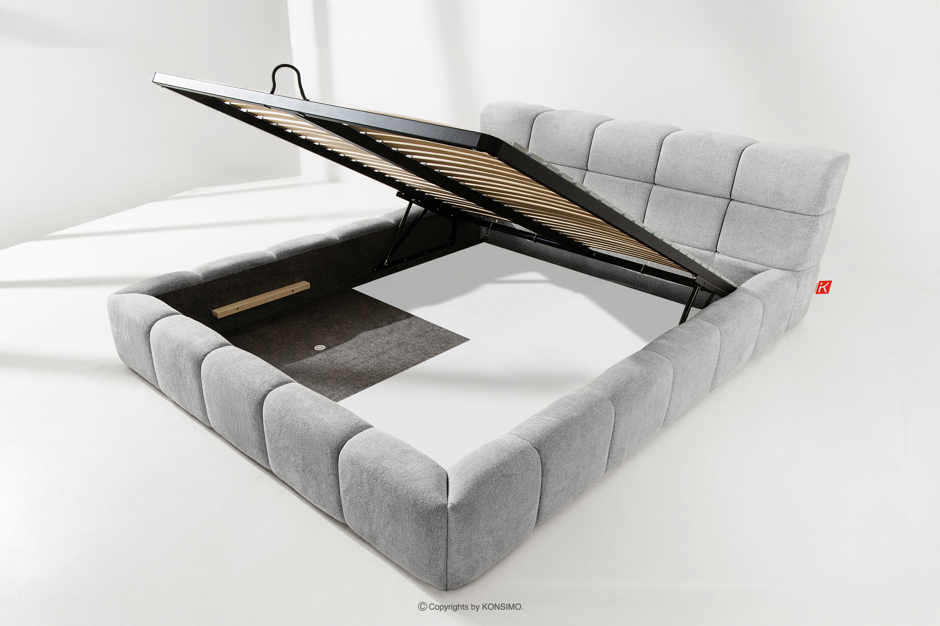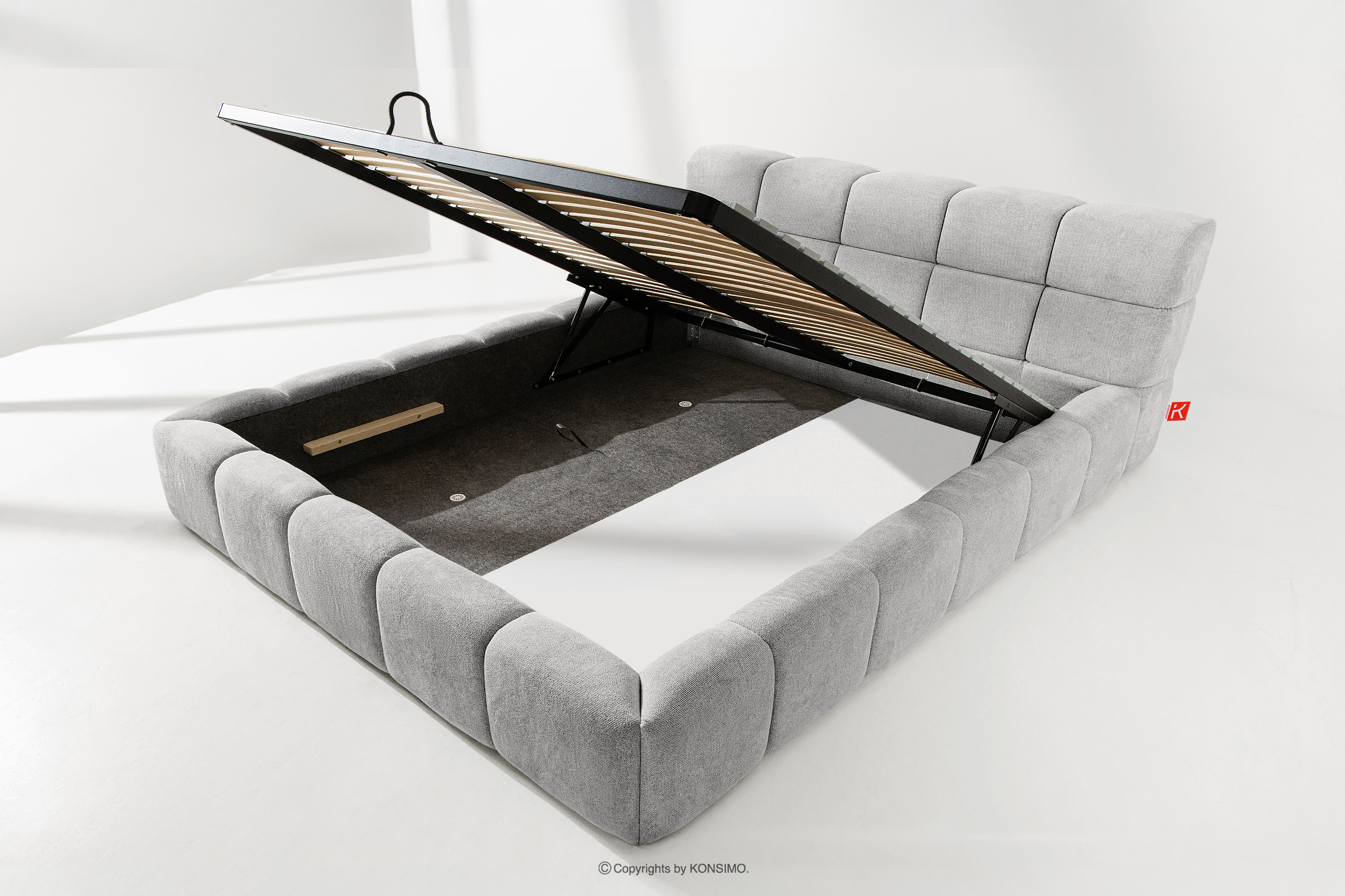Praktyczny pojemnik na pościel, otwierany za pomocą gazowych siłowników, to nowoczesne rozwiązanie, które ułatwia dostęp do przechowywanych rzeczy, bez potrzeby dużego wysiłku. Funkcjonalność tego mechanizmu sprawia, że pojemnik otwiera się płynnie i lekko, co dodatkowo zwiększa komfort użytkowania.