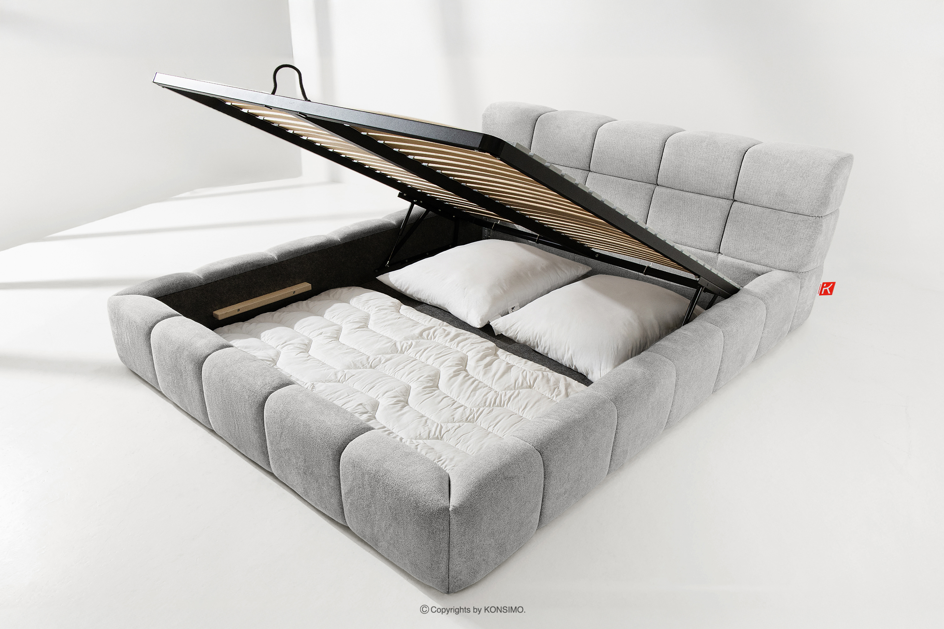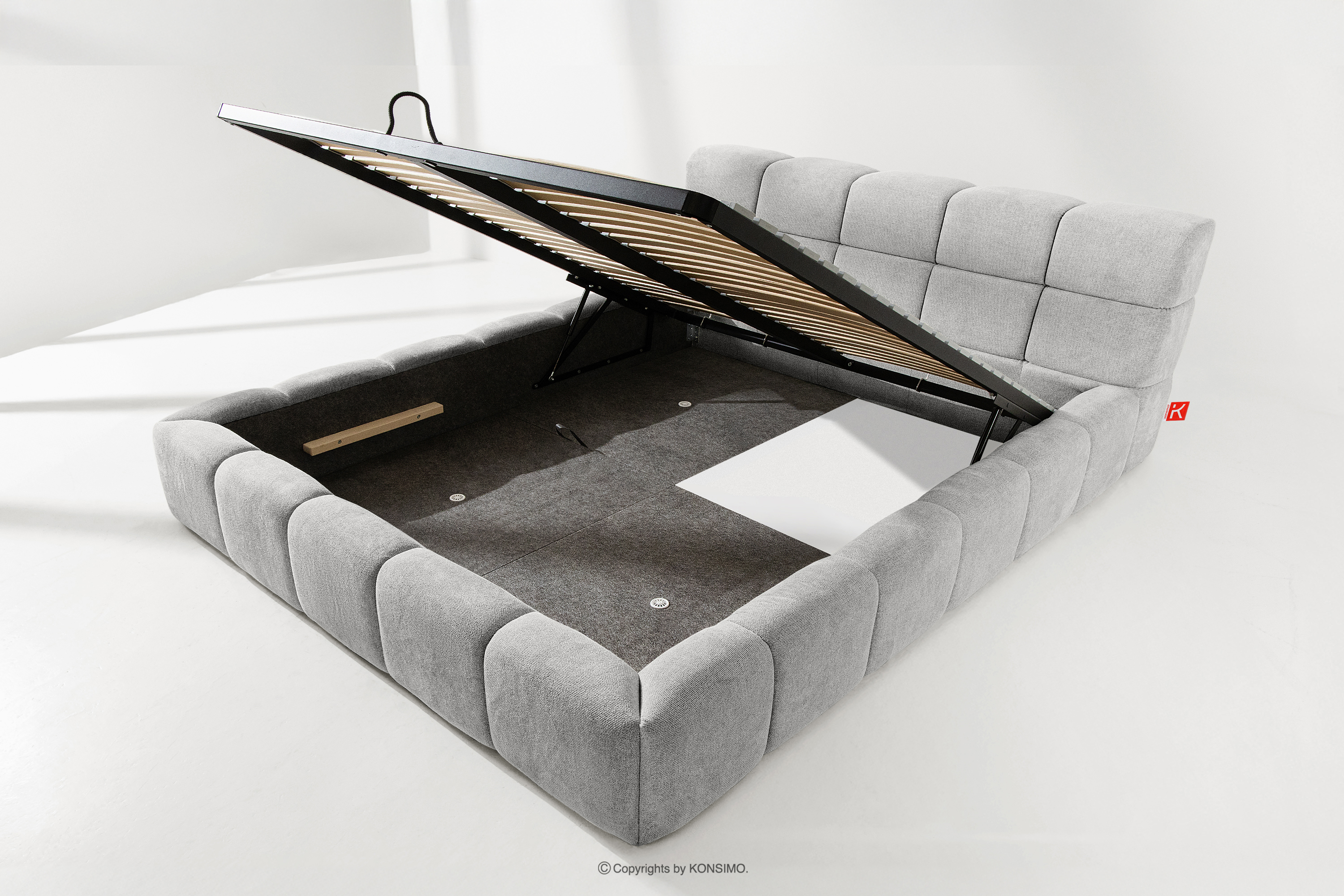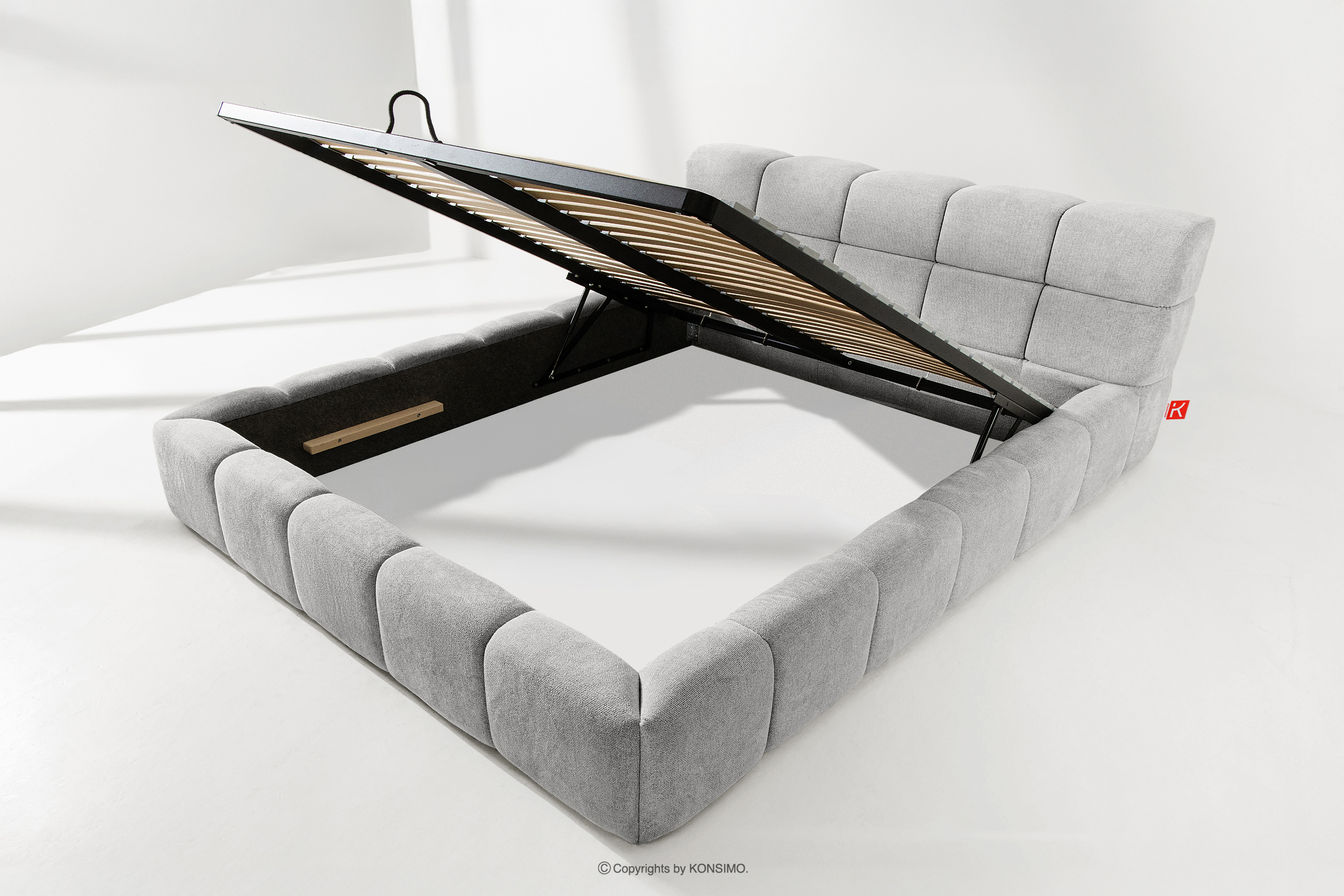 Praktyczny pojemnik na pościel, otwierany za pomocą gazowych siłowników, to nowoczesne rozwiązanie, które ułatwia dostęp do przechowywanych rzeczy, bez potrzeby dużego wysiłku. Funkcjonalność tego mechanizmu sprawia, że pojemnik otwiera się płynnie i lekko, co dodatkowo zwiększa komfort użytkowania.