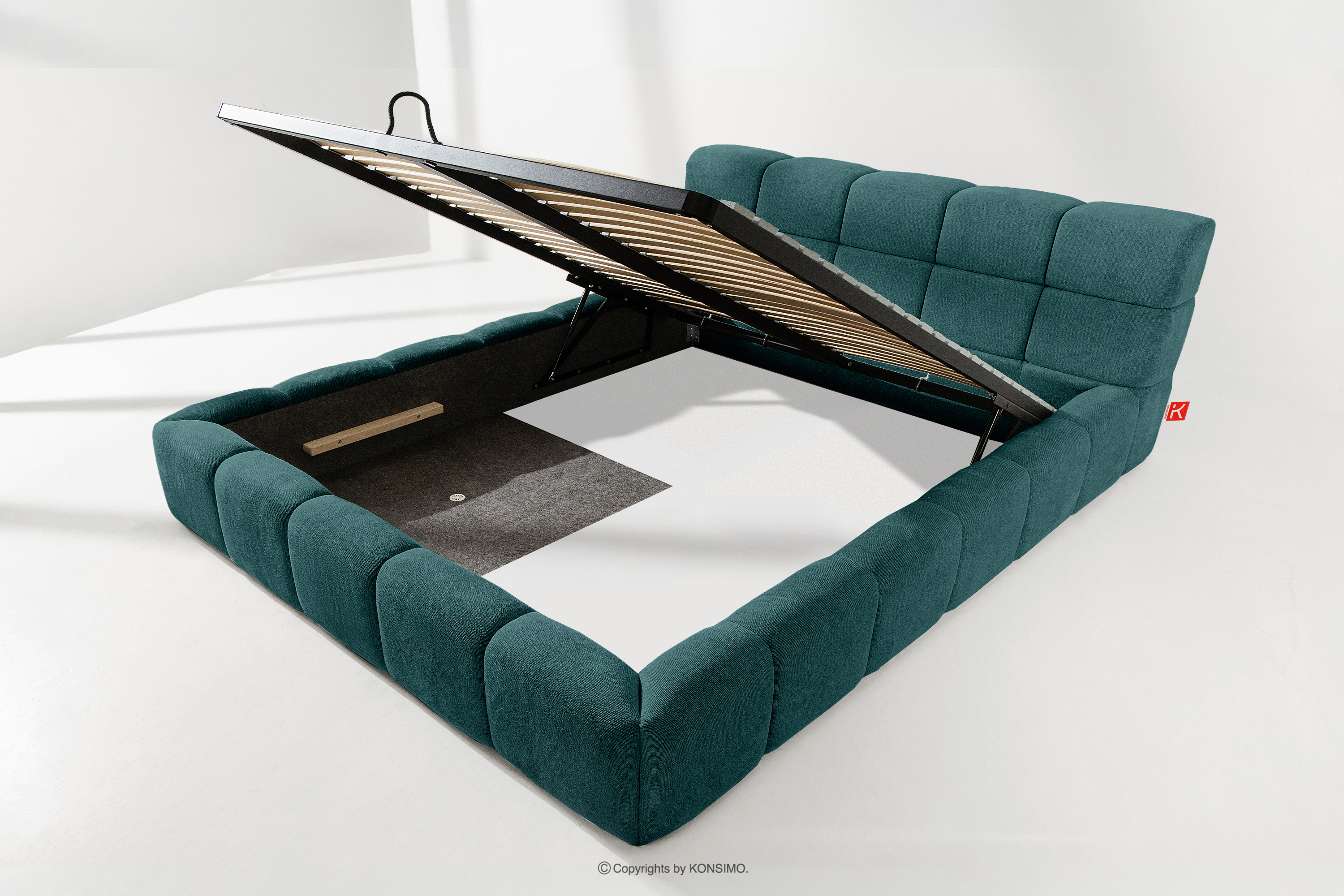 Praktyczny pojemnik na pościel, otwierany za pomocą gazowych siłowników, to nowoczesne rozwiązanie, które ułatwia dostęp do przechowywanych rzeczy, bez potrzeby dużego wysiłku. Funkcjonalność tego mechanizmu sprawia, że pojemnik otwiera się płynnie i lekko, co dodatkowo zwiększa komfort użytkowania.