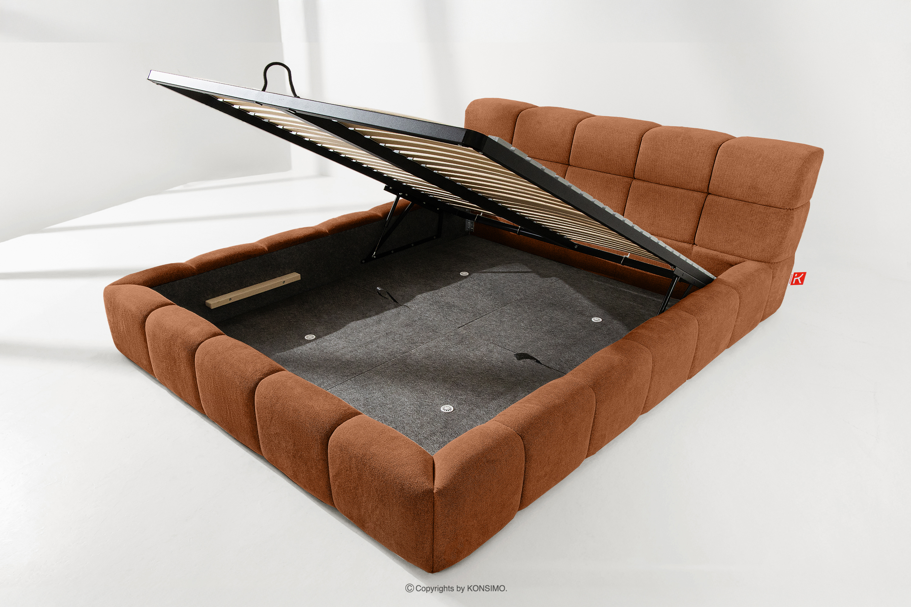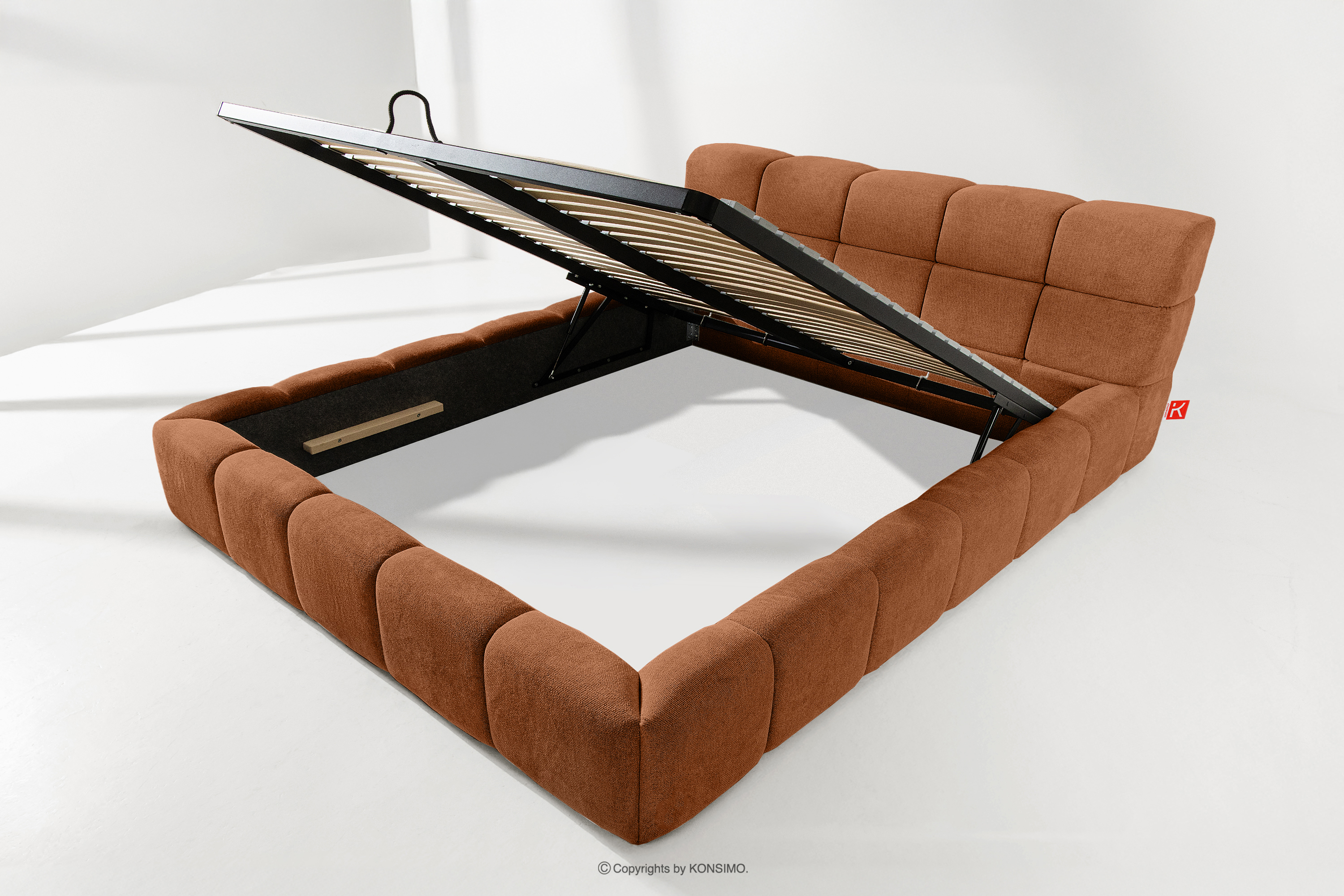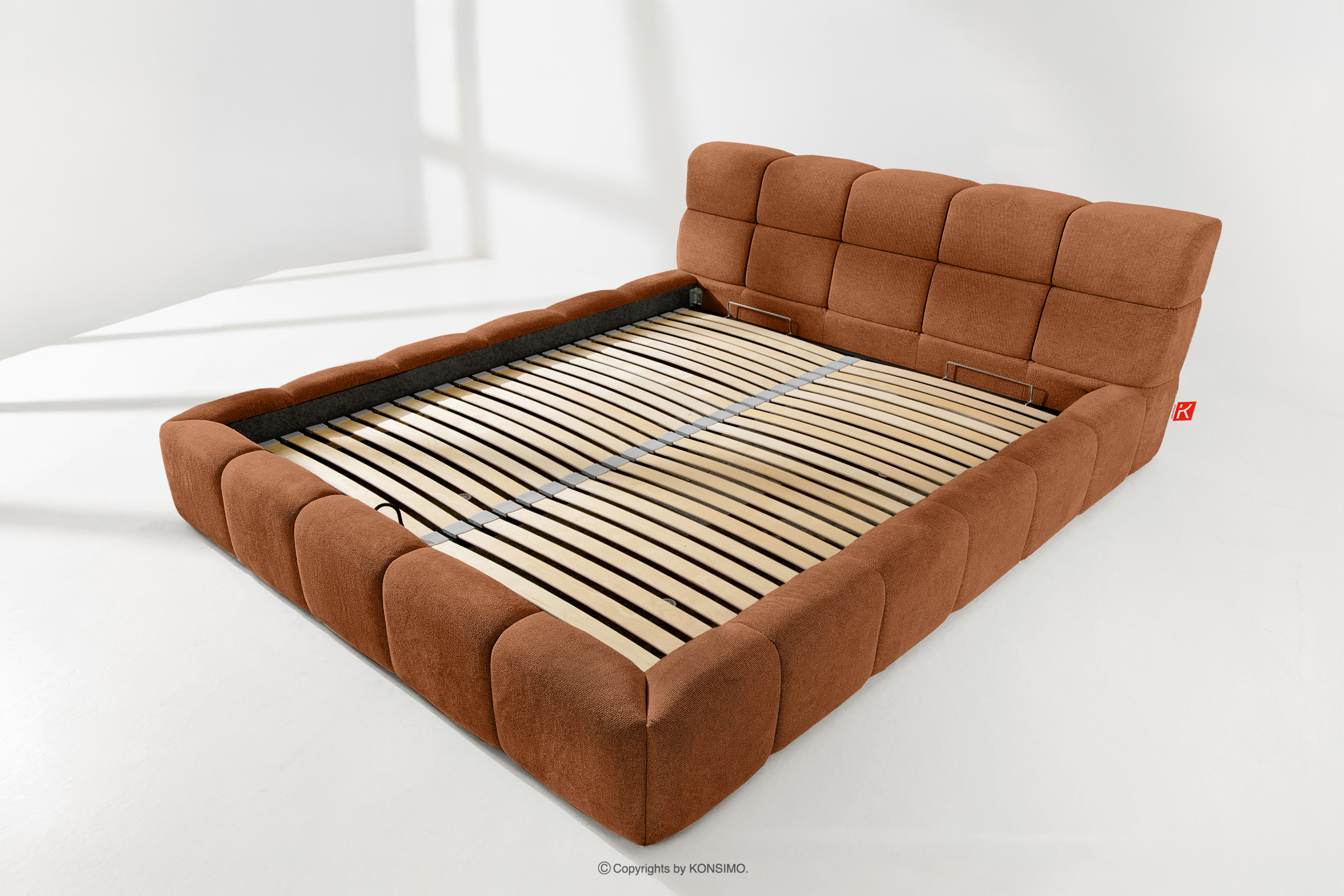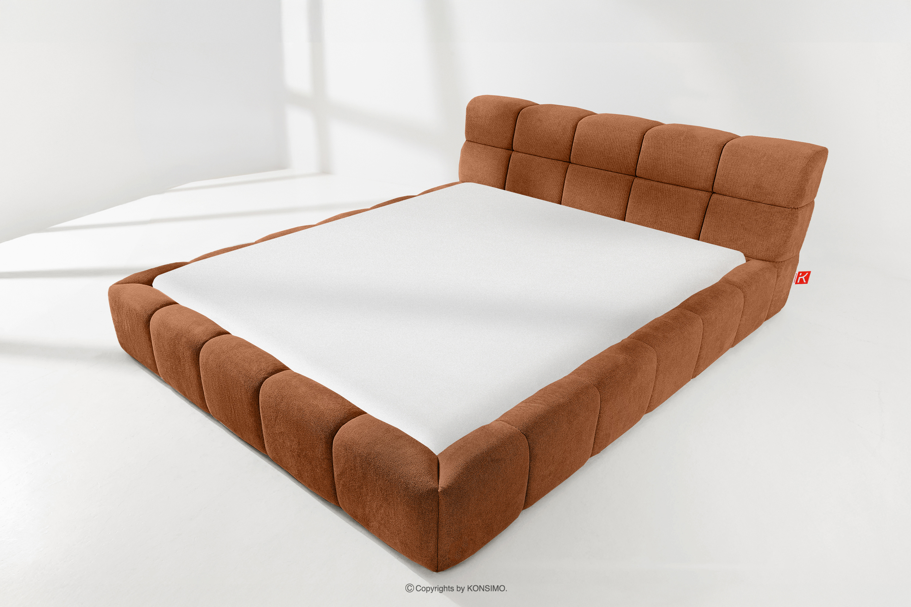 AERI zobacz całą kolekcję Tapicerowane łóżko z zagłówkiem rudy 180 cm- kolor rudy