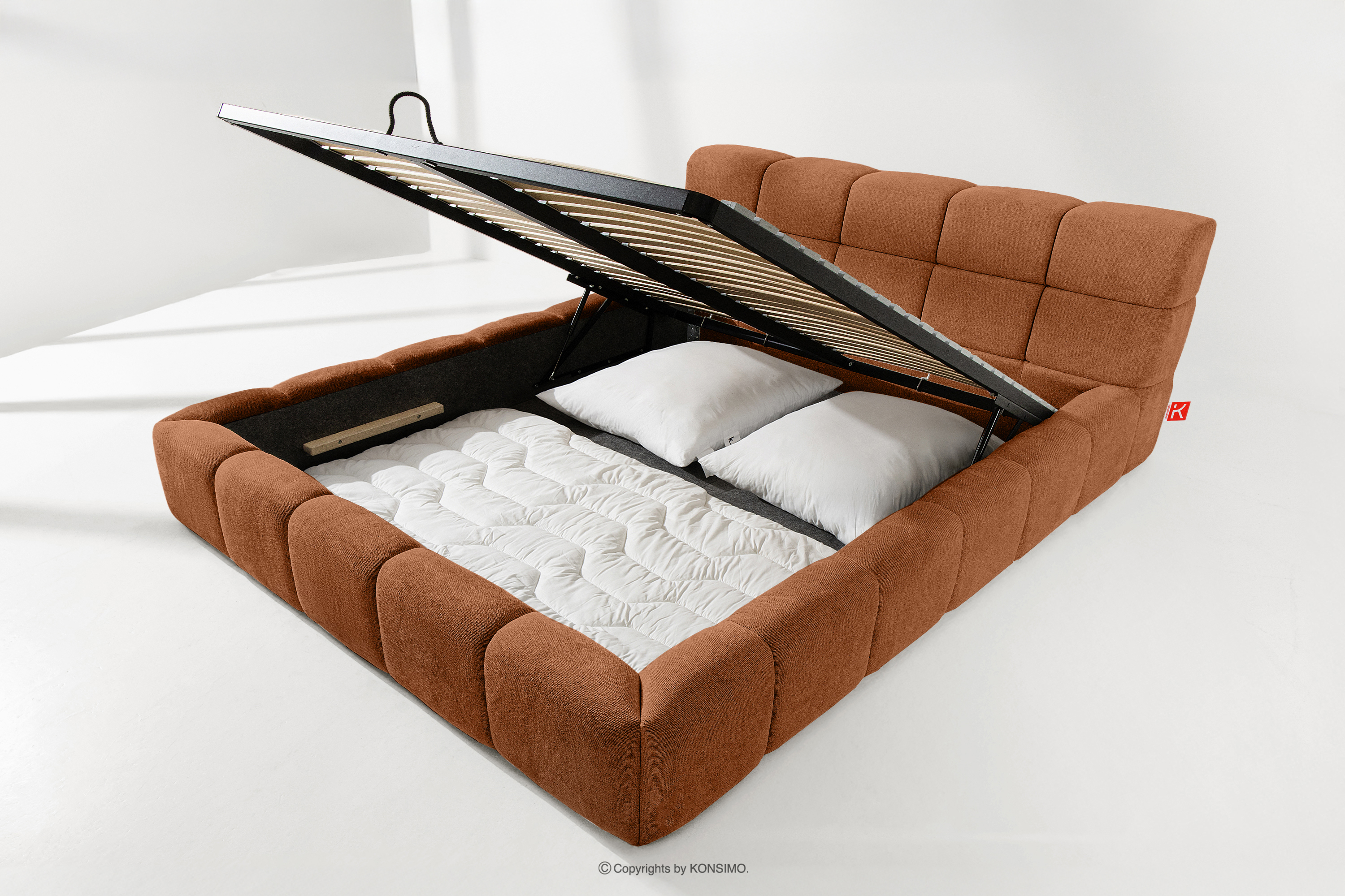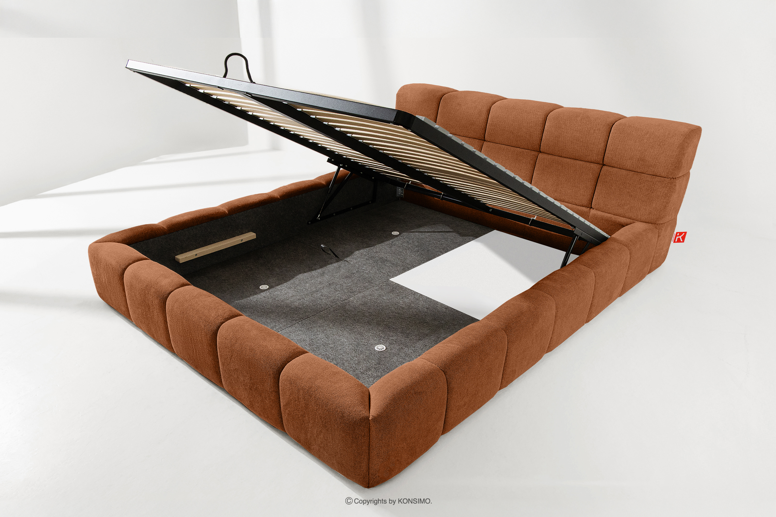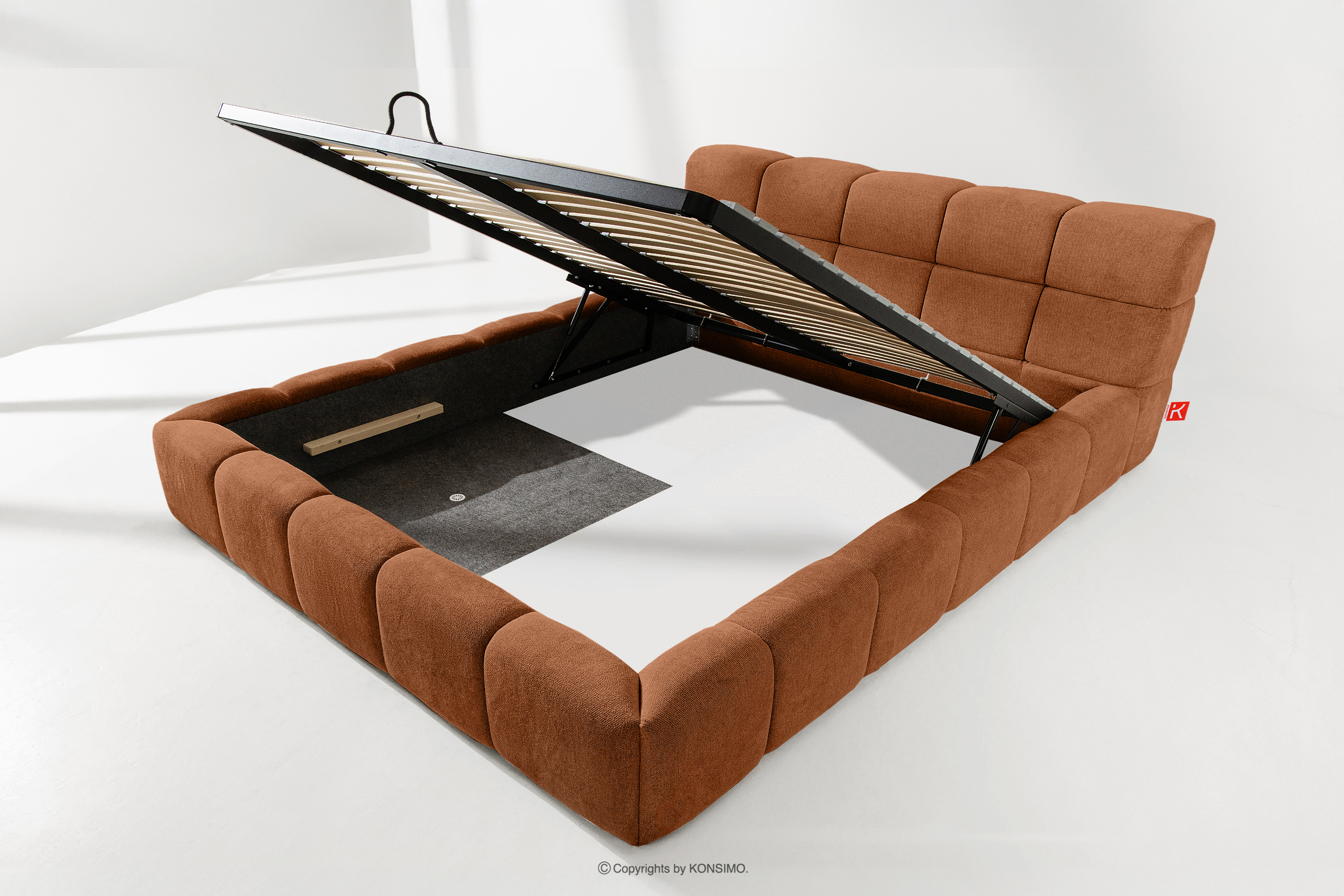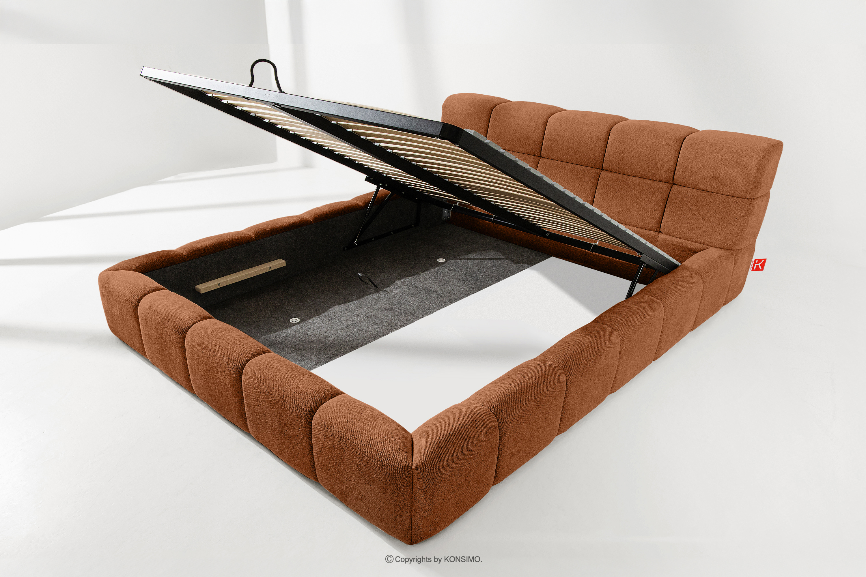 AERI zobacz całą kolekcję Tapicerowane łóżko z zagłówkiem rudy 180 cm- kolor rudy