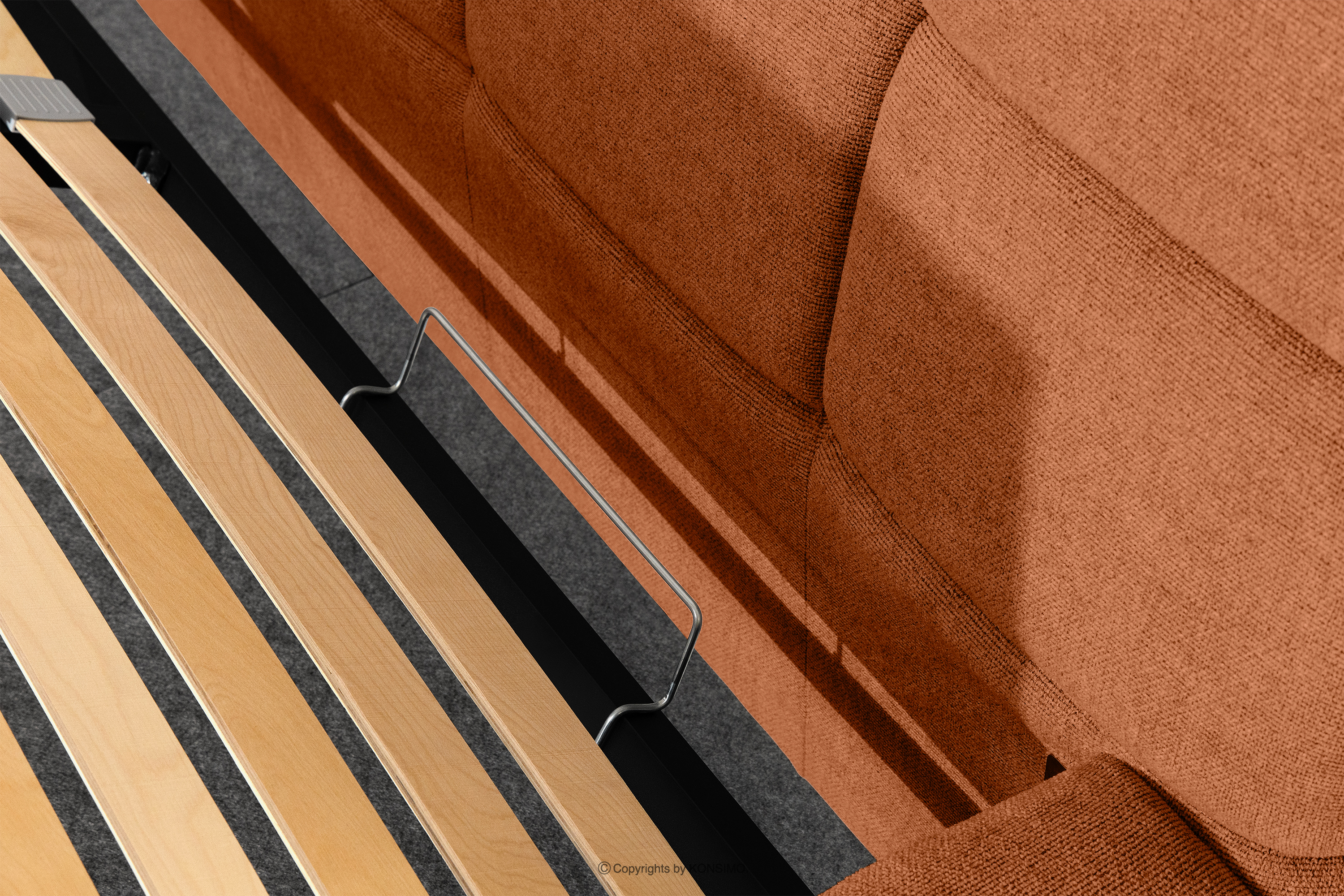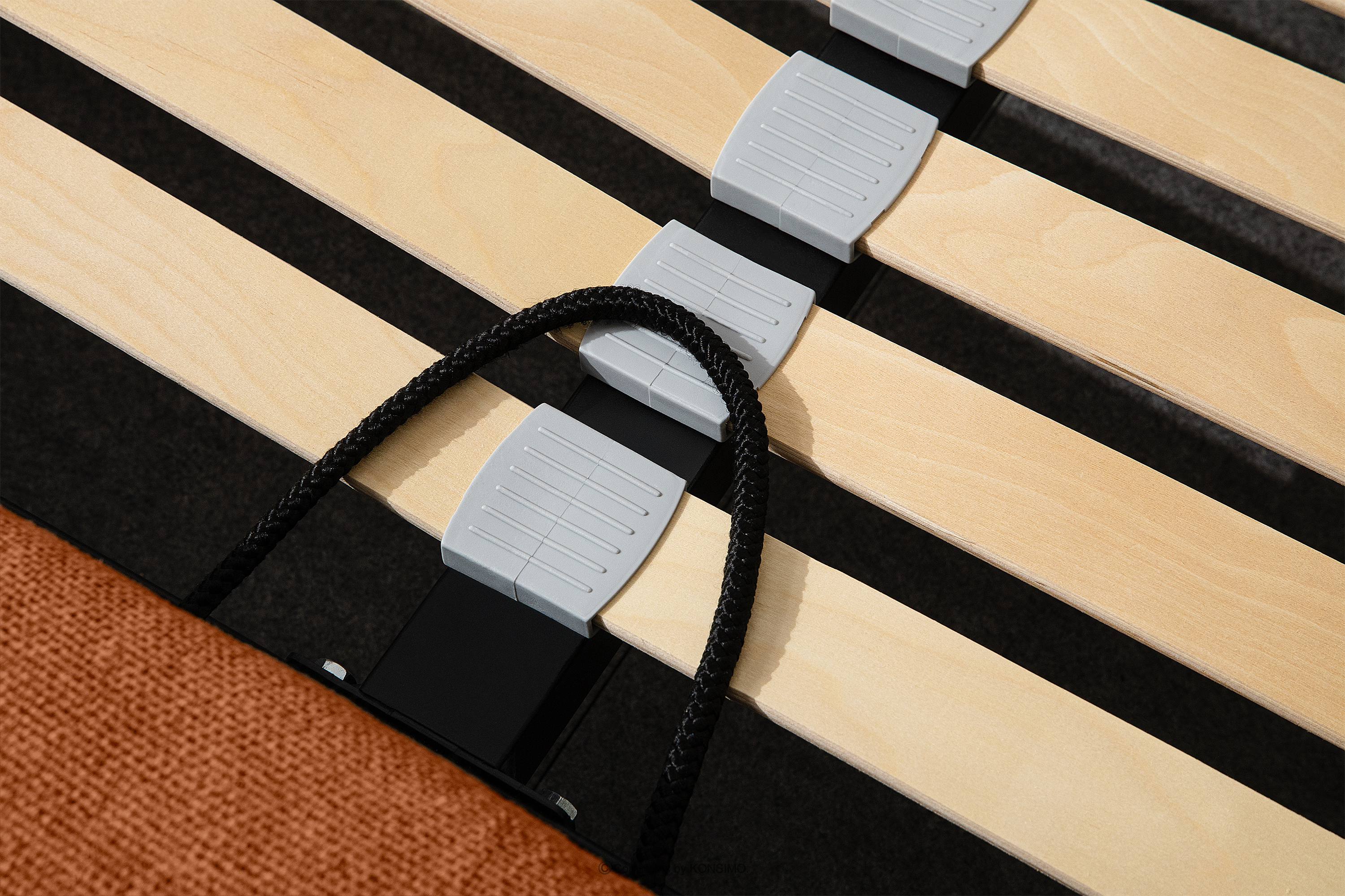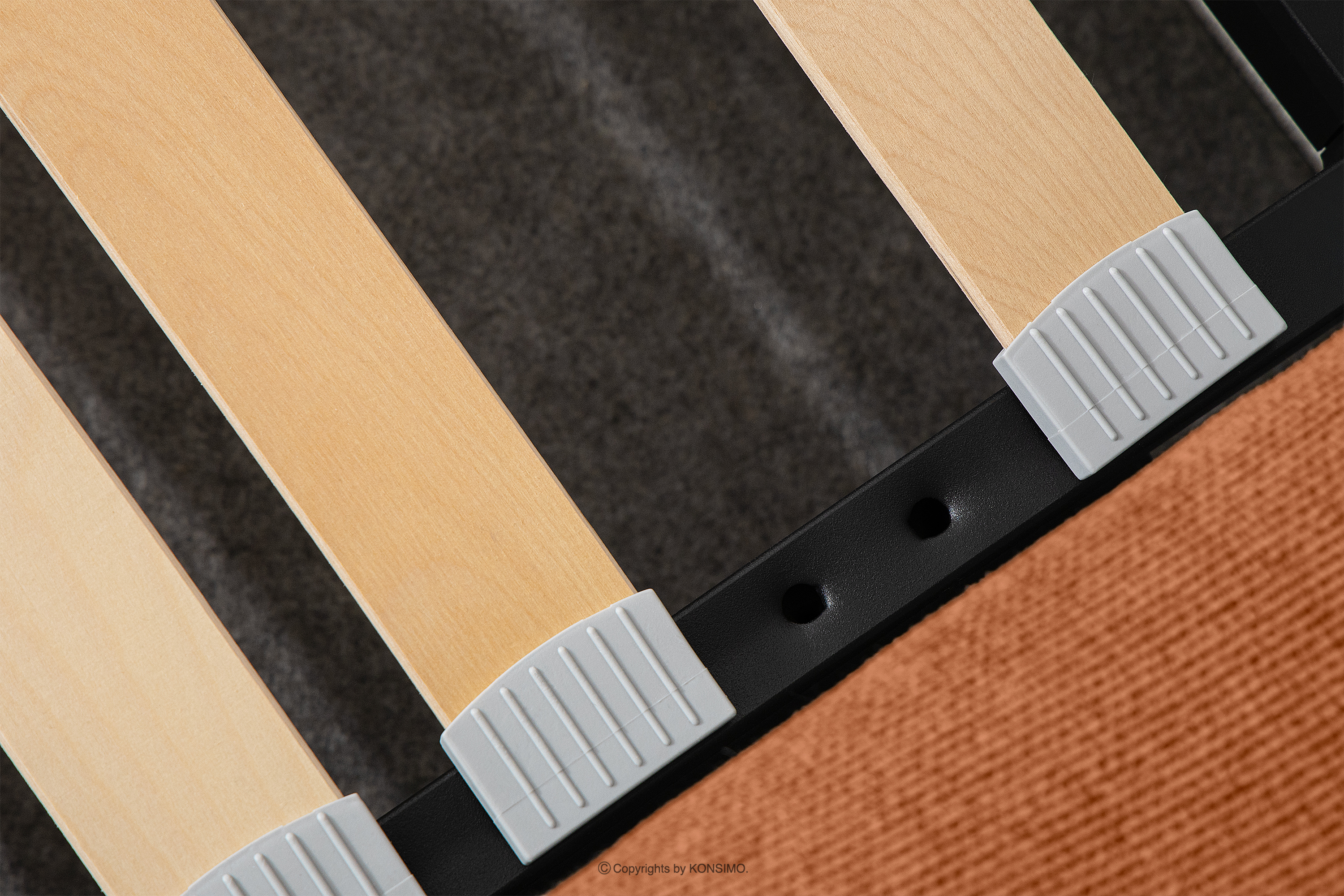 - Stelaż: metalowa rama, sprężynująca listwa drewniana