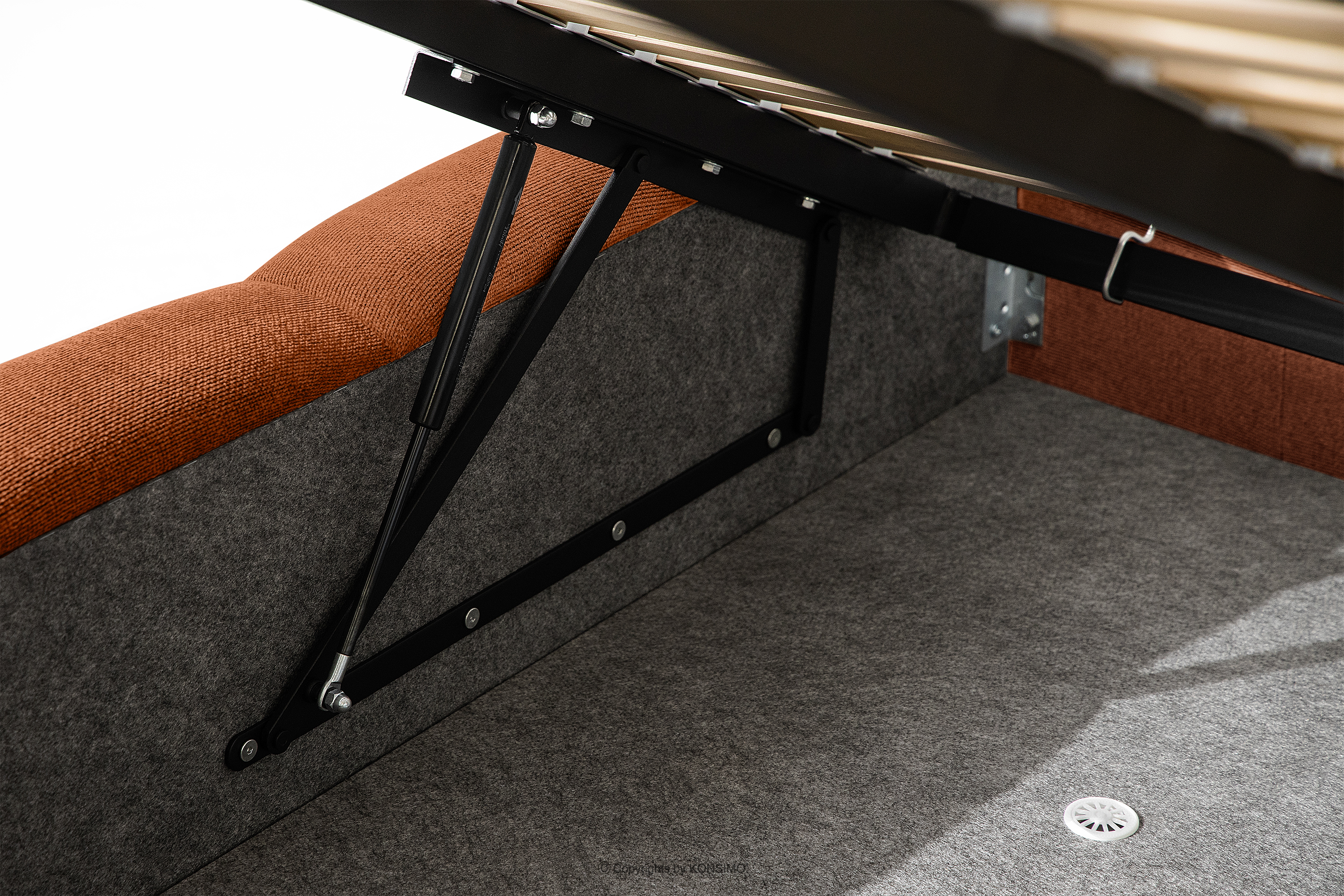 Praktyczny pojemnik na pościel, otwierany za pomocą gazowych siłowników, to nowoczesne rozwiązanie, które ułatwia dostęp do przechowywanych rzeczy, bez potrzeby dużego wysiłku. Funkcjonalność tego mechanizmu sprawia, że pojemnik otwiera się płynnie i lekko, co dodatkowo zwiększa komfort użytkowania.