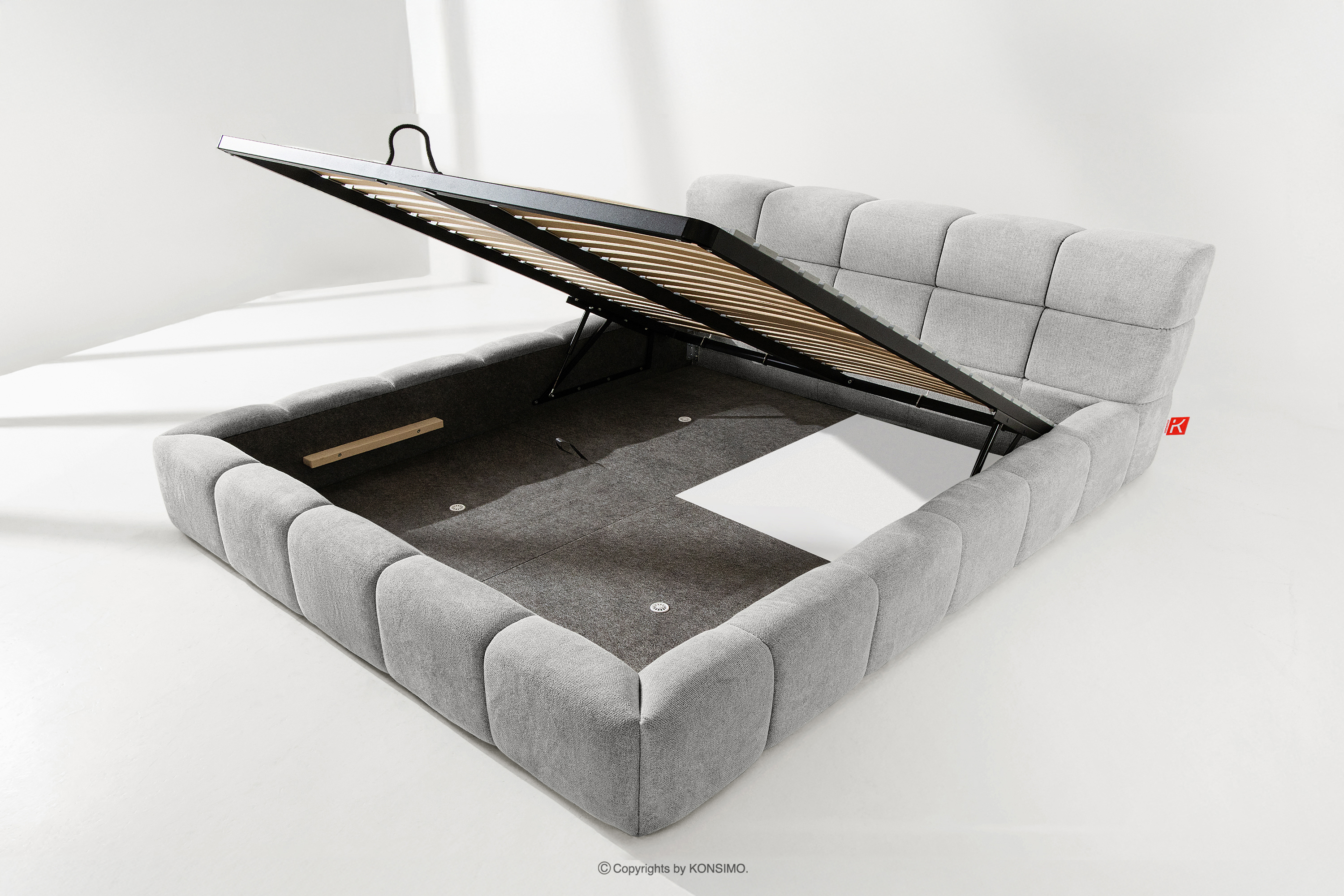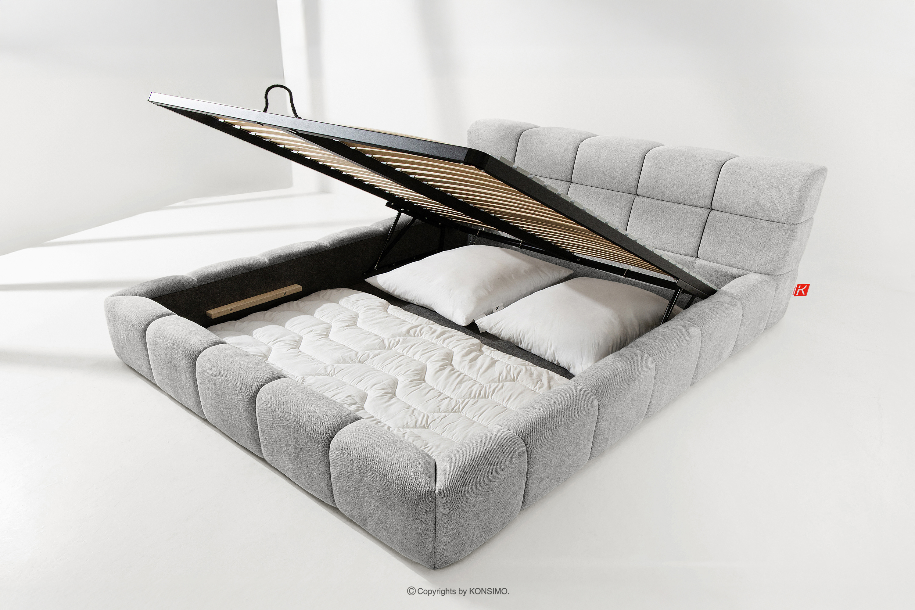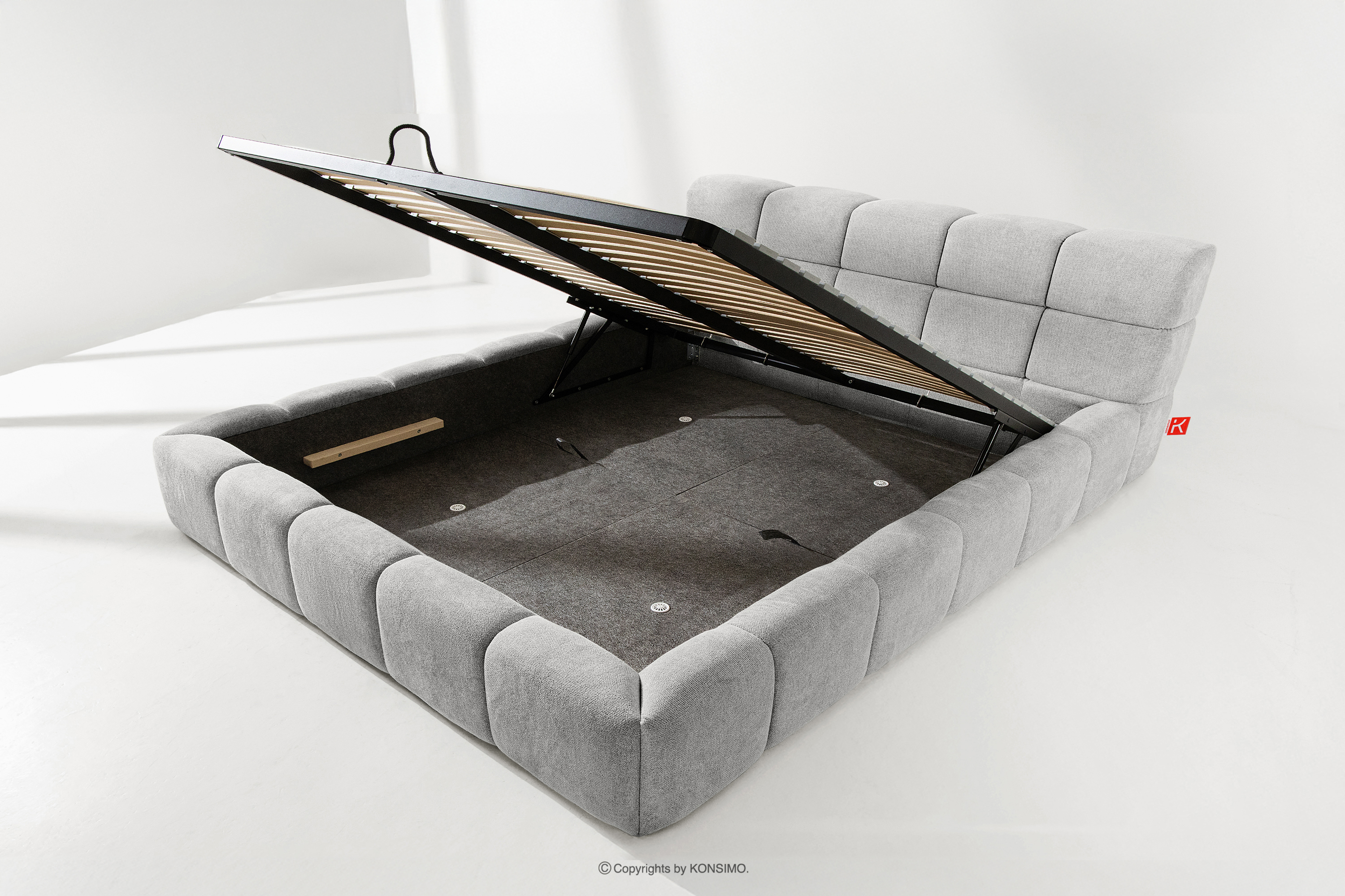 Praktyczny pojemnik na pościel, otwierany za pomocą gazowych siłowników, to nowoczesne rozwiązanie, które ułatwia dostęp do przechowywanych rzeczy, bez potrzeby dużego wysiłku. Funkcjonalność tego mechanizmu sprawia, że pojemnik otwiera się płynnie i lekko, co dodatkowo zwiększa komfort użytkowania.