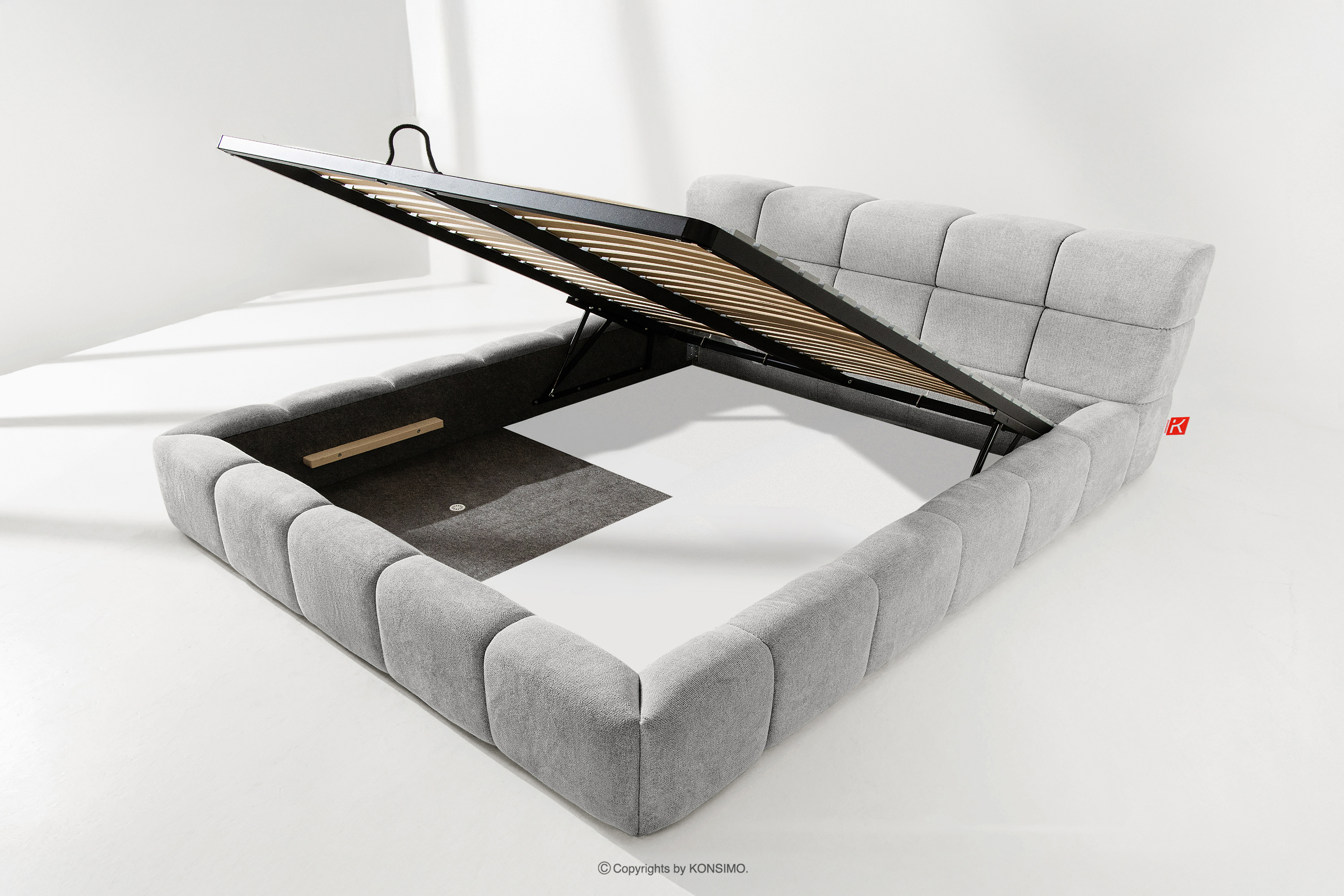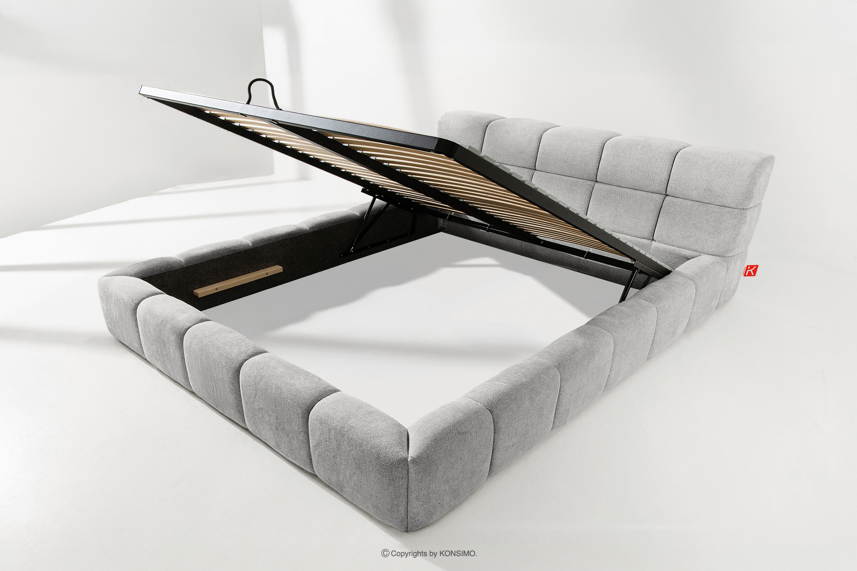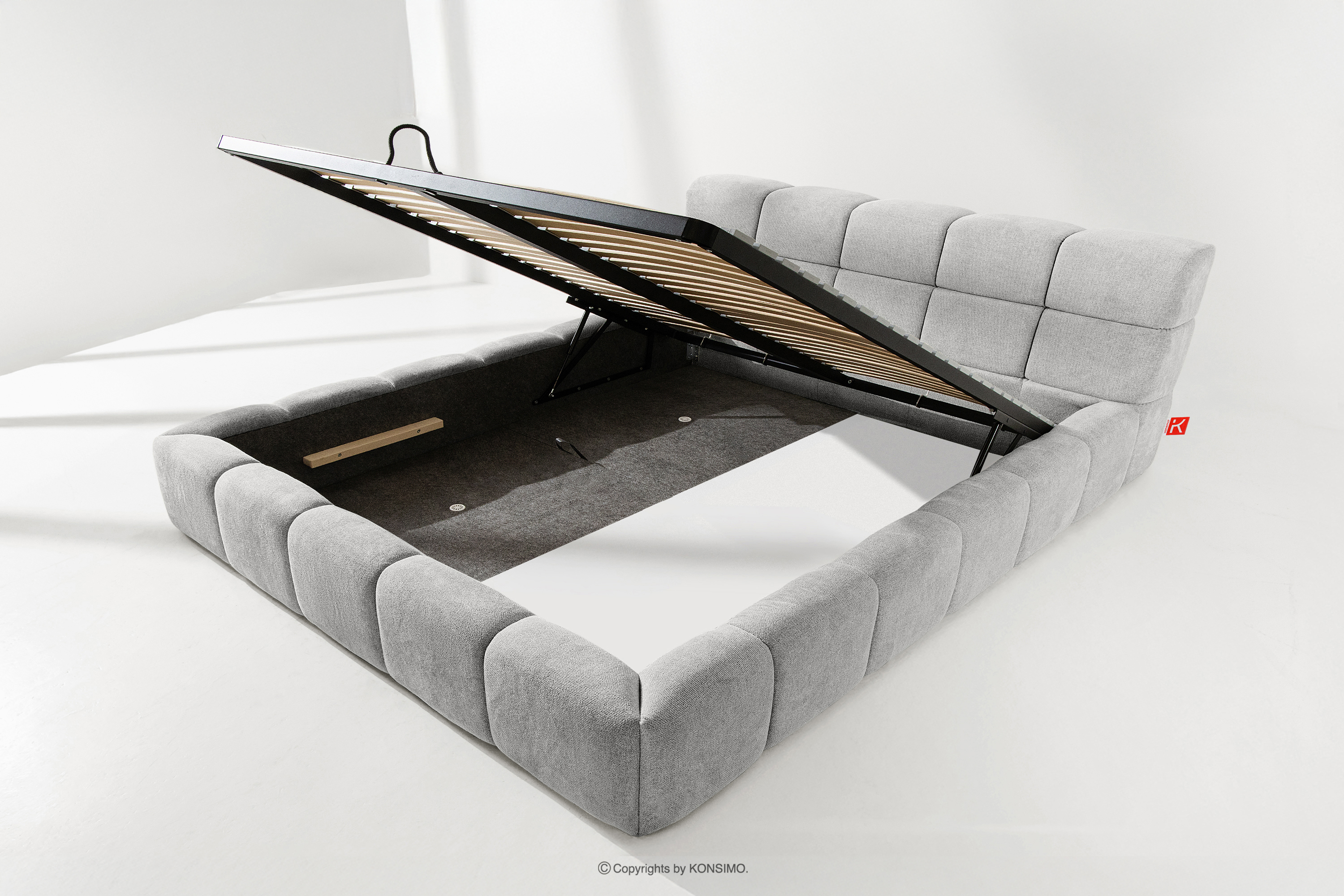 Praktyczny pojemnik na pościel, otwierany za pomocą gazowych siłowników, to nowoczesne rozwiązanie, które ułatwia dostęp do przechowywanych rzeczy, bez potrzeby dużego wysiłku. Funkcjonalność tego mechanizmu sprawia, że pojemnik otwiera się płynnie i lekko, co dodatkowo zwiększa komfort użytkowania.