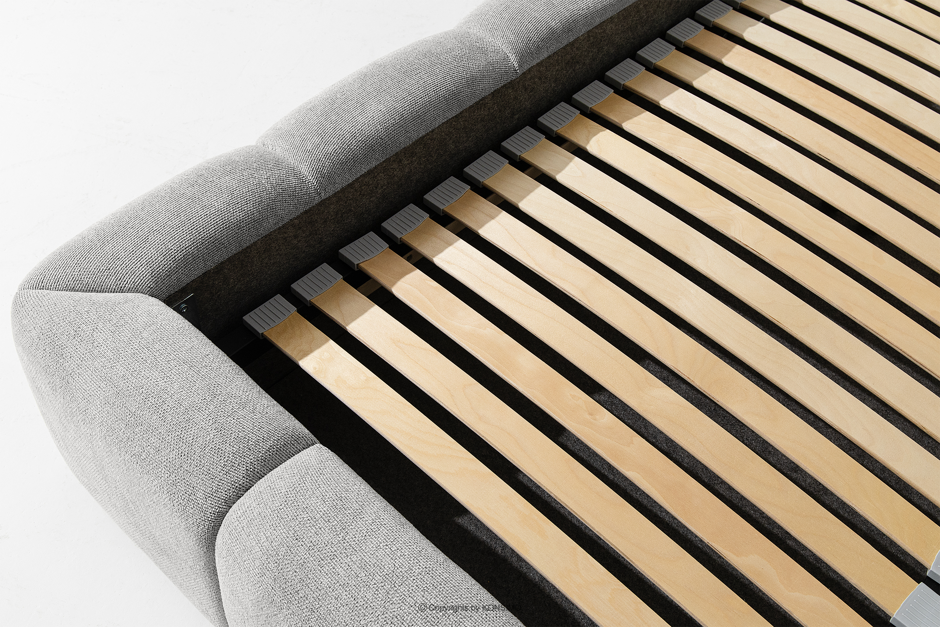 Łóżko 200 z zagłówkiem jasny szary to harmonijne połączenie prostoty skandynawskiego stylu z wyjątkową wygodą użytkowania. Jego unikalna forma, inspirowana kształtem chmurki, przyciąga uwagę swoim oryginalnym wyglądem, a jednocześnie zapewnia komfort na najwyższym poziomie. Konstrukcja opiera się na elastycznym stelażu z drewnianych listew, których dodatkowym atutem jest możliwość regulacji twardości łóżka – dzięki wyjmowanym listwom, można dostosować poziom miękkości do indywidualnych preferencji.