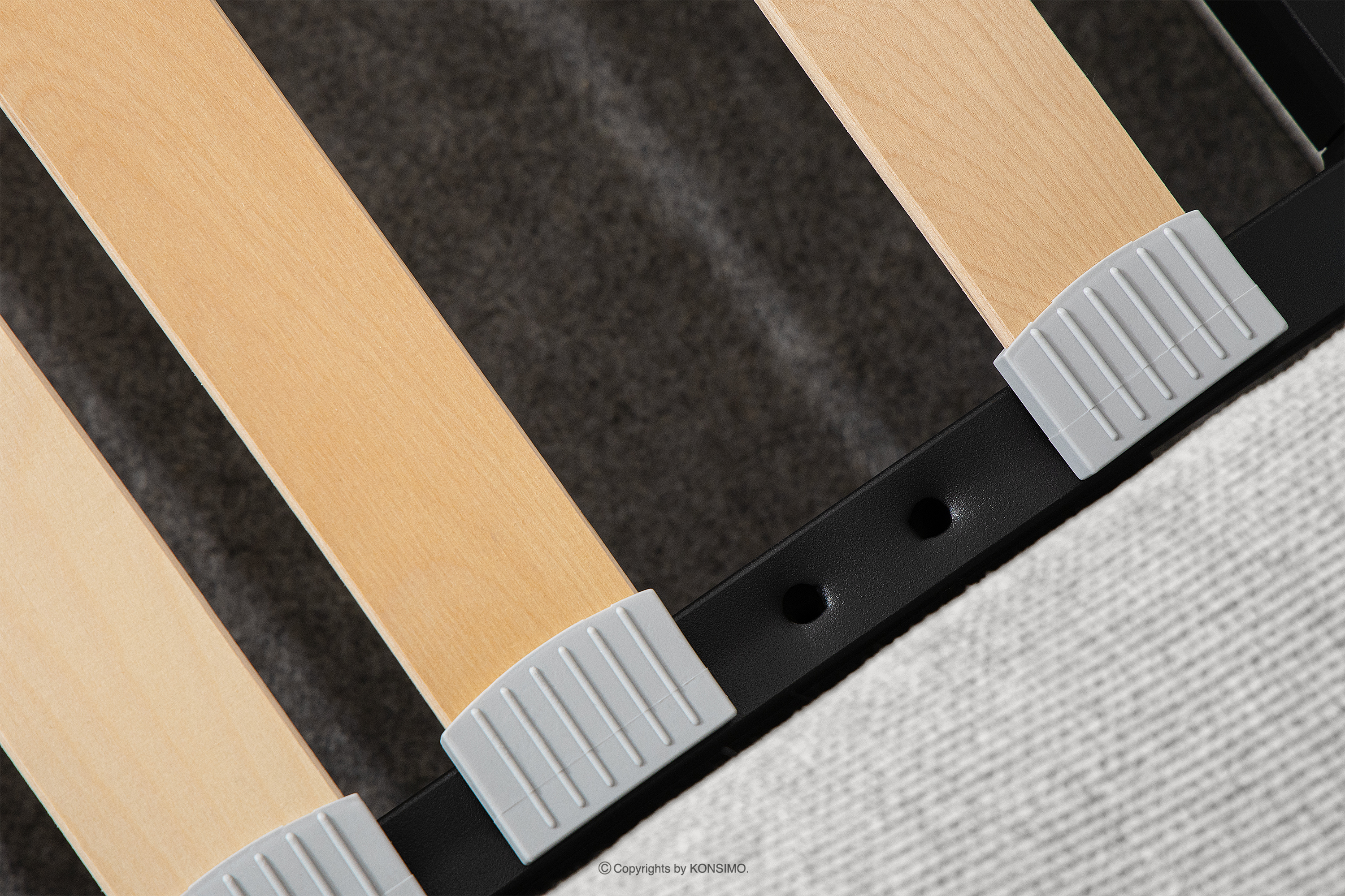 - Stelaż: metalowa rama, sprężynująca listwa drewniana