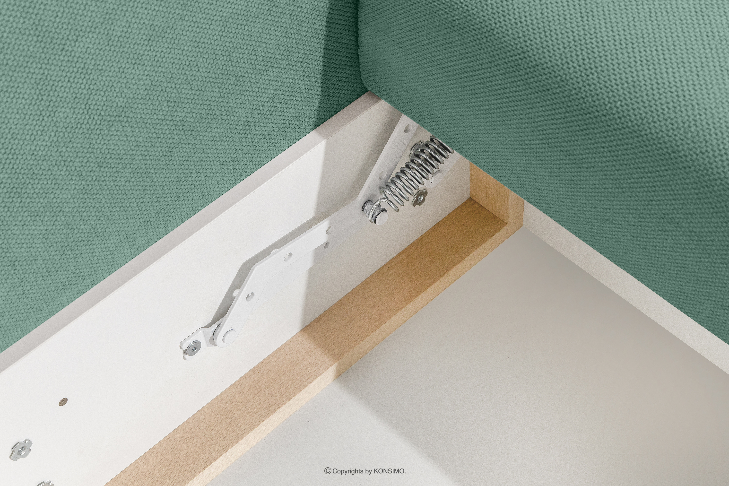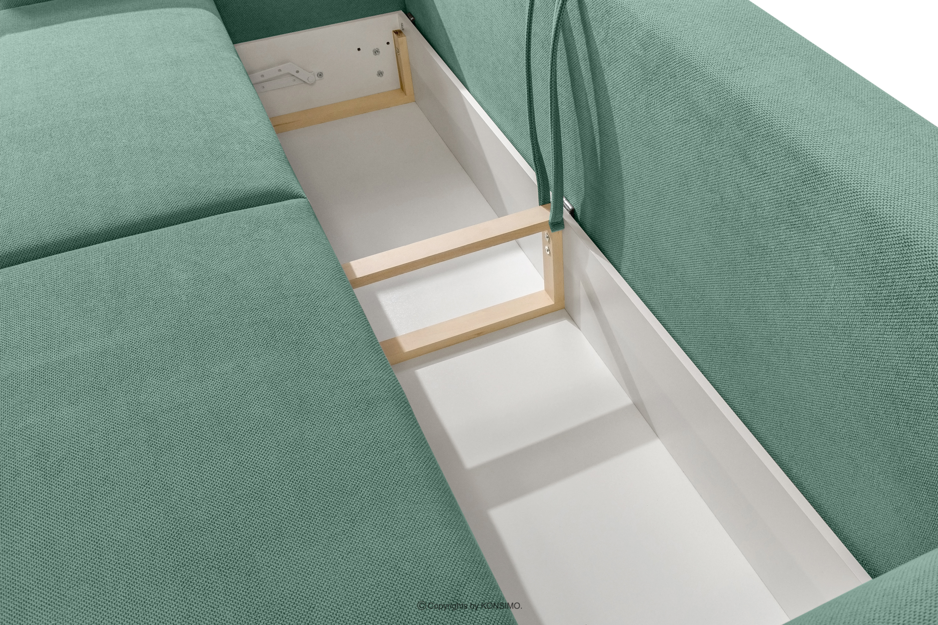 Nowoczesna kanapa z pojemnikiem na pościel morski LAVIS - kolor morski