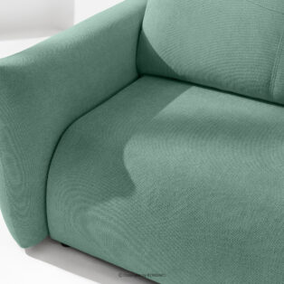 Komfort snu na sofie LAVIS jest równie imponujący jak komfort siedzenia. Dzięki zastosowaniu sprężyn falistych w siedzisku i oparciu, po rozłożeniu uzyskujemy dużą, równą powierzchnię. Oparcie, wypełnione 12,5 cm pianki T30 oraz sprężynami falistymi typu B, zapewnia odpowiednie wsparcie dla kręgosłupa podczas snu. Boczki sofy, z 18 cm pianki T21, dodają meblowi solidności i eleganckiego wykończenia. Dwie poduszki oparciowe, wypełnione regranulatem piankowym, stanowią idealne dopełnienie strefy relaksu, oferując dodatkowe wsparcie i miękkość. Regranulat w poduszce to materiał powstały w procesie recyklingu tworzyw sztucznych, który jest następnie wykorzystywany jako wypełnienie, zapewniając miękkość i wsparcie.