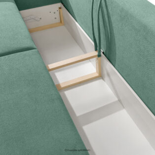 Nowoczesna kanapa z pojemnikiem na pościel morski LAVIS - kolor morski