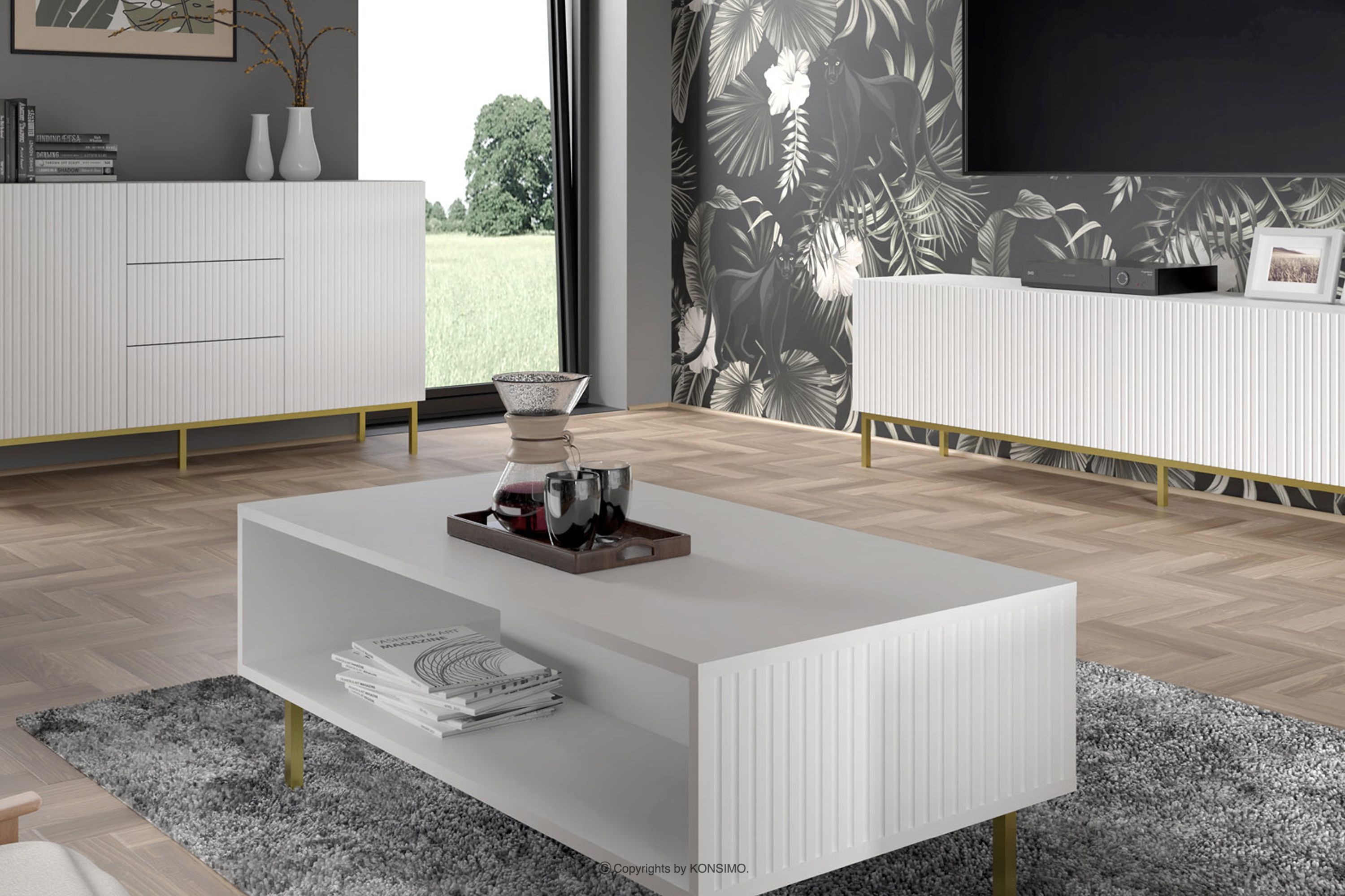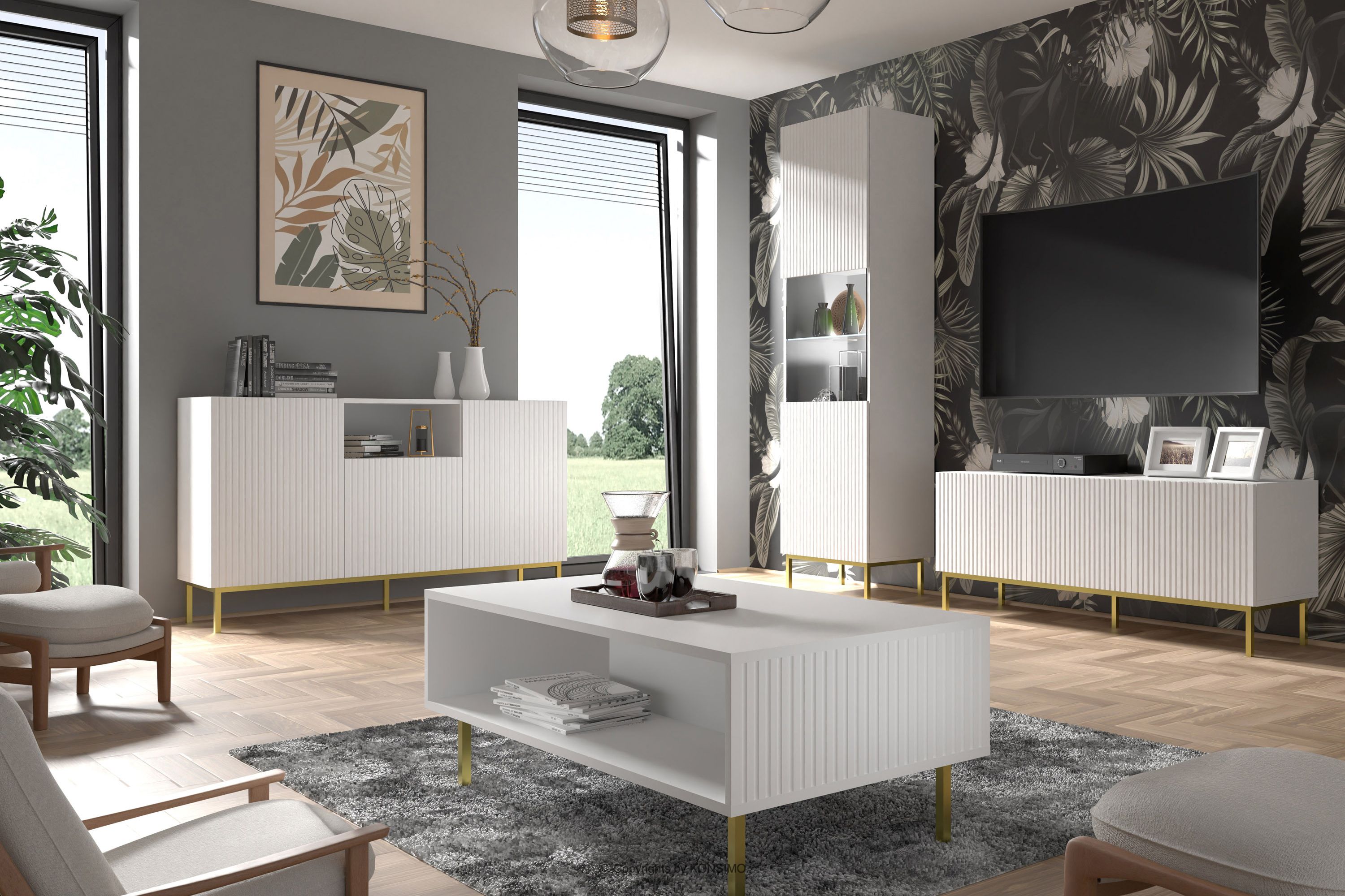 REMO Elegancka komoda do salonu na złotych nóżkach biały