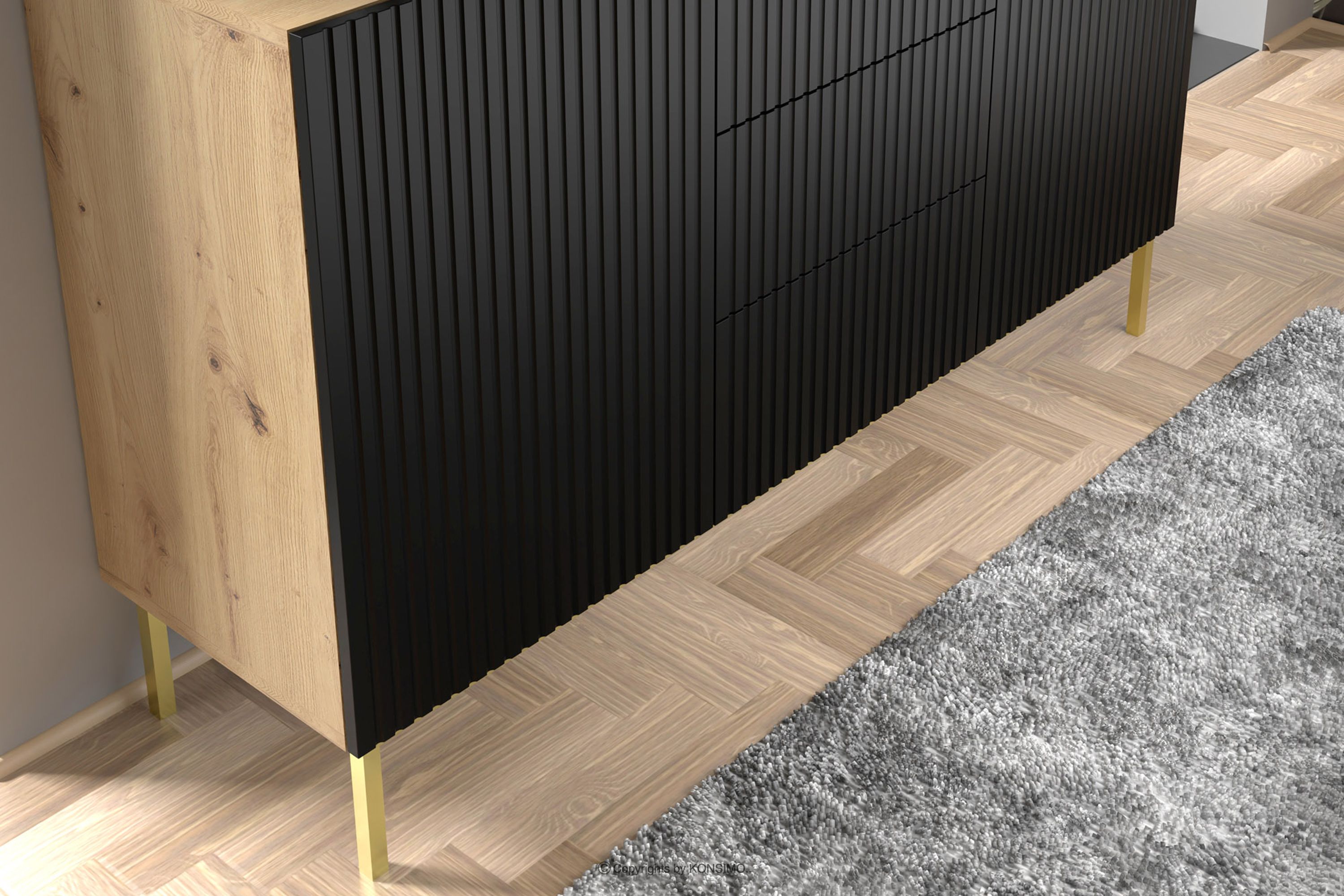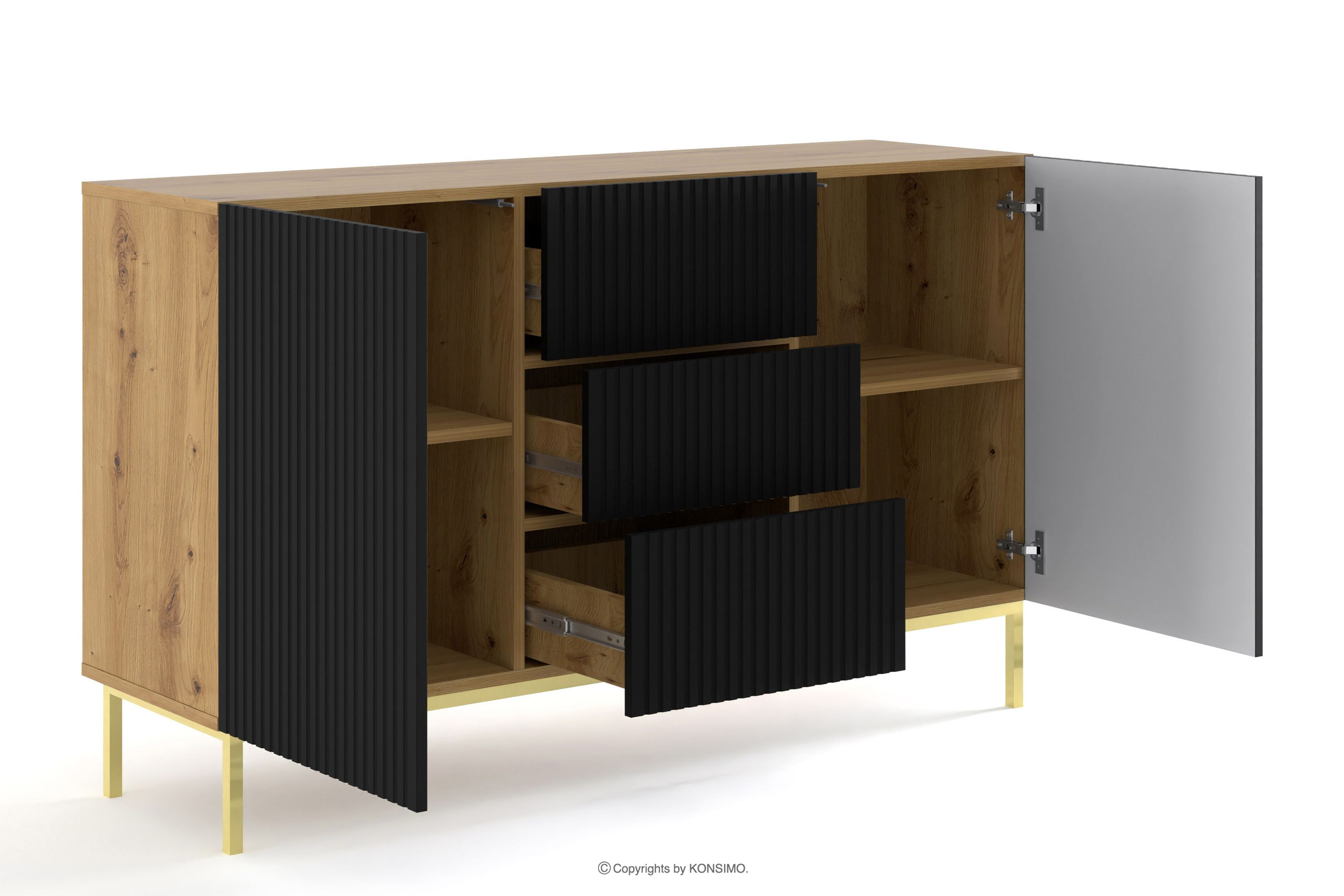REMO zobacz całą kolekcję Elegancka komoda do salonu na złotych nóżkach dąb artisan/czarny- kolor dąb artisan/czarny