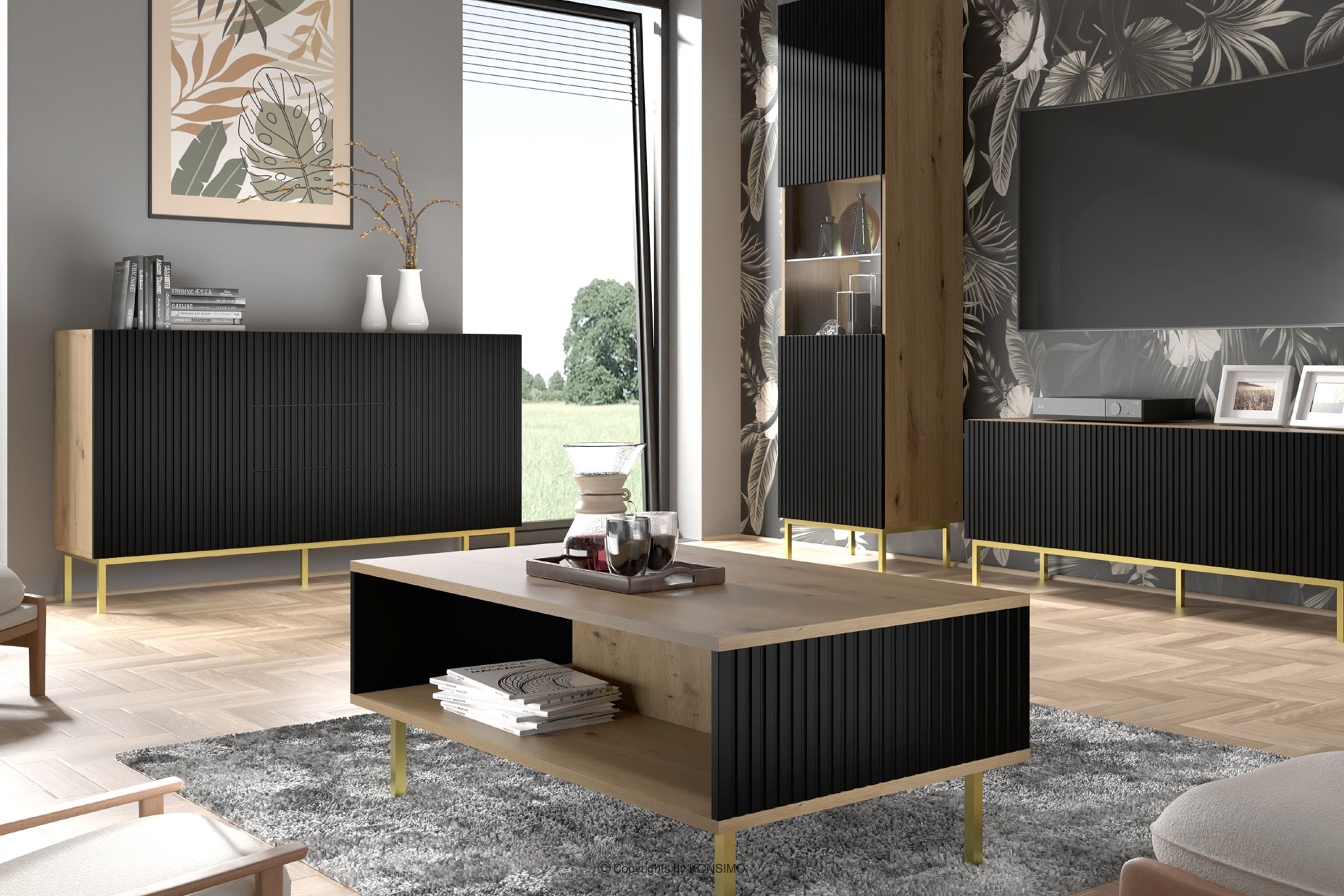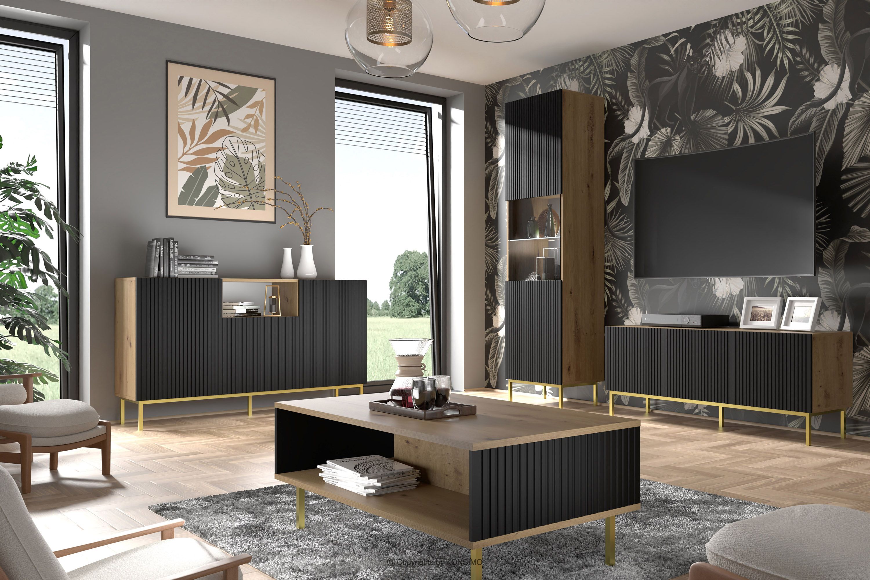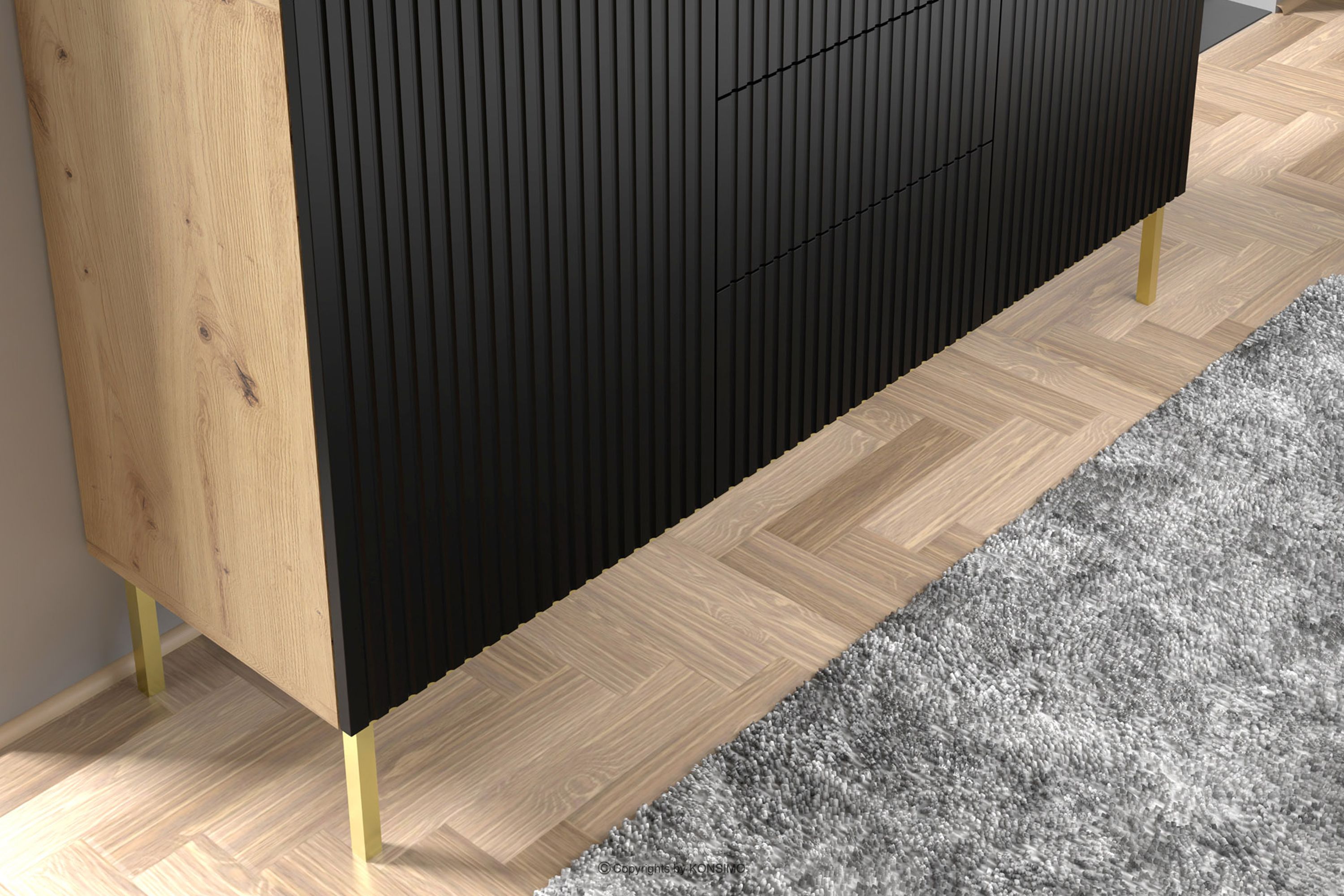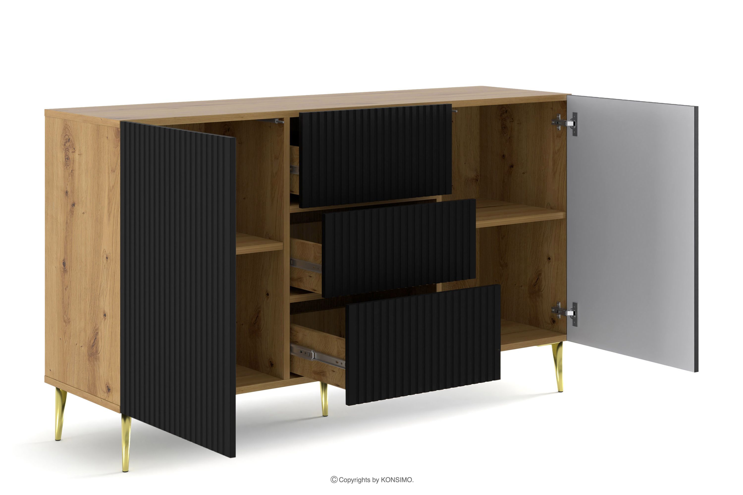 REMO zobacz całą kolekcję Elegancka komoda na złotych nóżkach dąb artisan/czarny- kolor dąb artisan/czarny