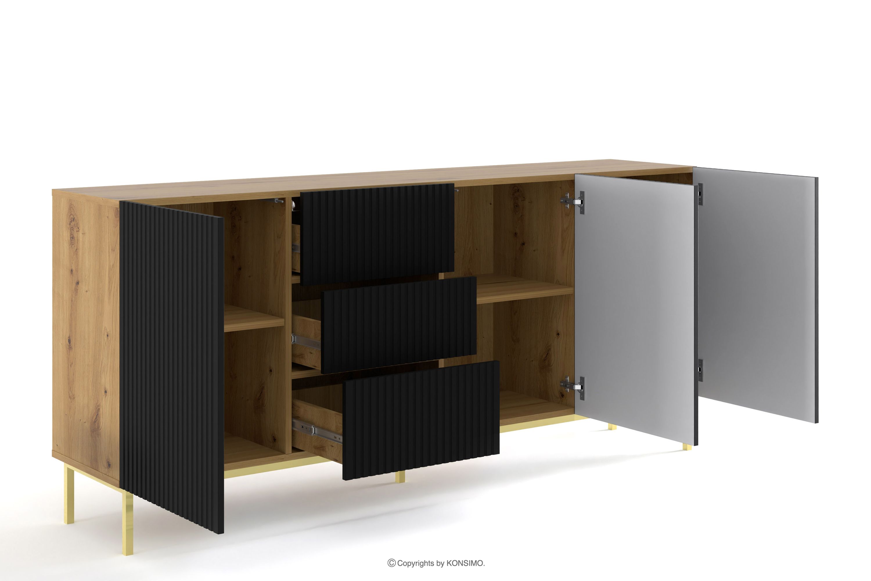 REMO zobacz całą kolekcję Komoda na złotych nóżkach do salonu dąb artisan/czarny- kolor dąb artisan/czarny