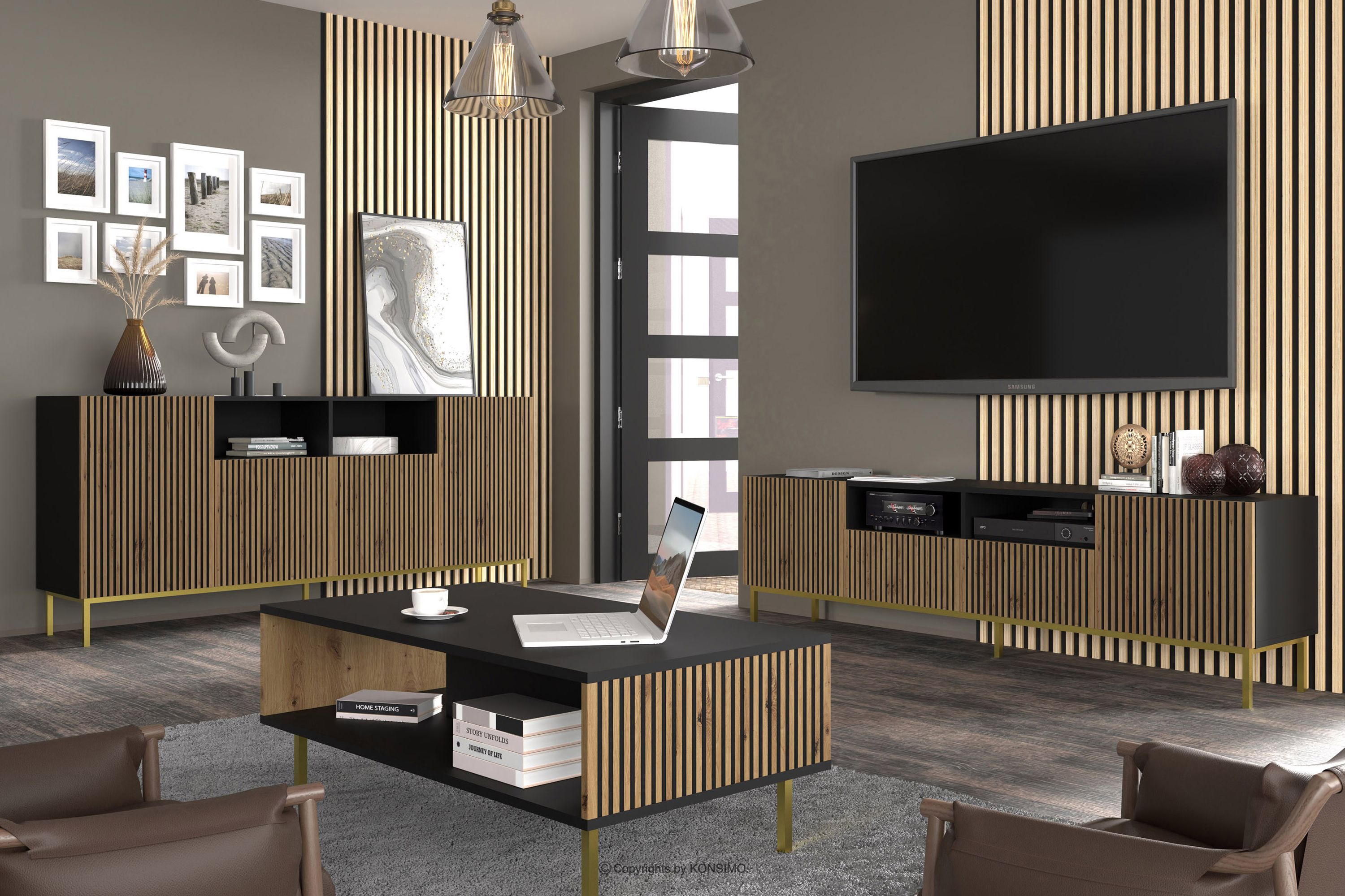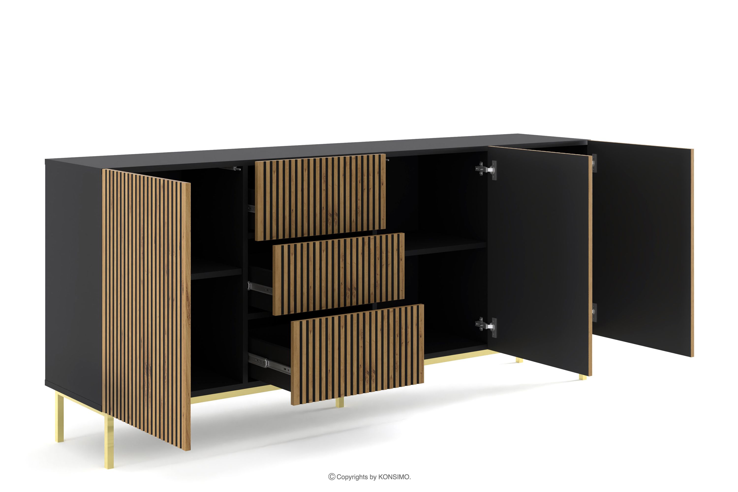 REMO zobacz całą kolekcję Komoda z lamelami czarny/dąb artisan- kolor czarny/dąb artisan