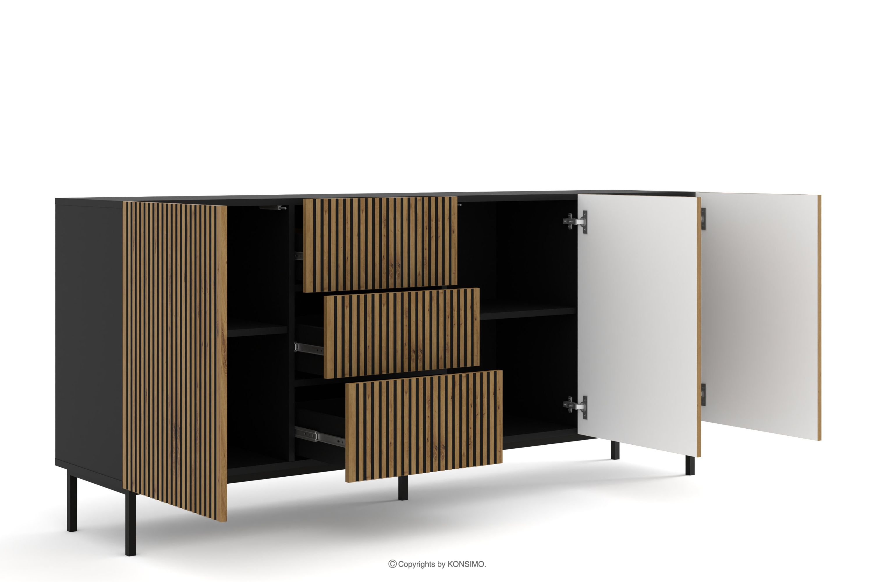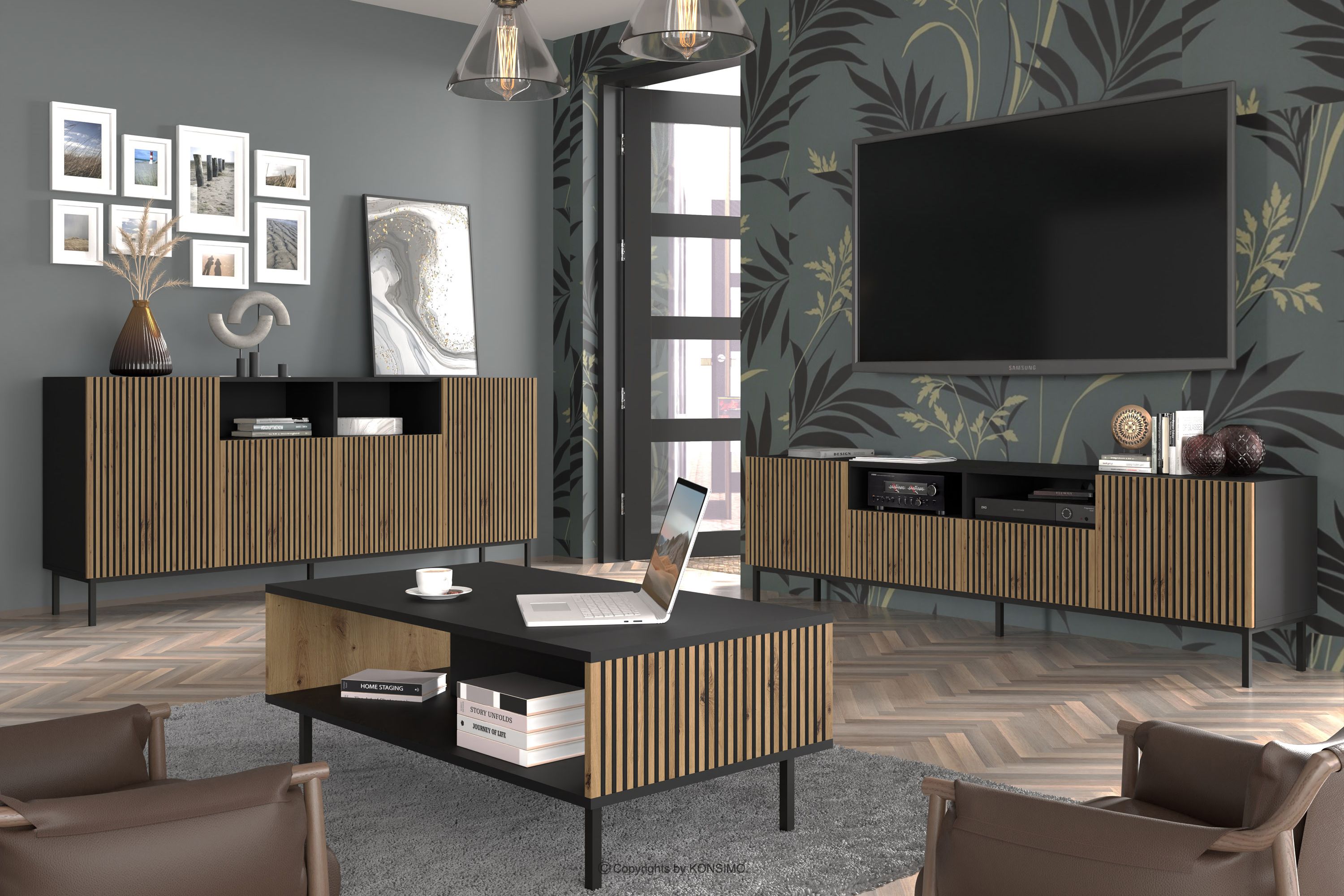 REMO zobacz całą kolekcję Szafka RTV z lamelami na wysokich nóżkach dąb artisan- kolor czarny/dąb artisan