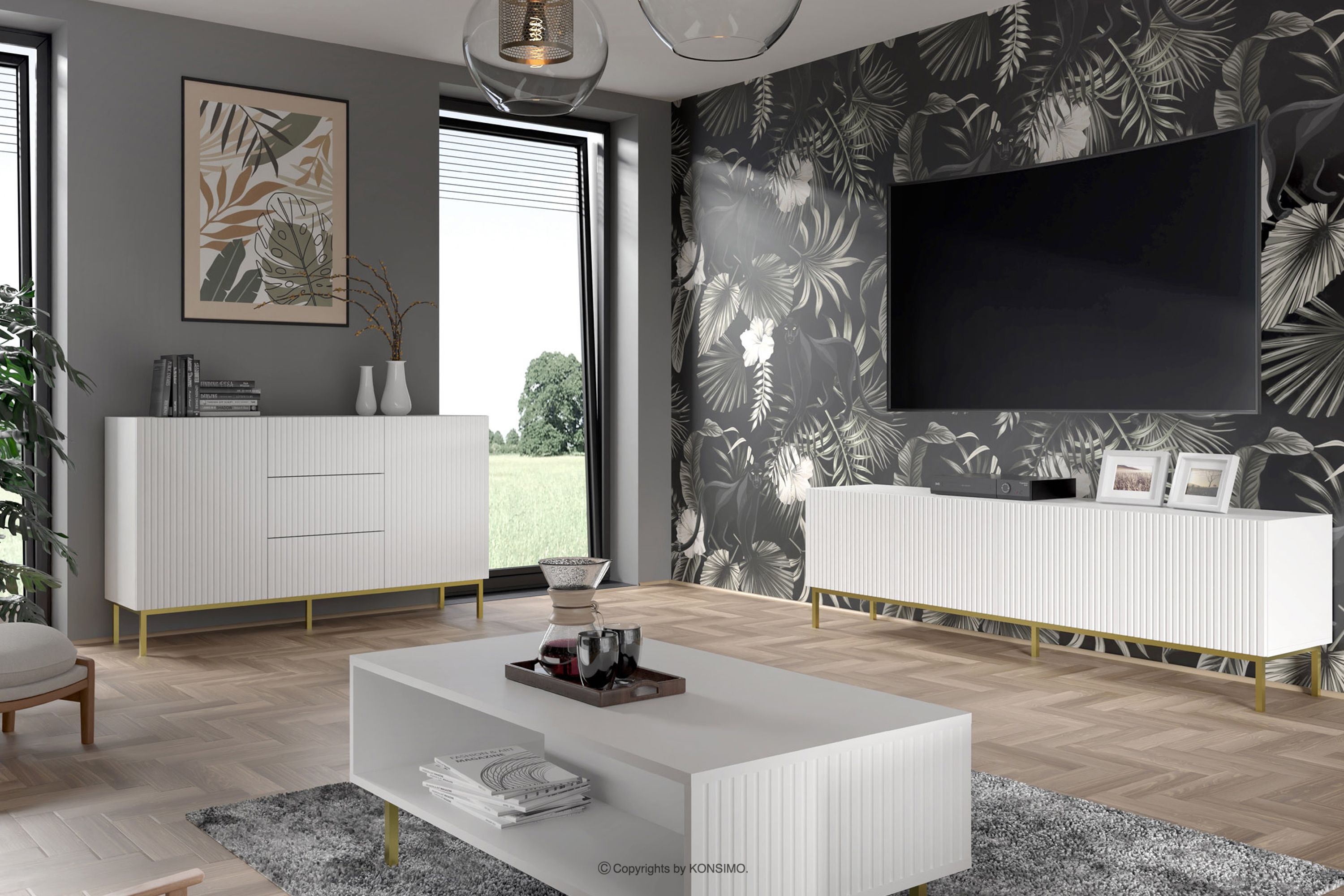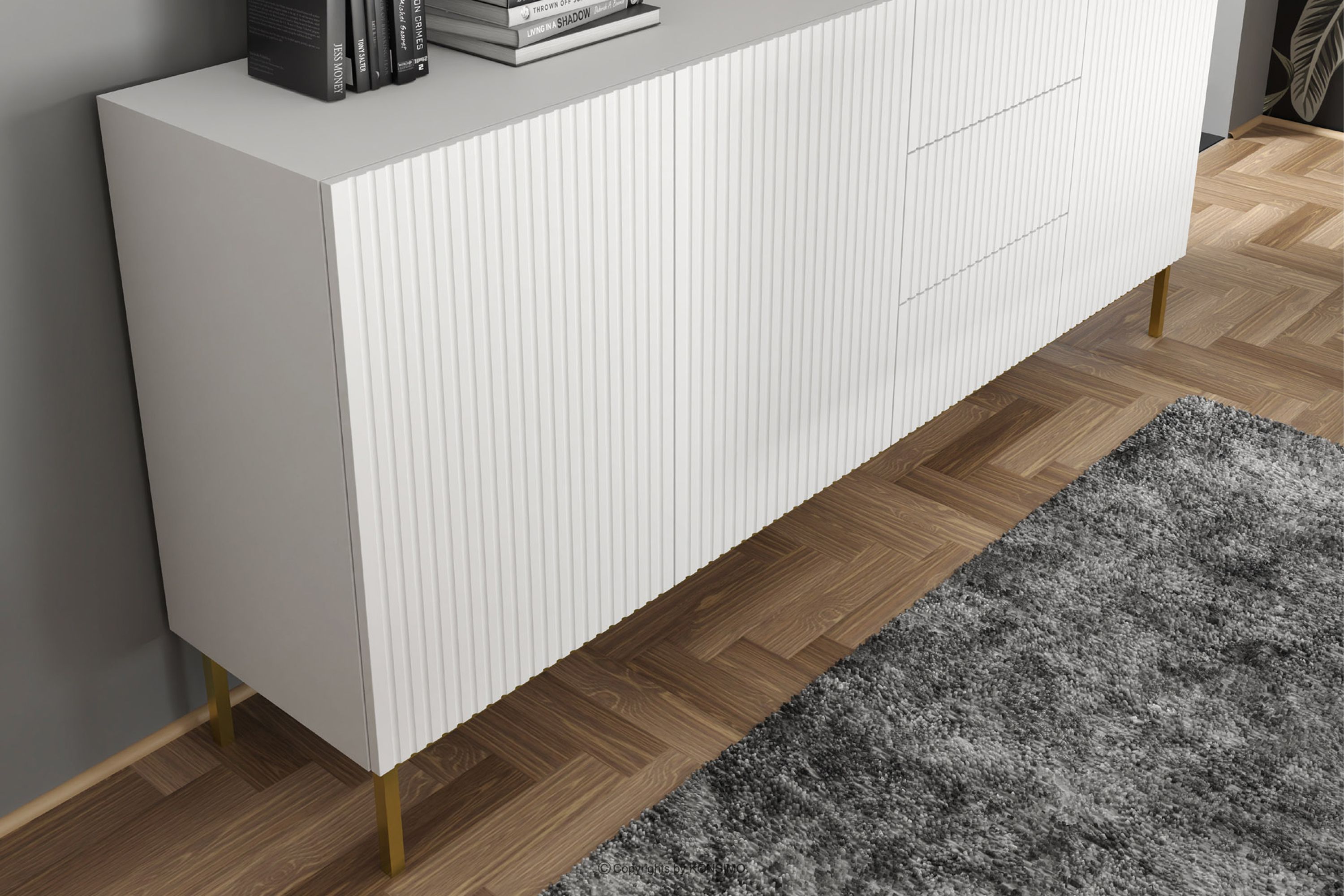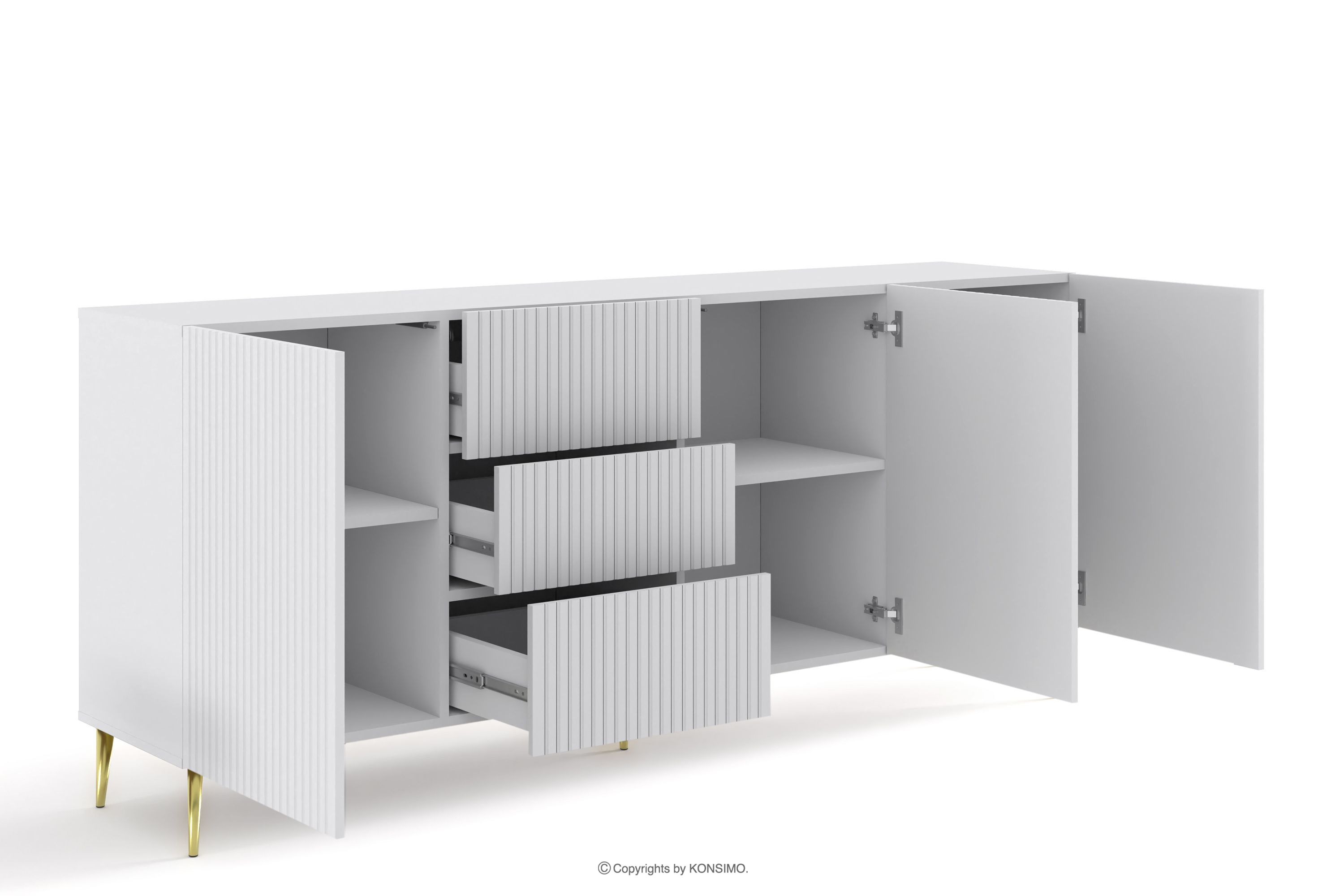 REMO zobacz całą kolekcję Duża biała komoda do pokoju na złotych nóżkach- kolor biały