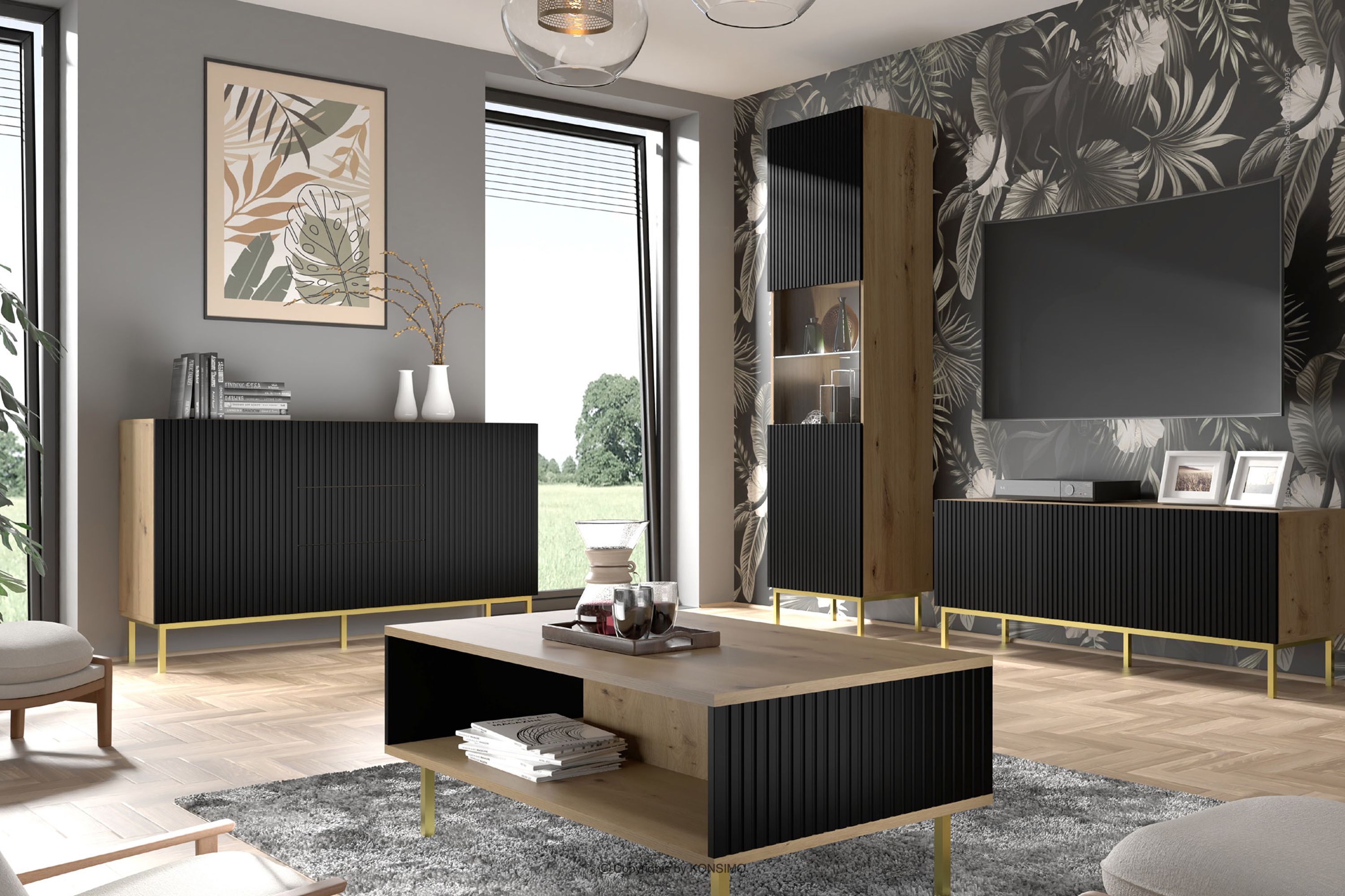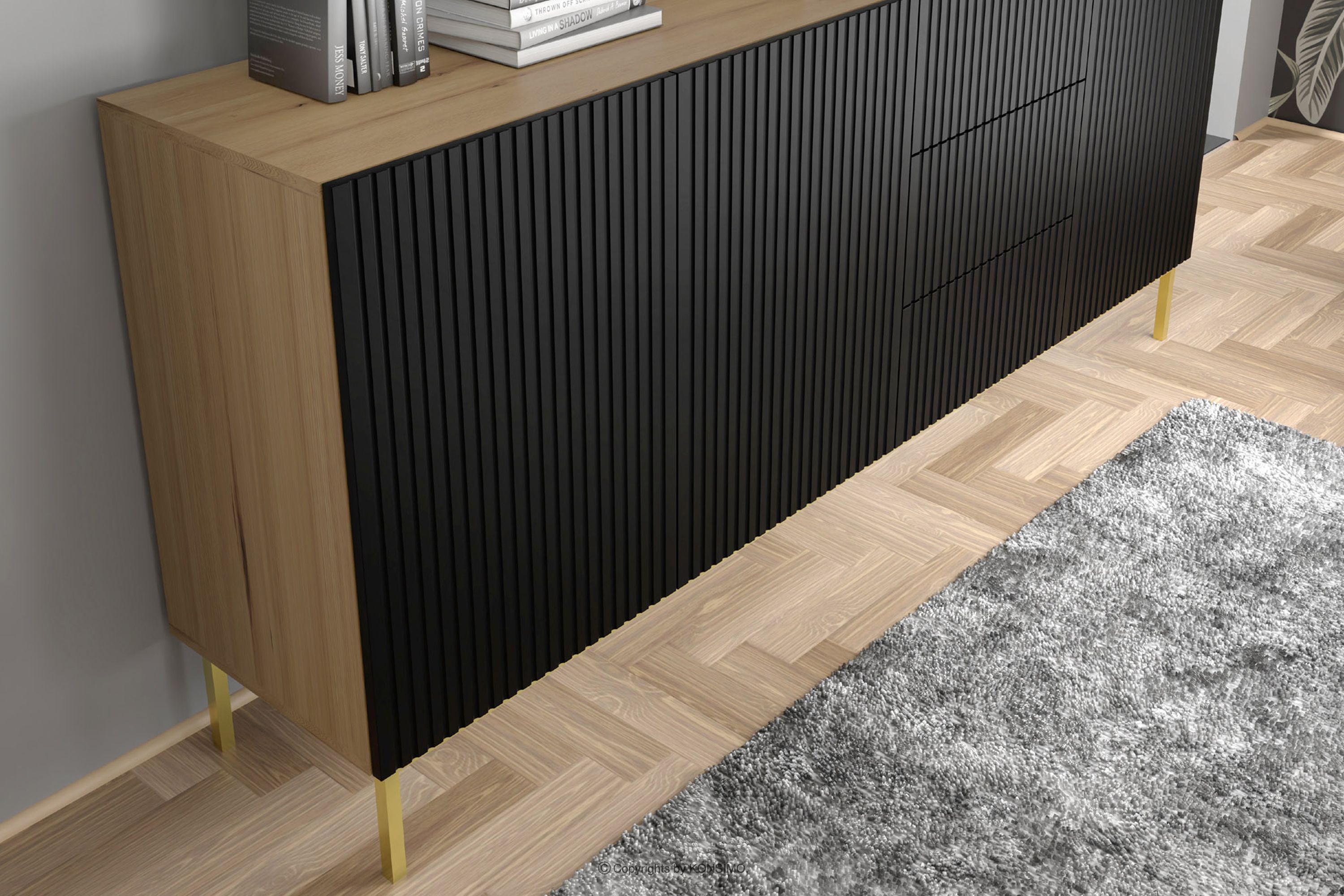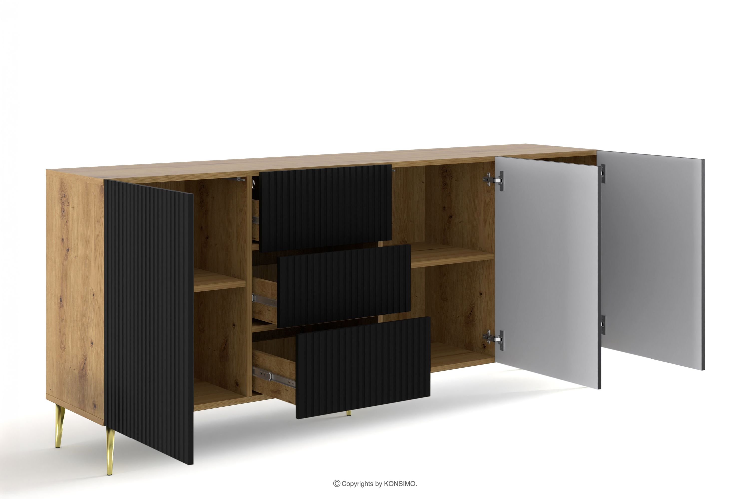 REMO zobacz całą kolekcję Komoda do pokoju na złotych nóżkach dąb artisan/czarny- kolor dąb artisan/czarny