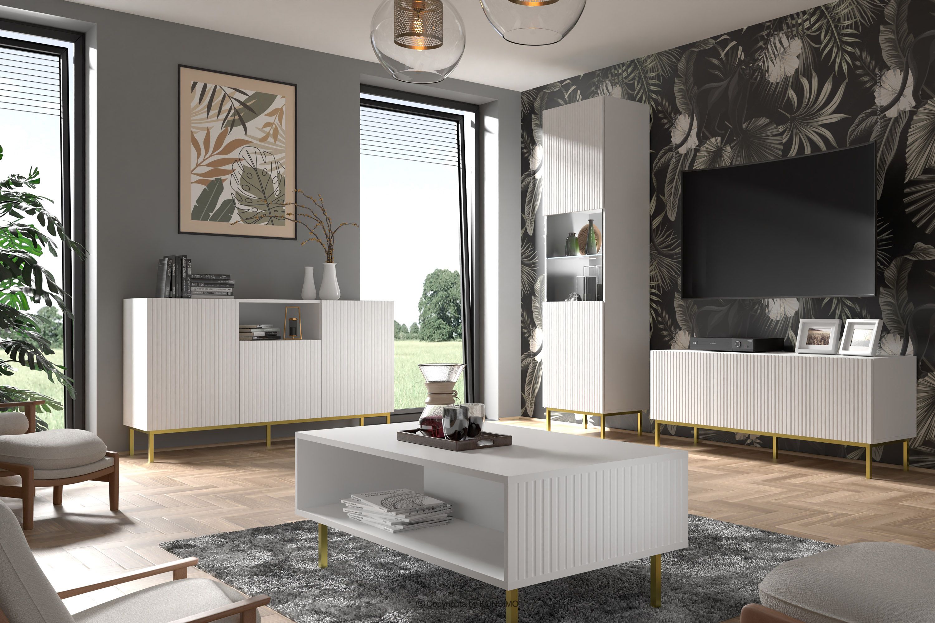REMO zobacz całą kolekcję Duża szafka RTV na złotych nóżkach biały- kolor biały