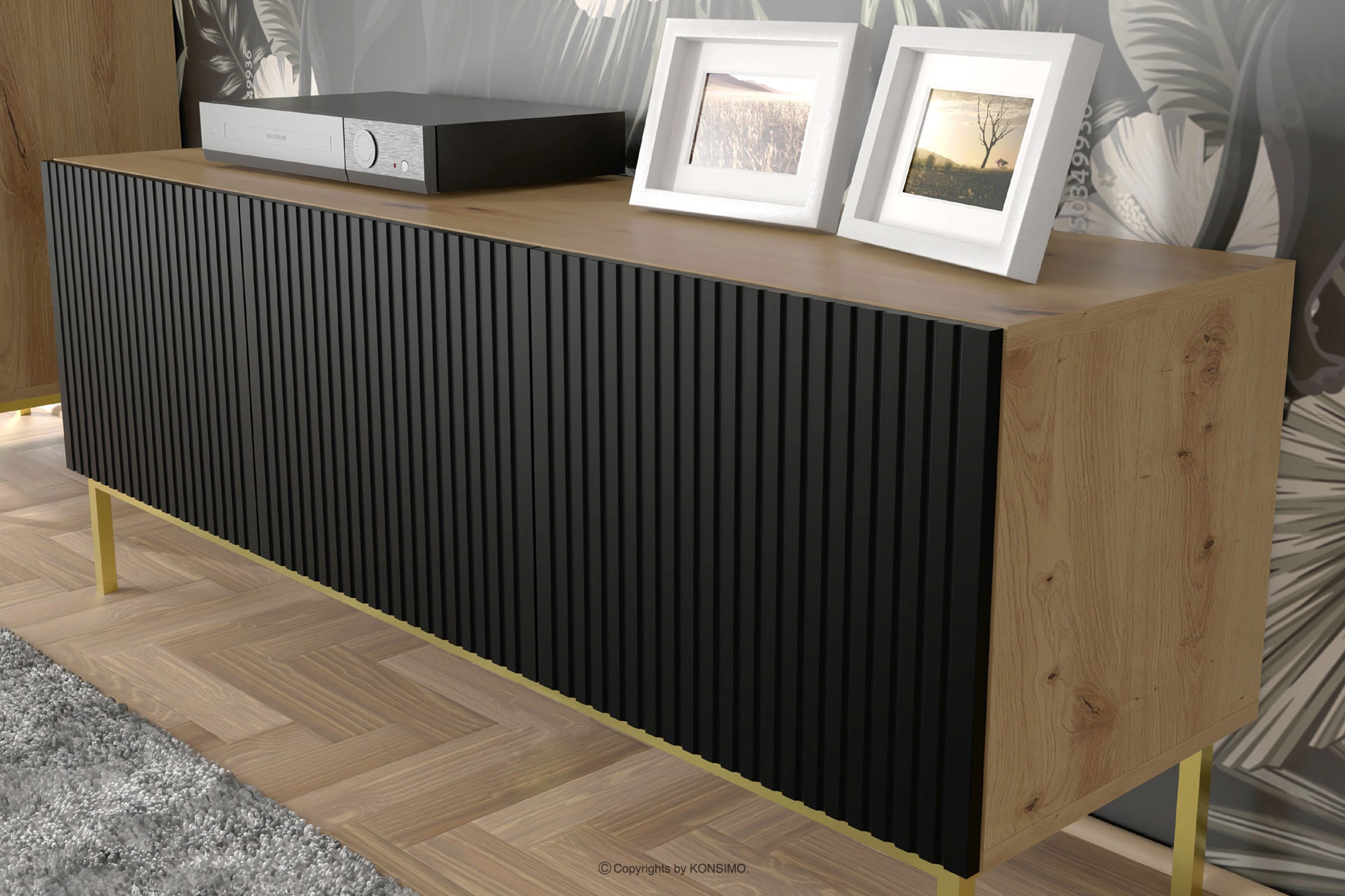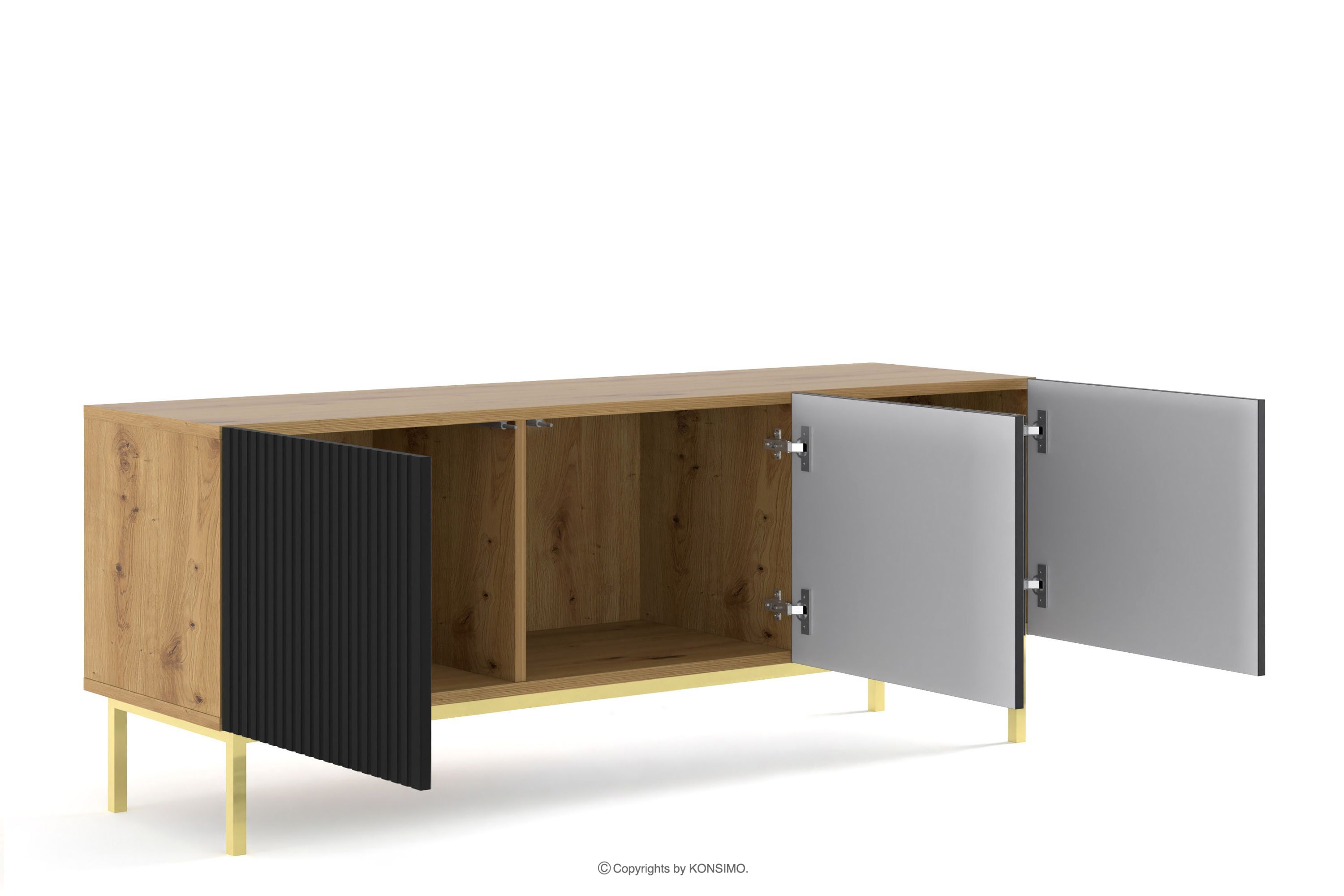 REMO zobacz całą kolekcję Duża szafka RTV na złotych nóżkach dąb artisan/czarny- kolor dąb artisan/czarny