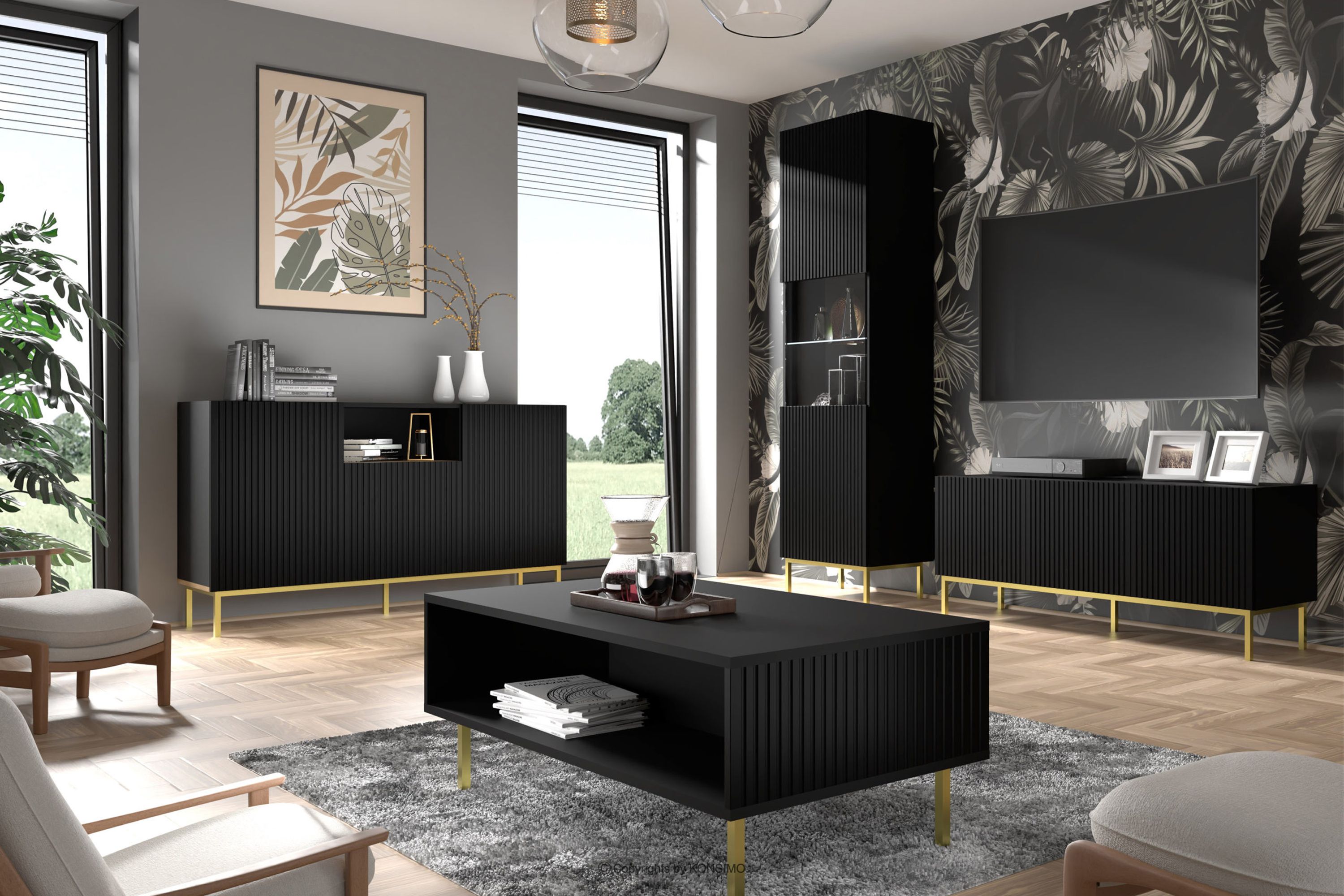 REMO zobacz całą kolekcję Szeroka szafka RTV na złotych nóżkach czarny- kolor czarny
