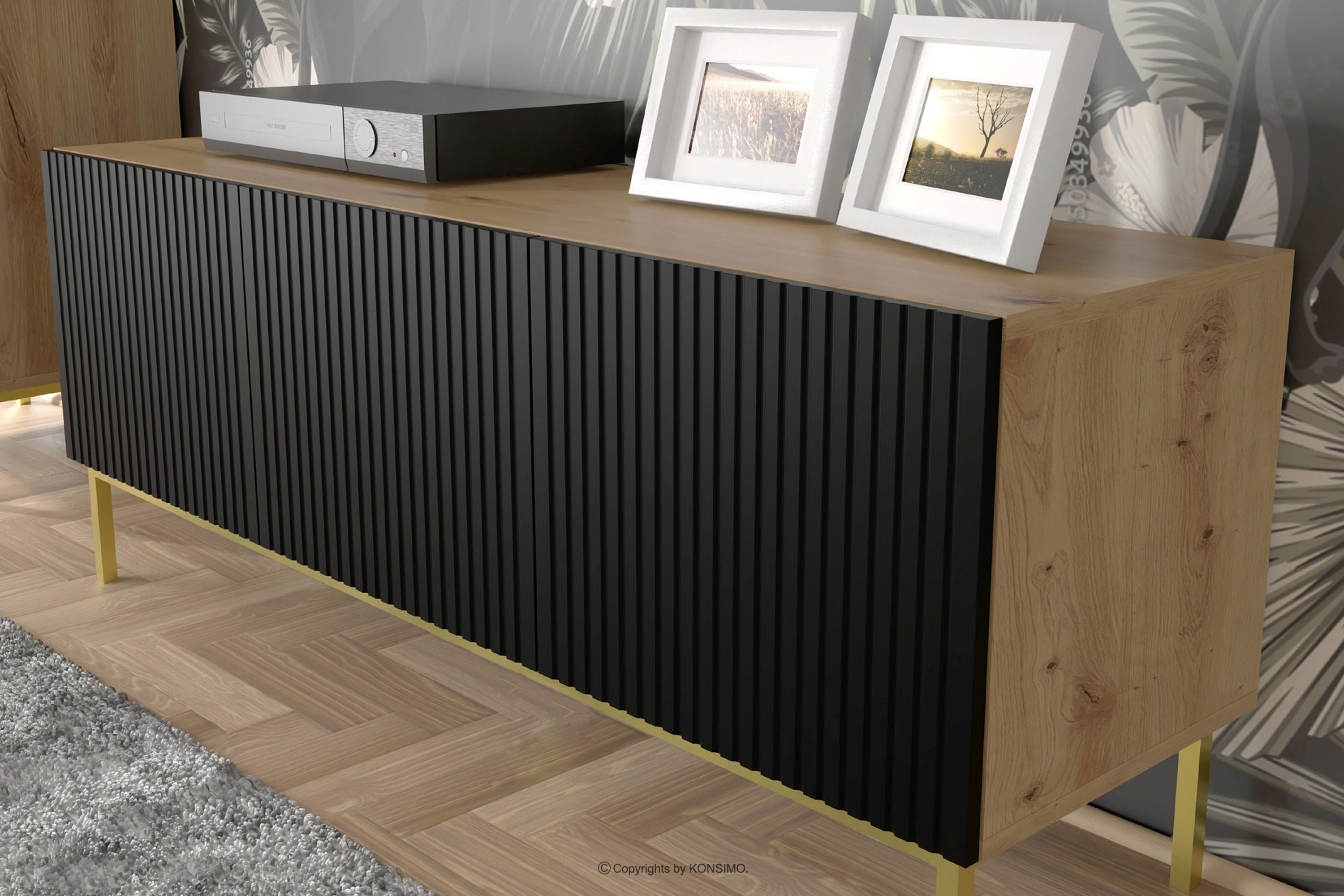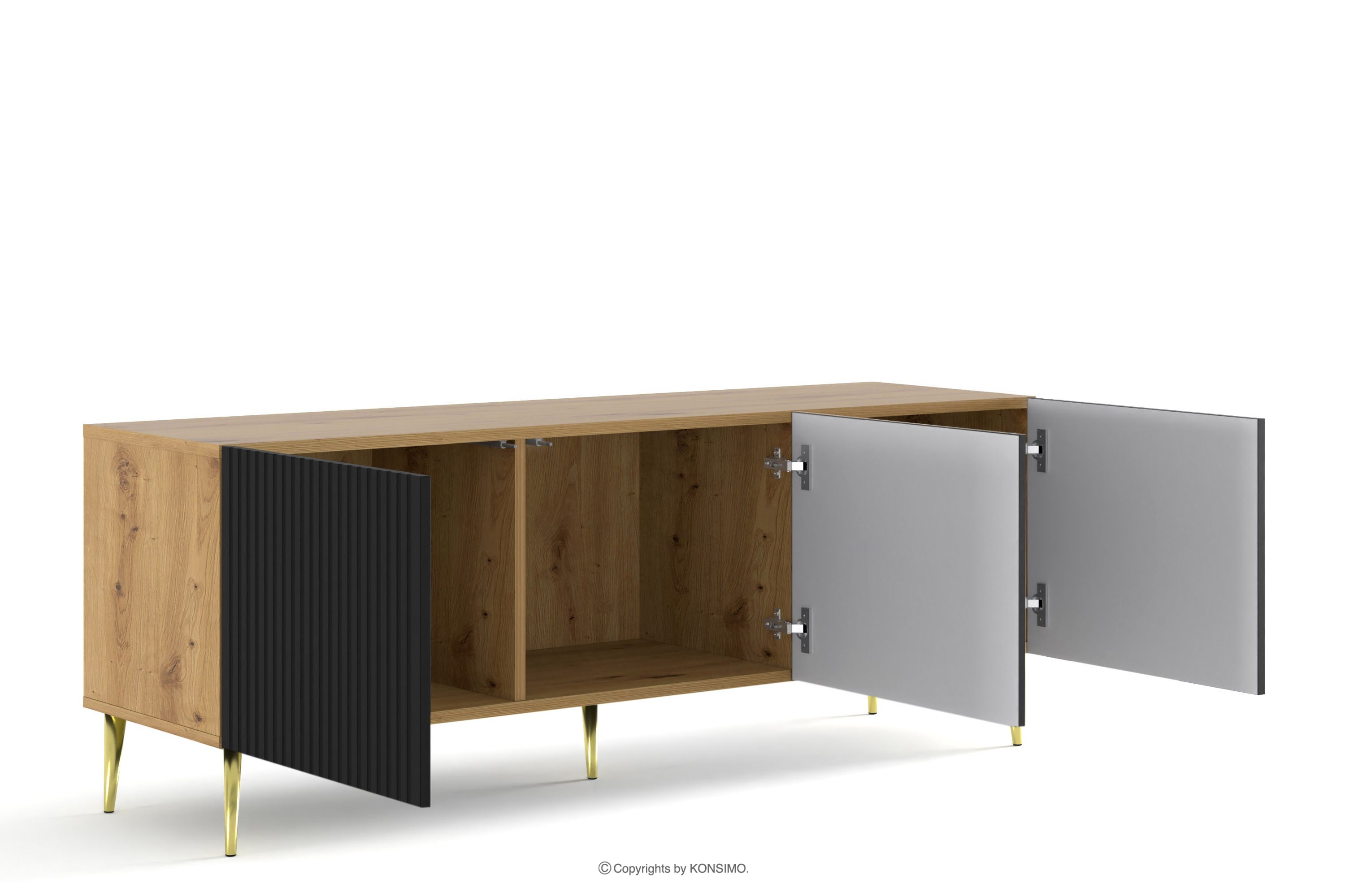 REMO zobacz całą kolekcję Szeroka szafka RTV na złotych nóżkach dąb artisan/czarny- kolor dąb artisan/czarny