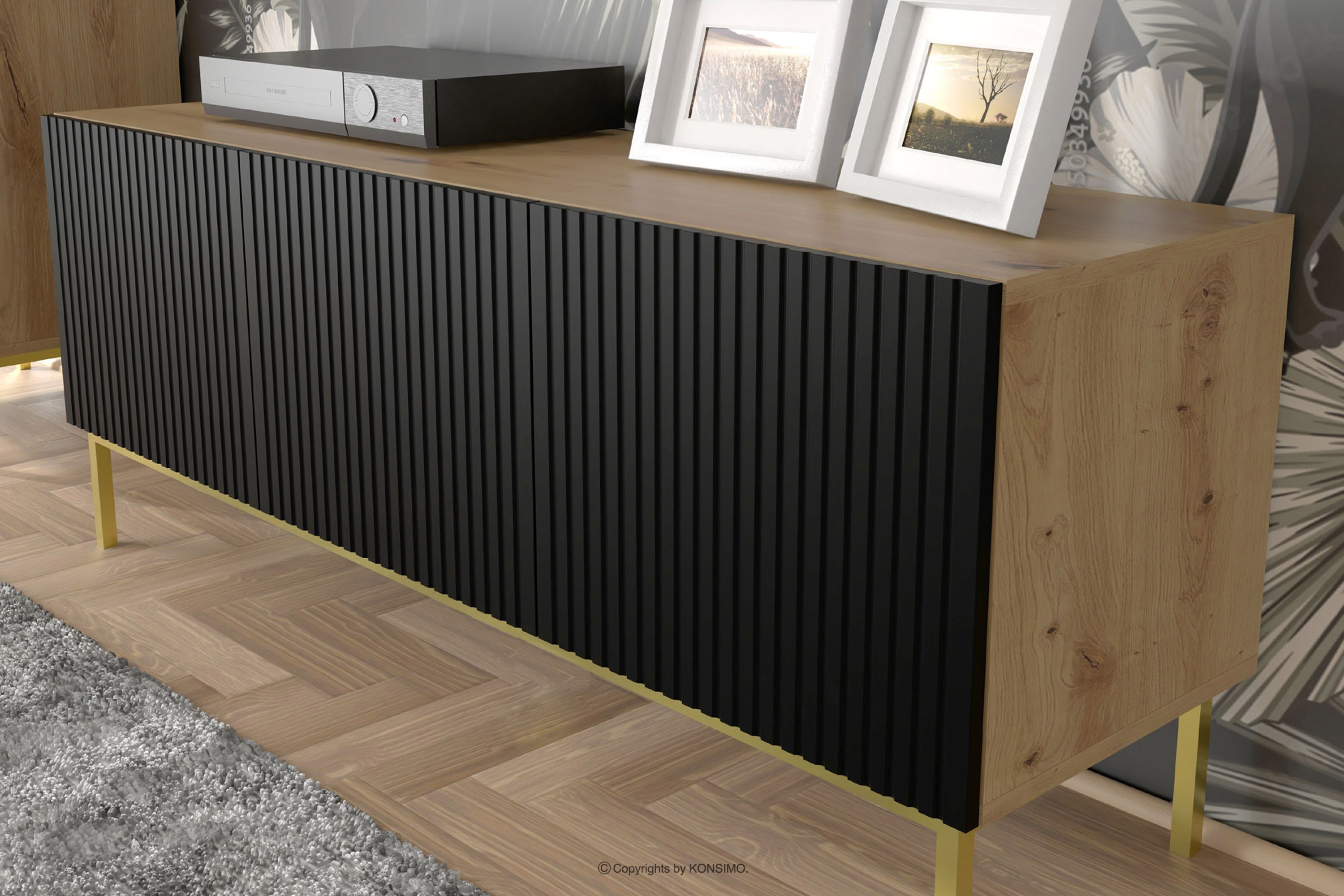 REMO zobacz całą kolekcję Szeroka szafka RTV na czarnych nóżkach dąb artisan/czarny- kolor dąb artisan/czarny