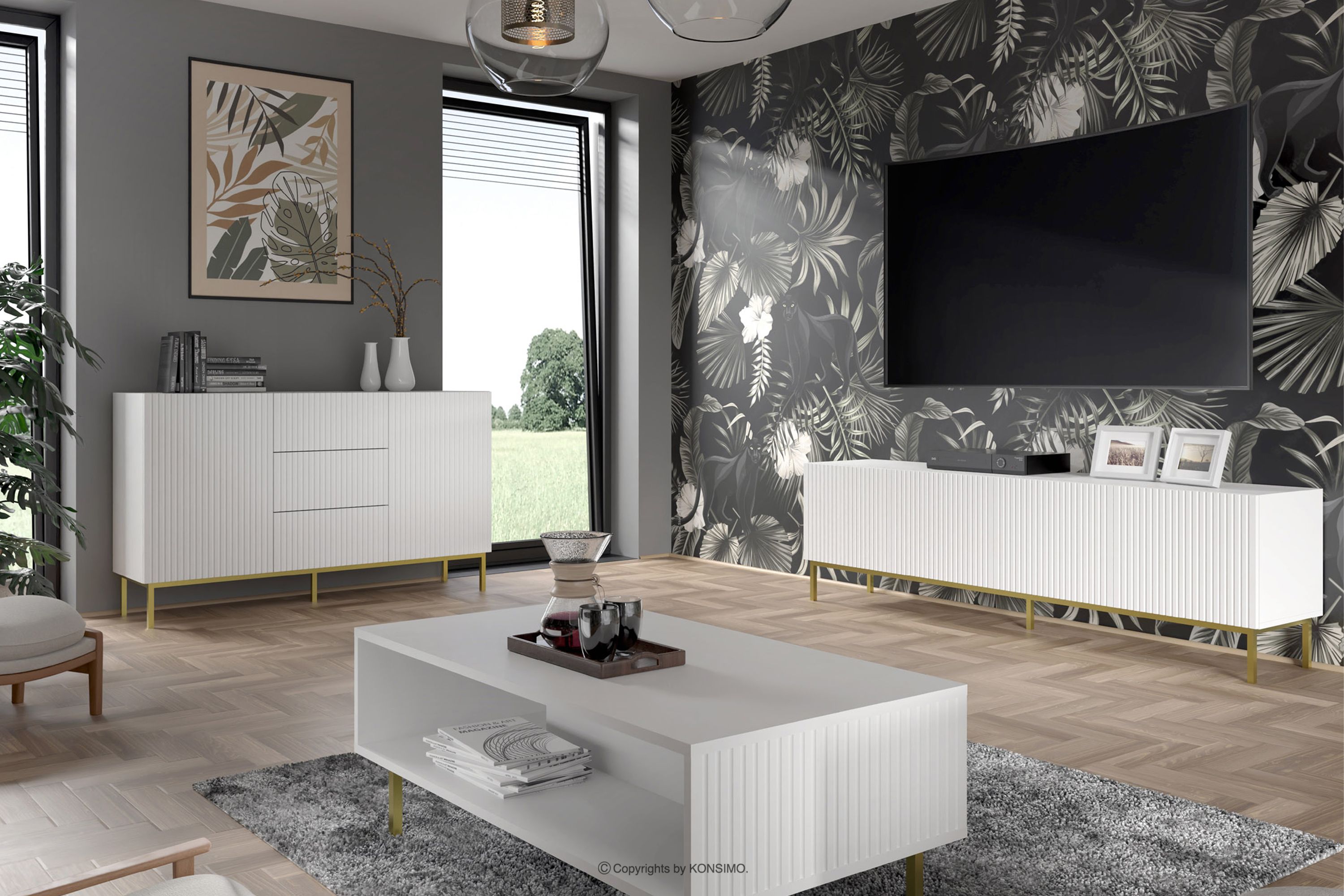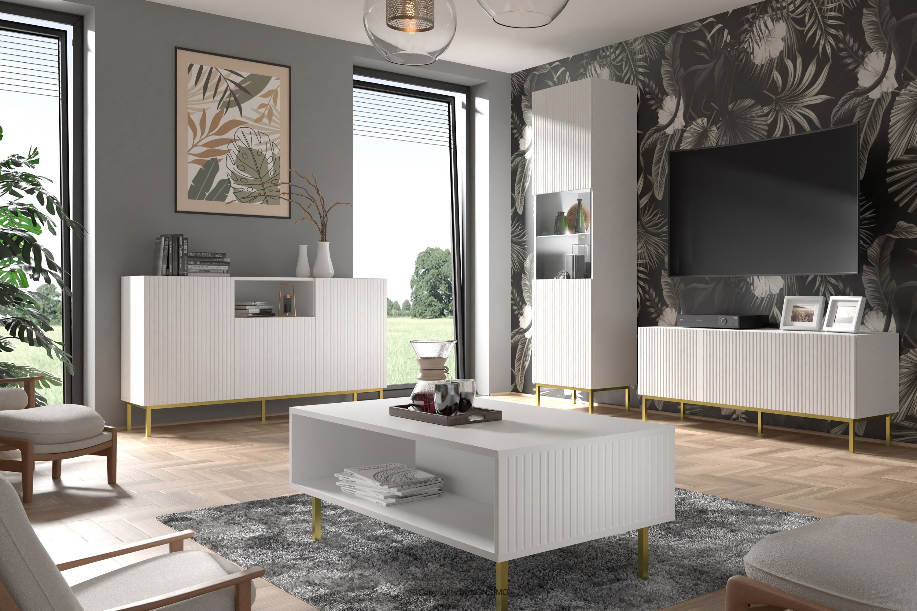 REMO zobacz całą kolekcję Szeroka szafka RTV w stylu eleganckim biały- kolor biały