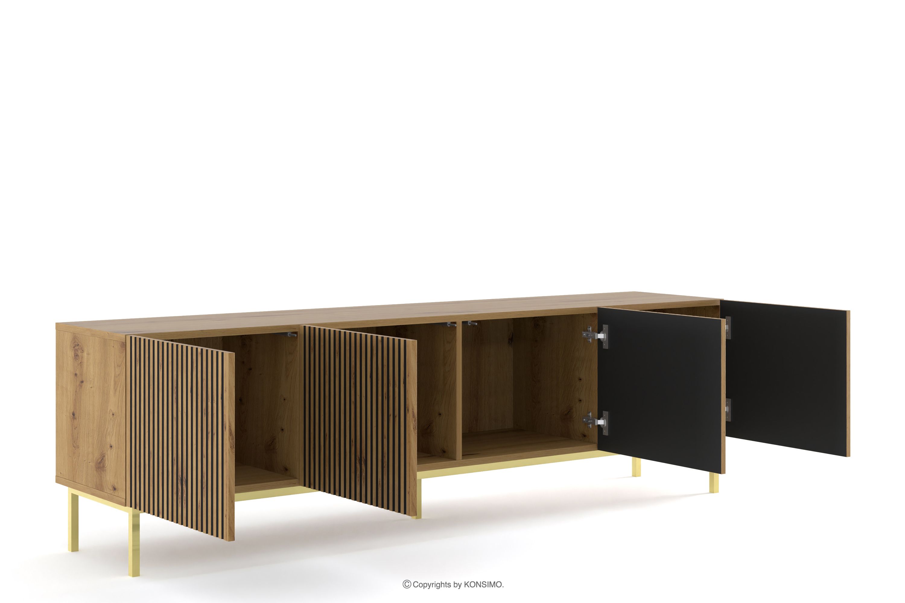 REMO zobacz całą kolekcję Szafka RTV z lamelami na złotych nóżkach dąb artisan- kolor dąb artisan