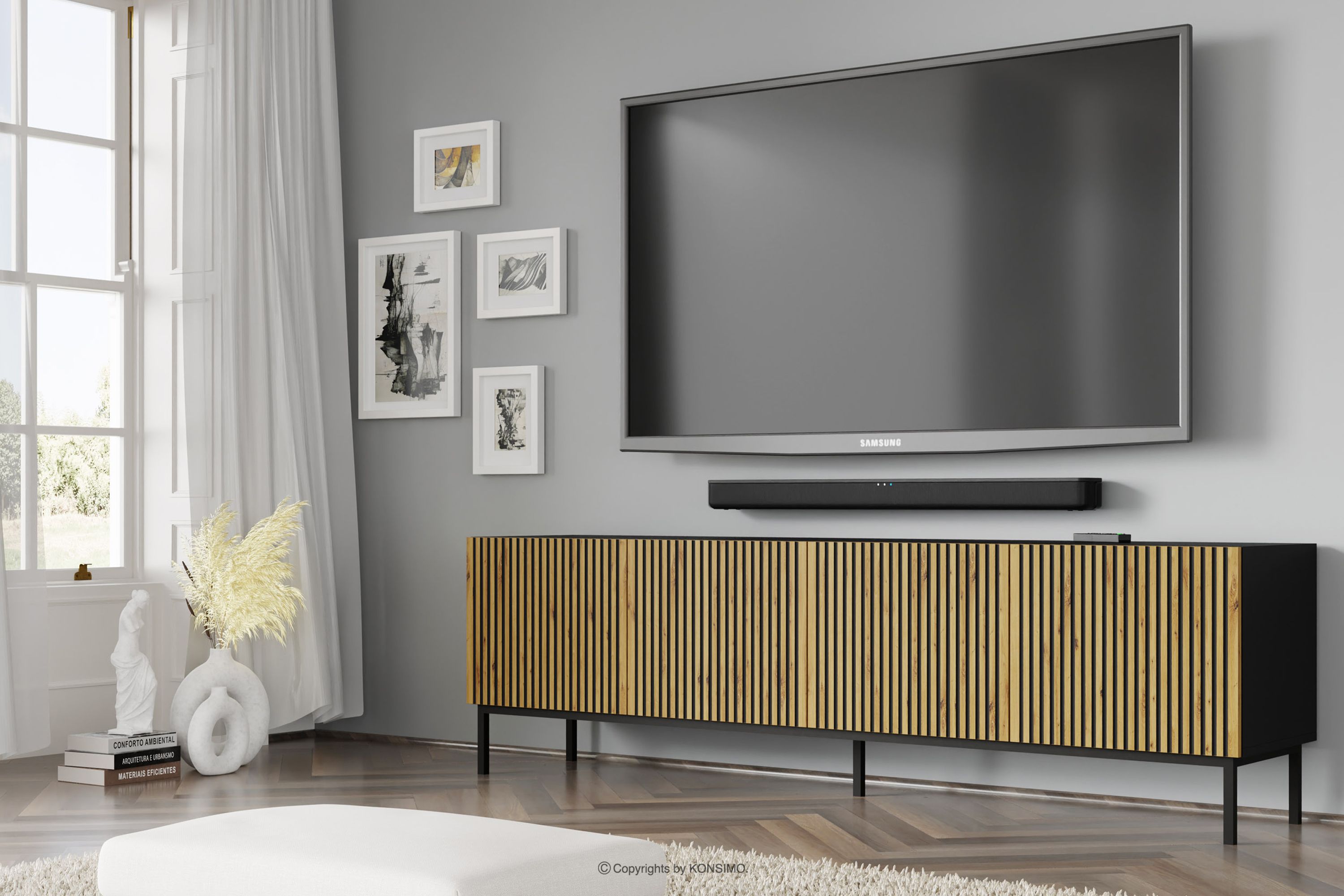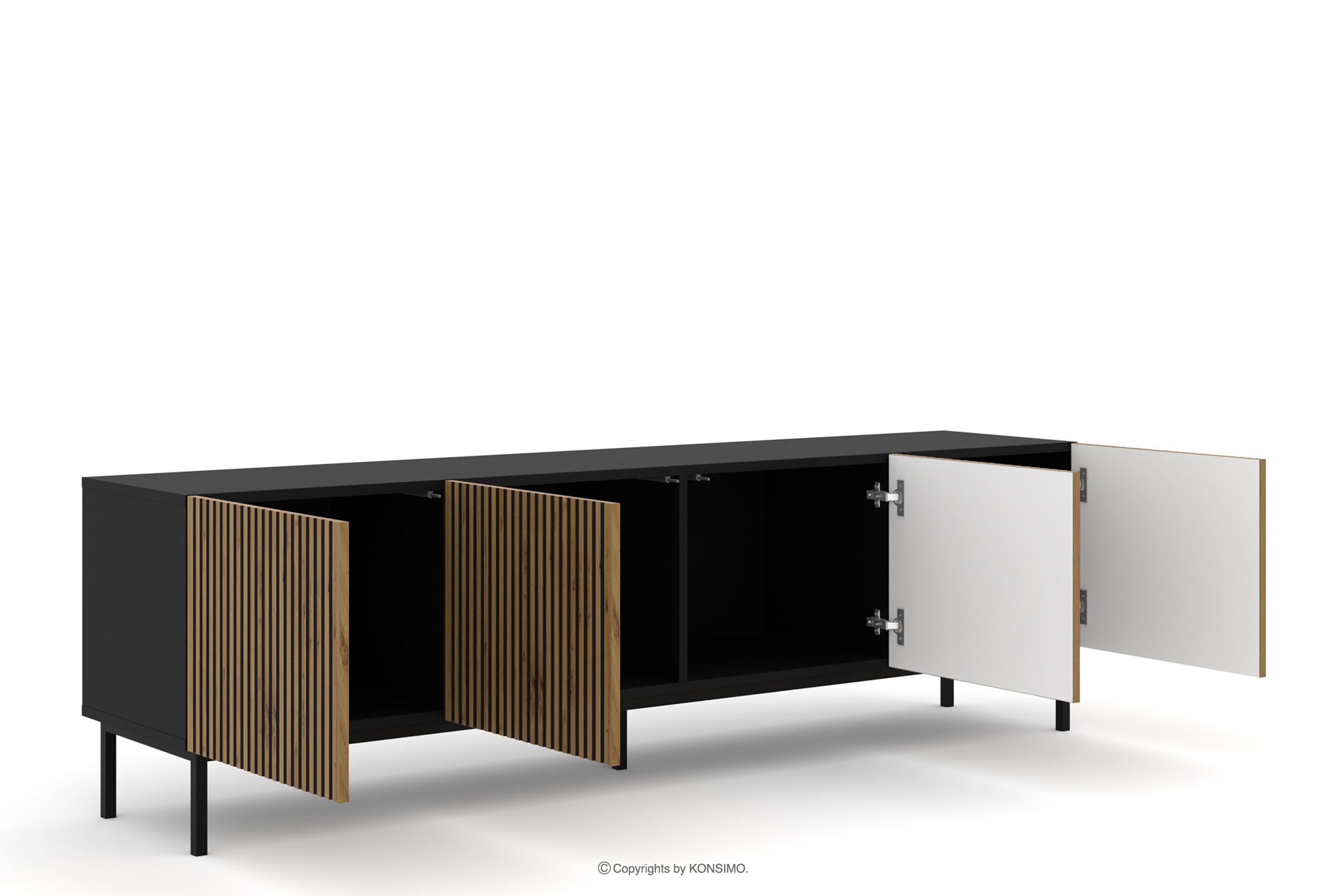 REMO Szafka RTV z lamelami na czarnych nóżkach czarny/dąb artisan
