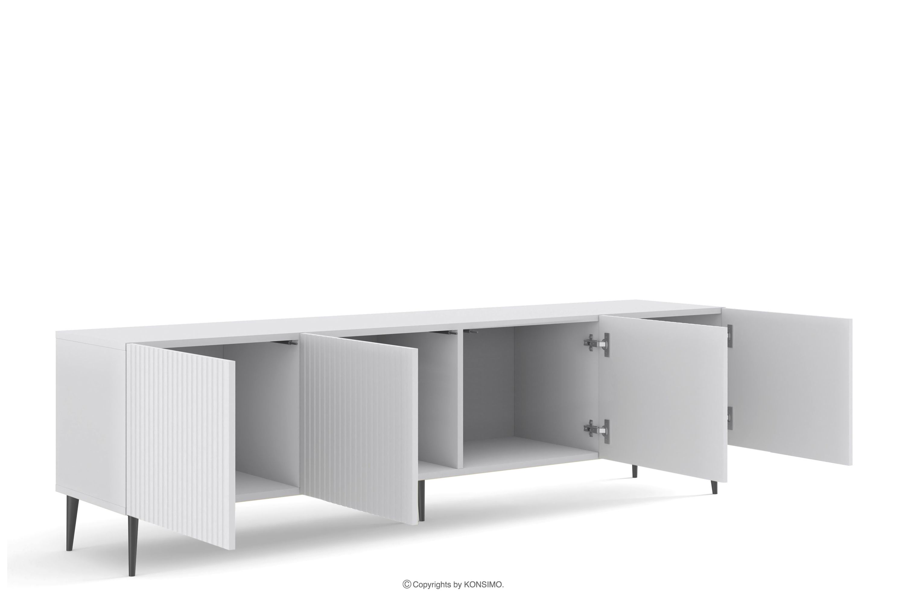 REMO zobacz całą kolekcję Szeroka szafka RTV na czarnych nóżkach w stylu eleganckim biały- kolor biały