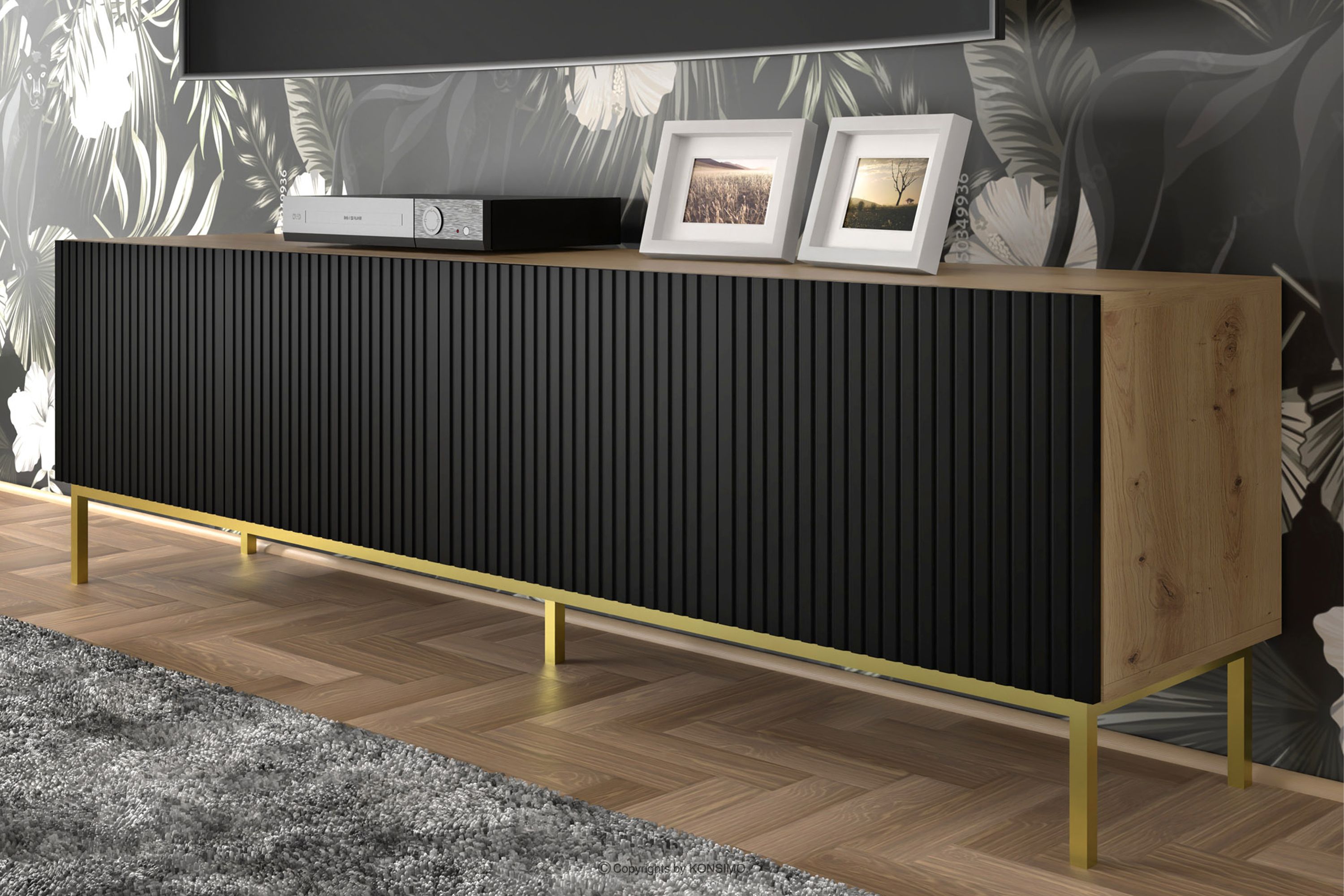 REMO zobacz całą kolekcję Szafka RTV 200cm pod telewizor dąb artisan/czarny- kolor dąb artisan/czarny