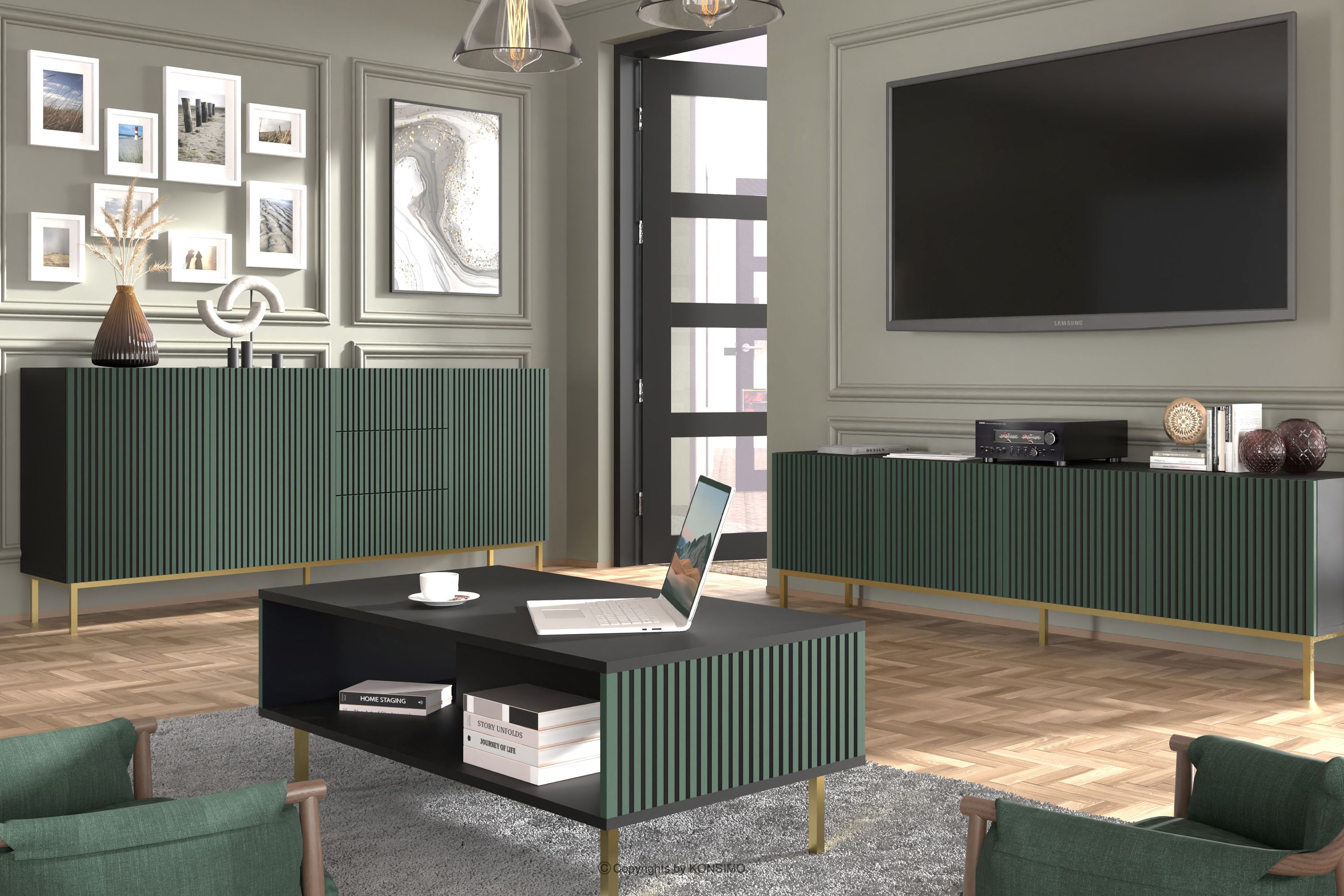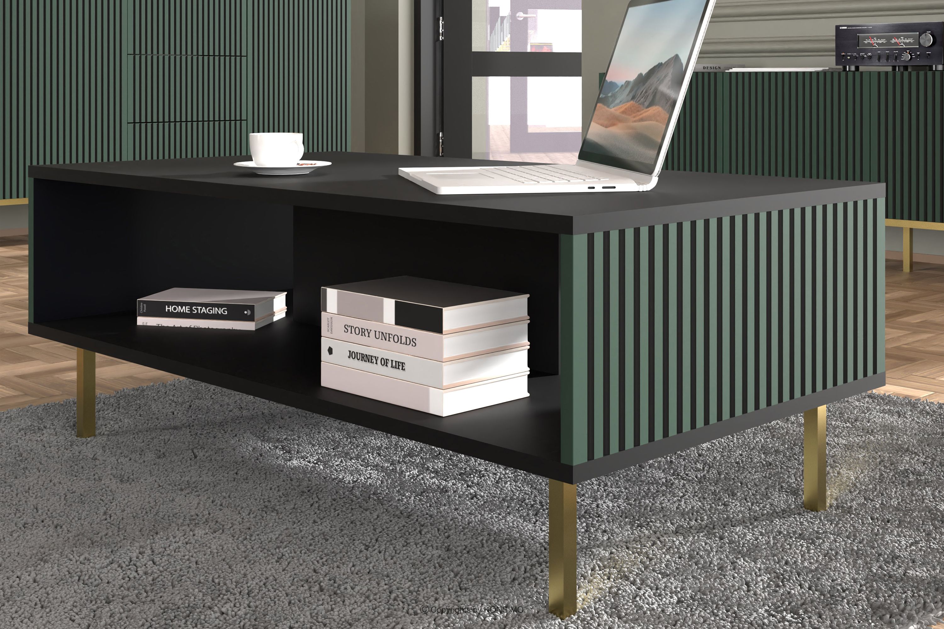 REMO zobacz całą kolekcję Stolik kawowy na złotych nóżkach z lamelami czarny/zielony- kolor czarny/zielony