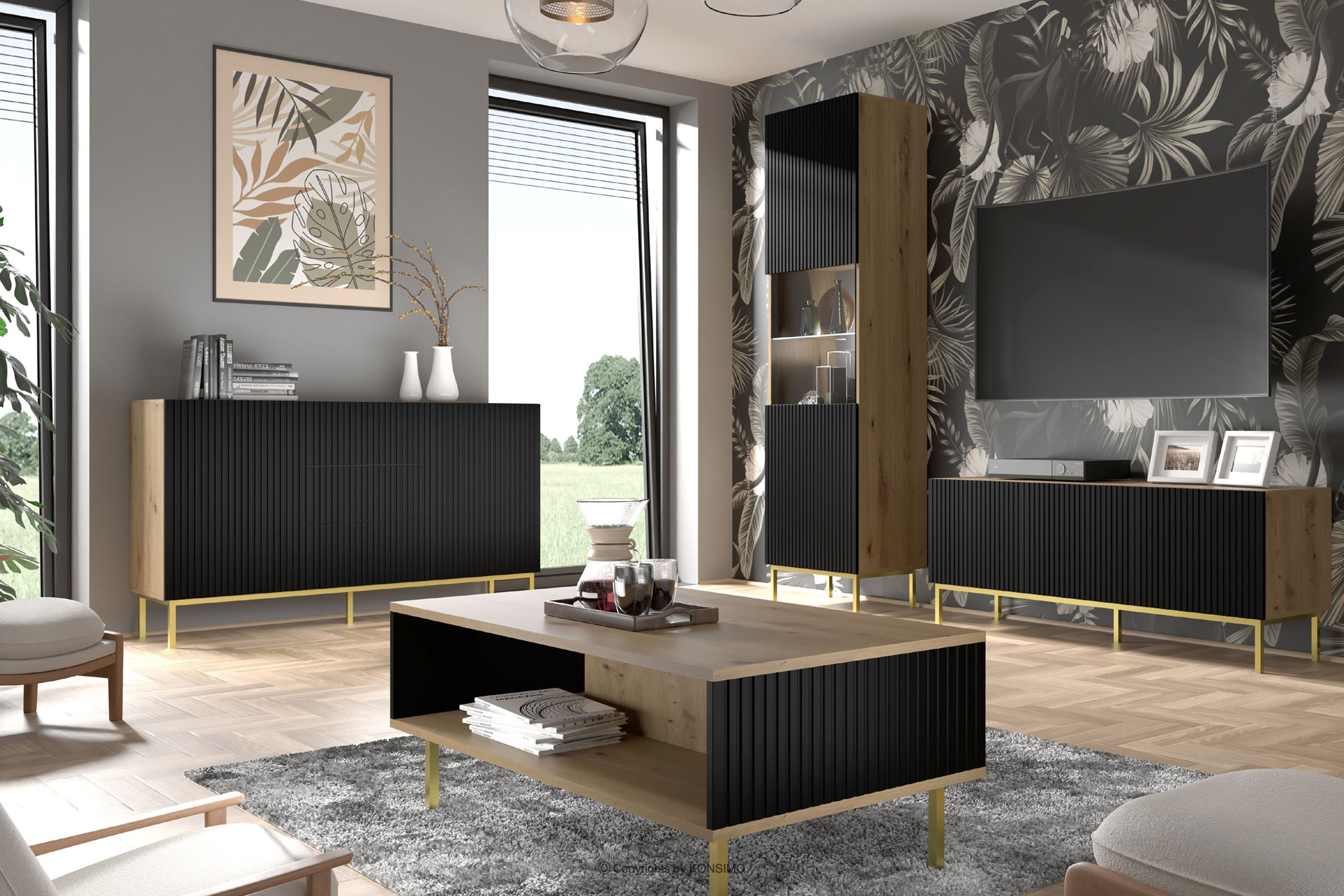 REMO zobacz całą kolekcję Stolik kawowy na czarnych nóżkach z półką dąb artisan/czarny- kolor dąb artisan/czarny
