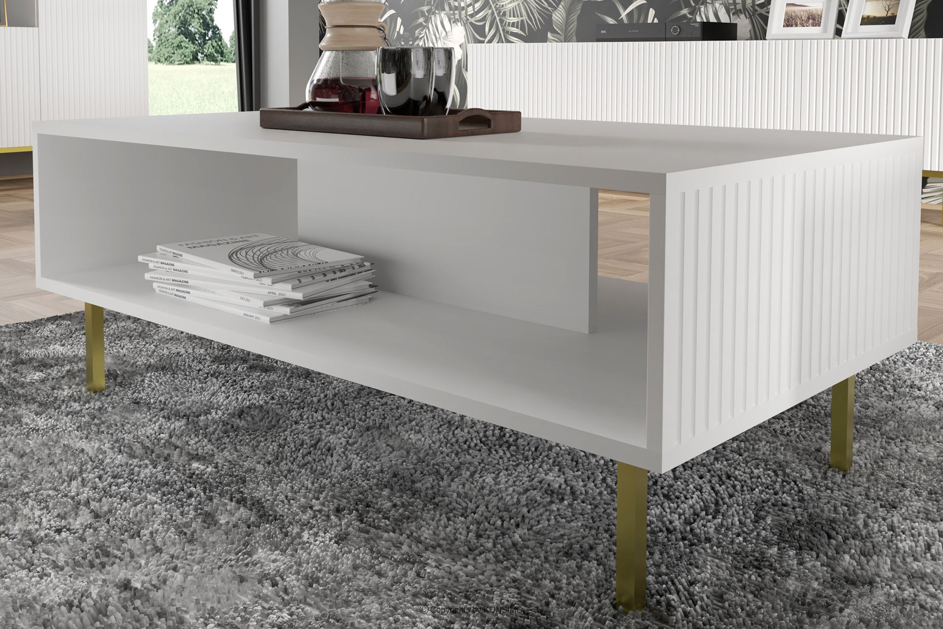REMO zobacz całą kolekcję Biały stolik kawowy na złotych nóżkach- kolor biały
