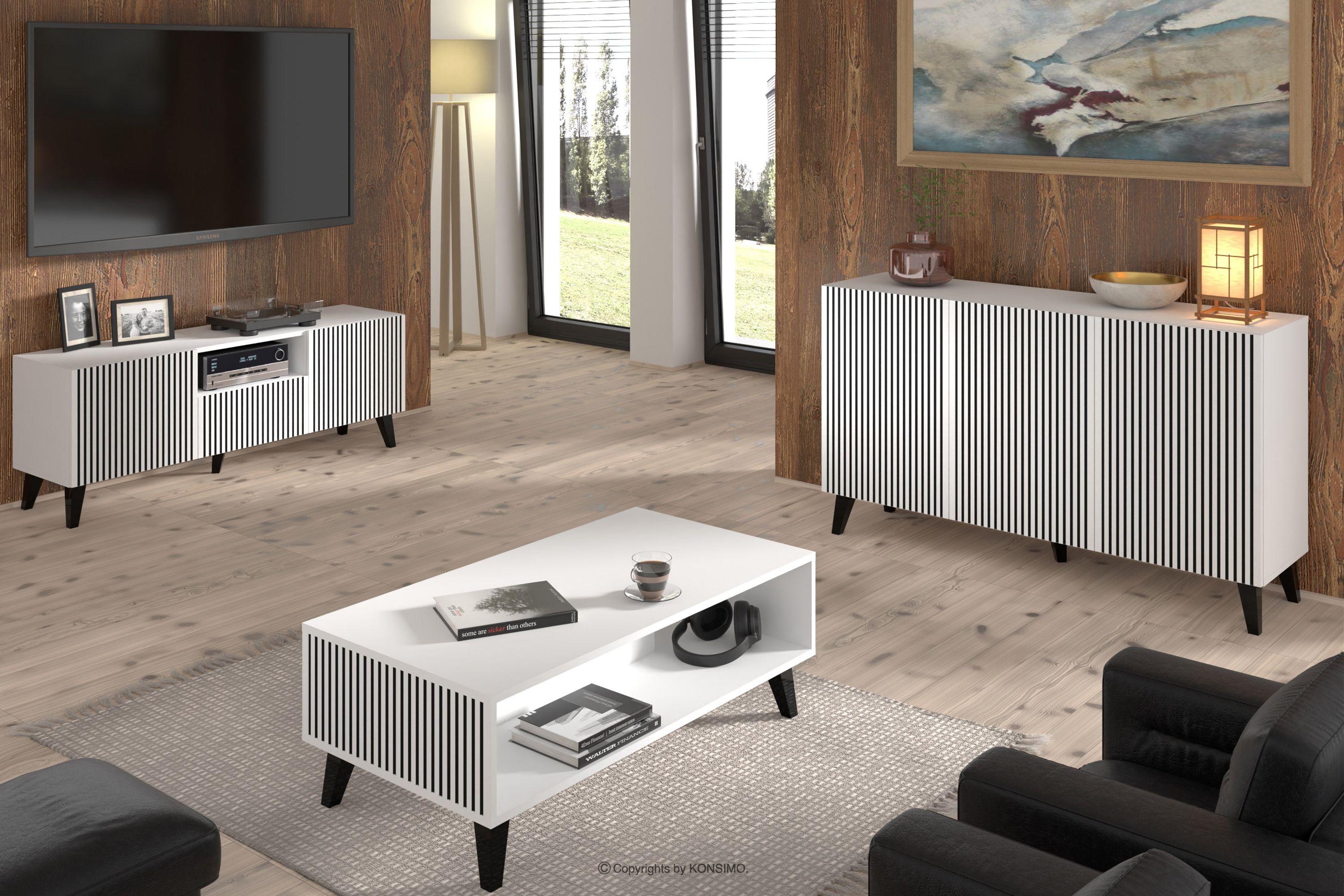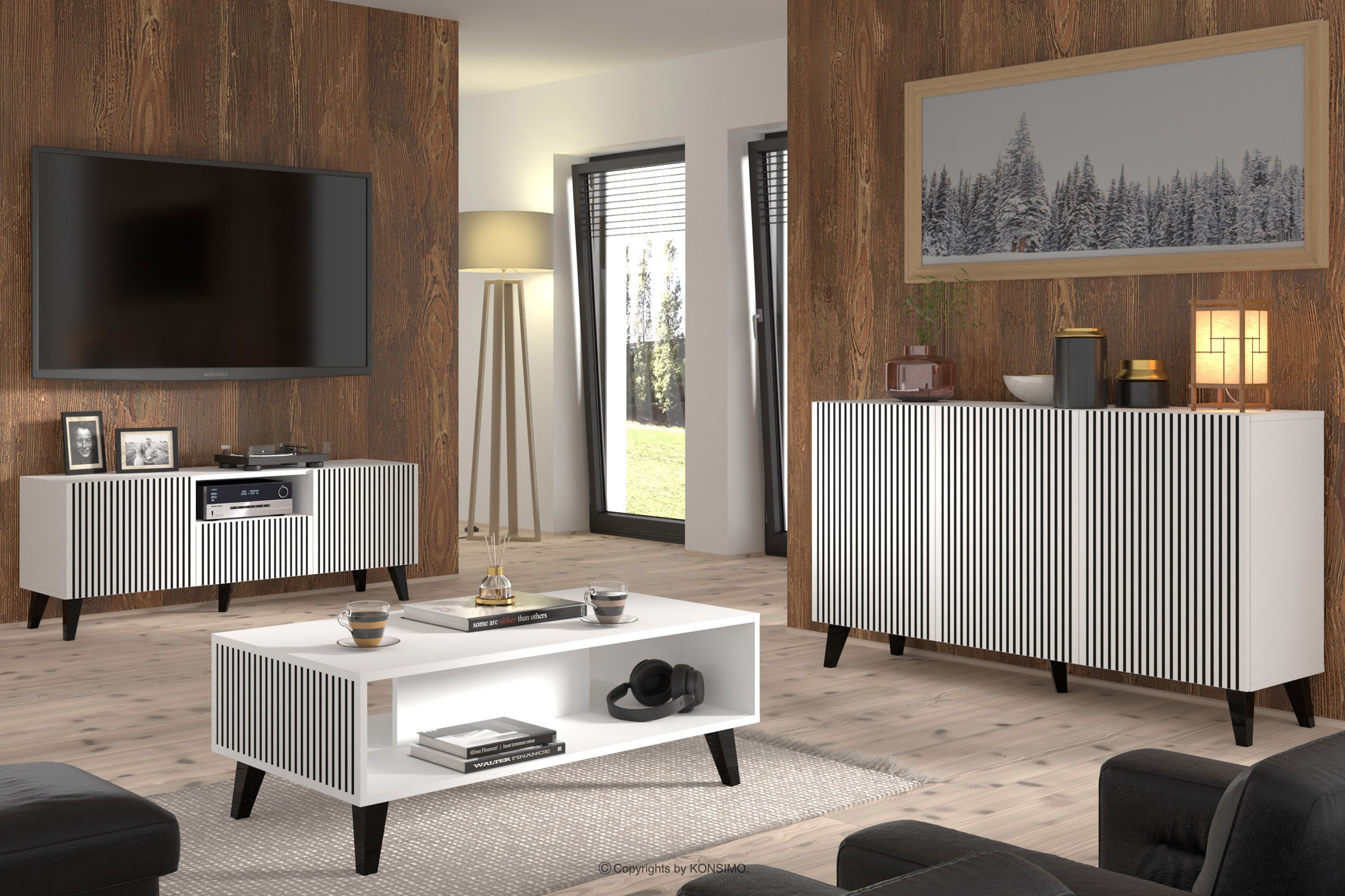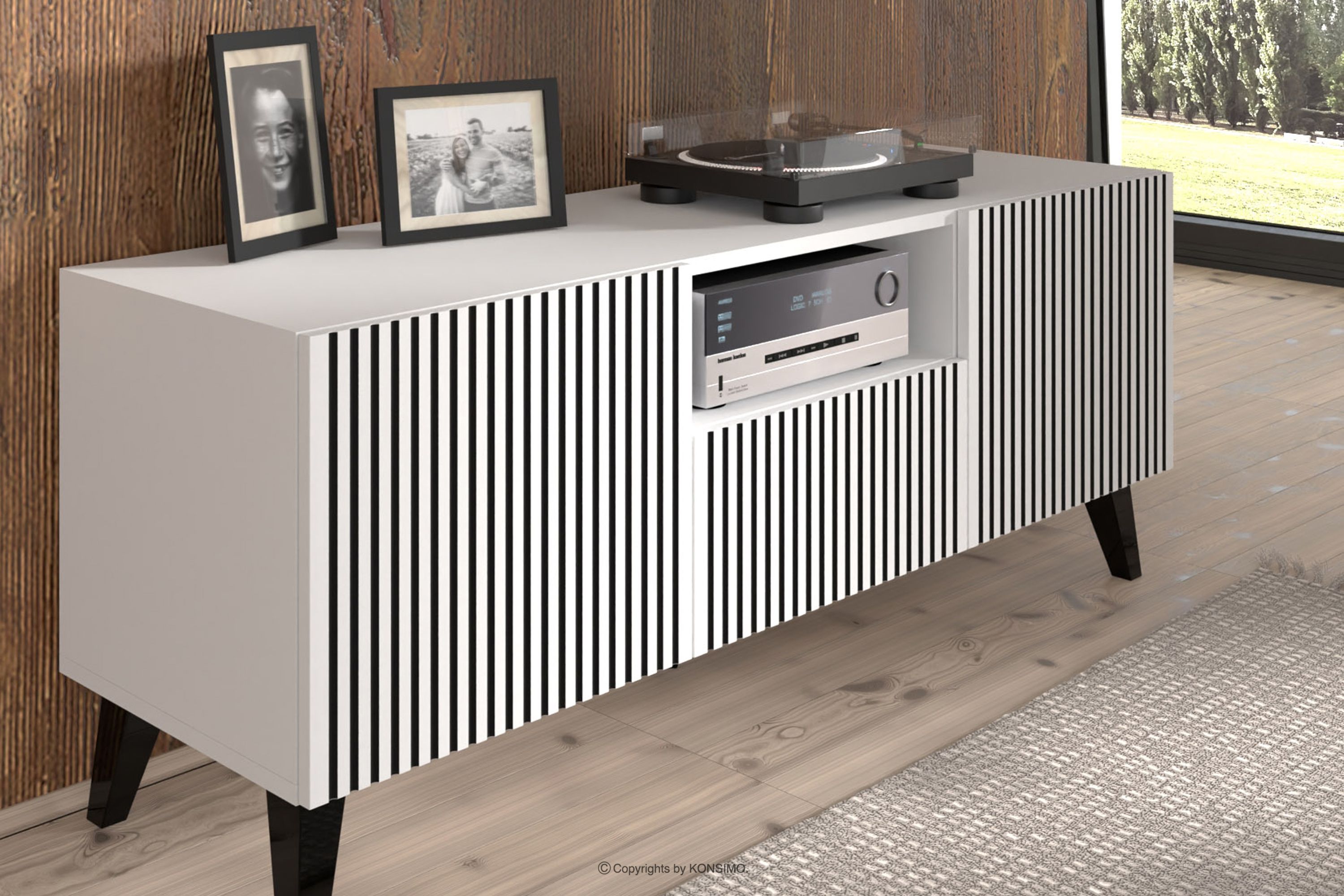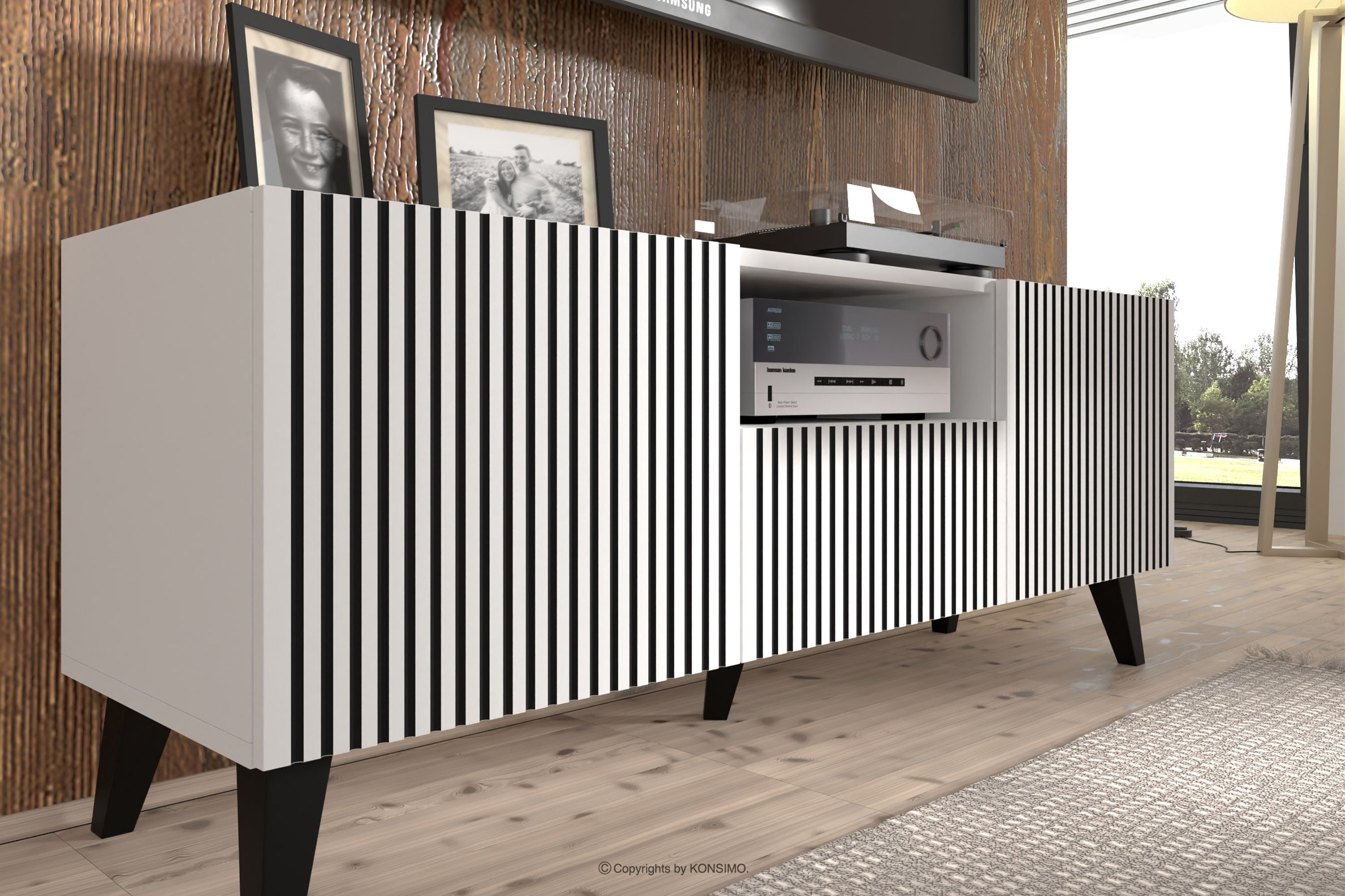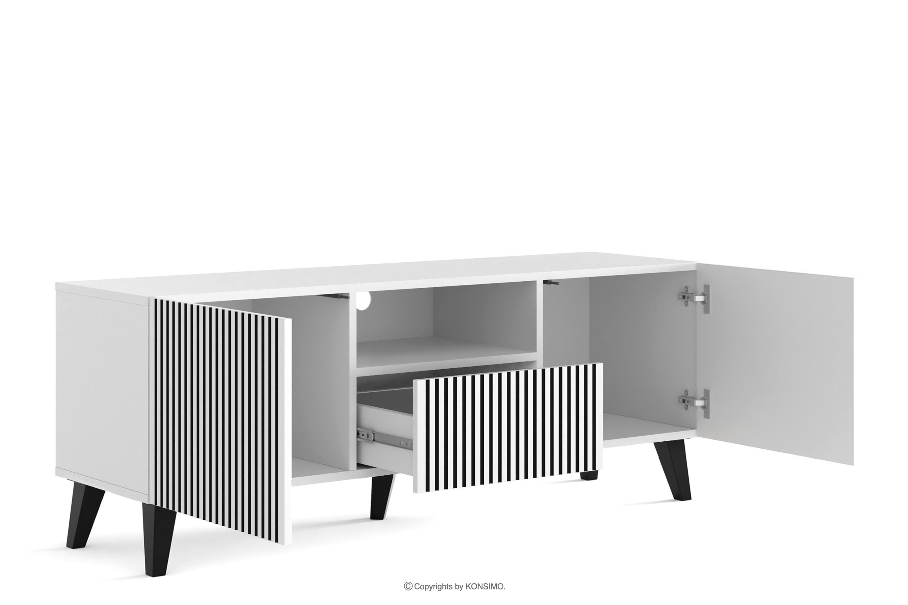 REMO zobacz całą kolekcję Szafka RTV nowoczesna z lamelami biały/czarny- kolor biały/czarny